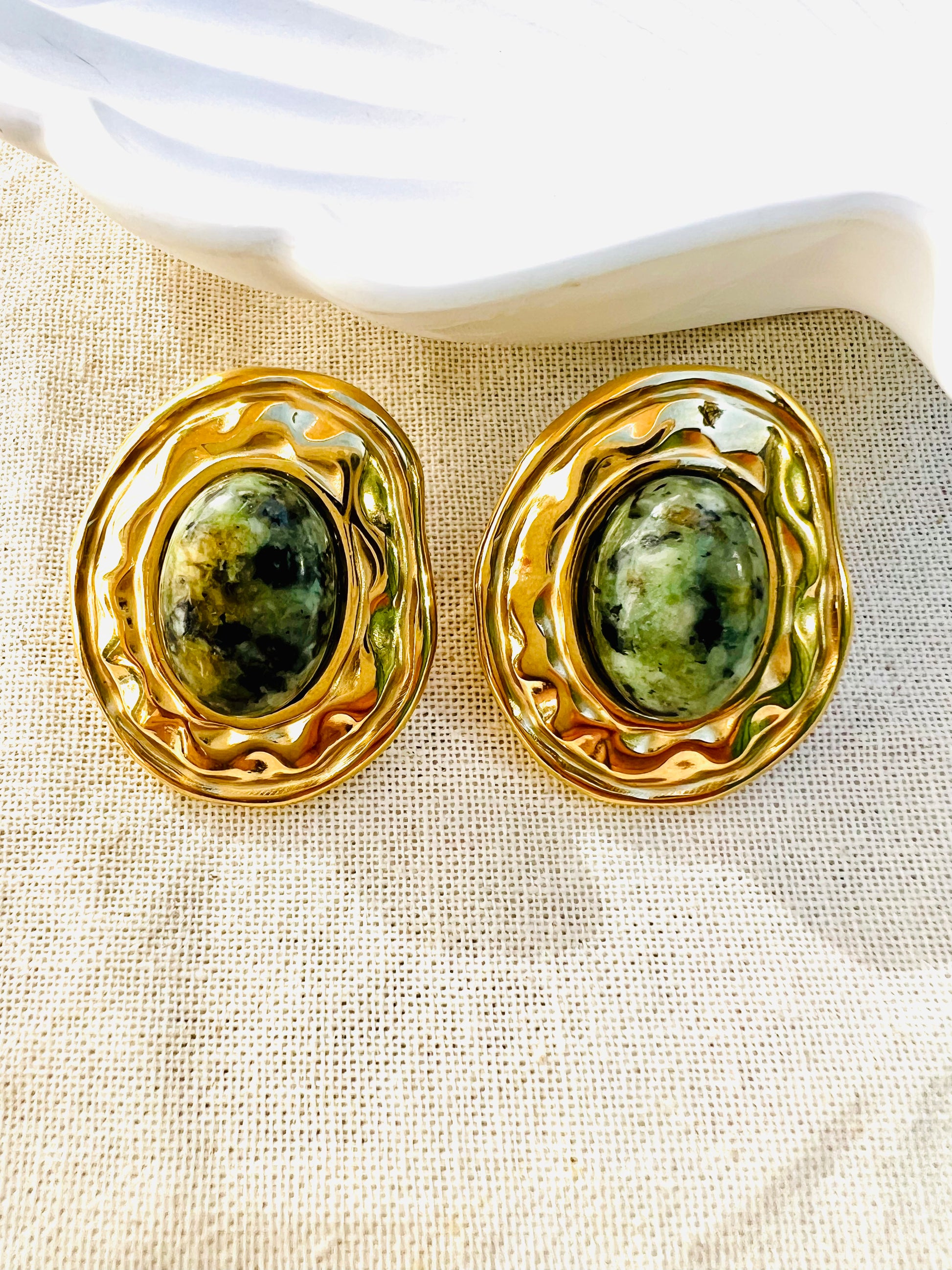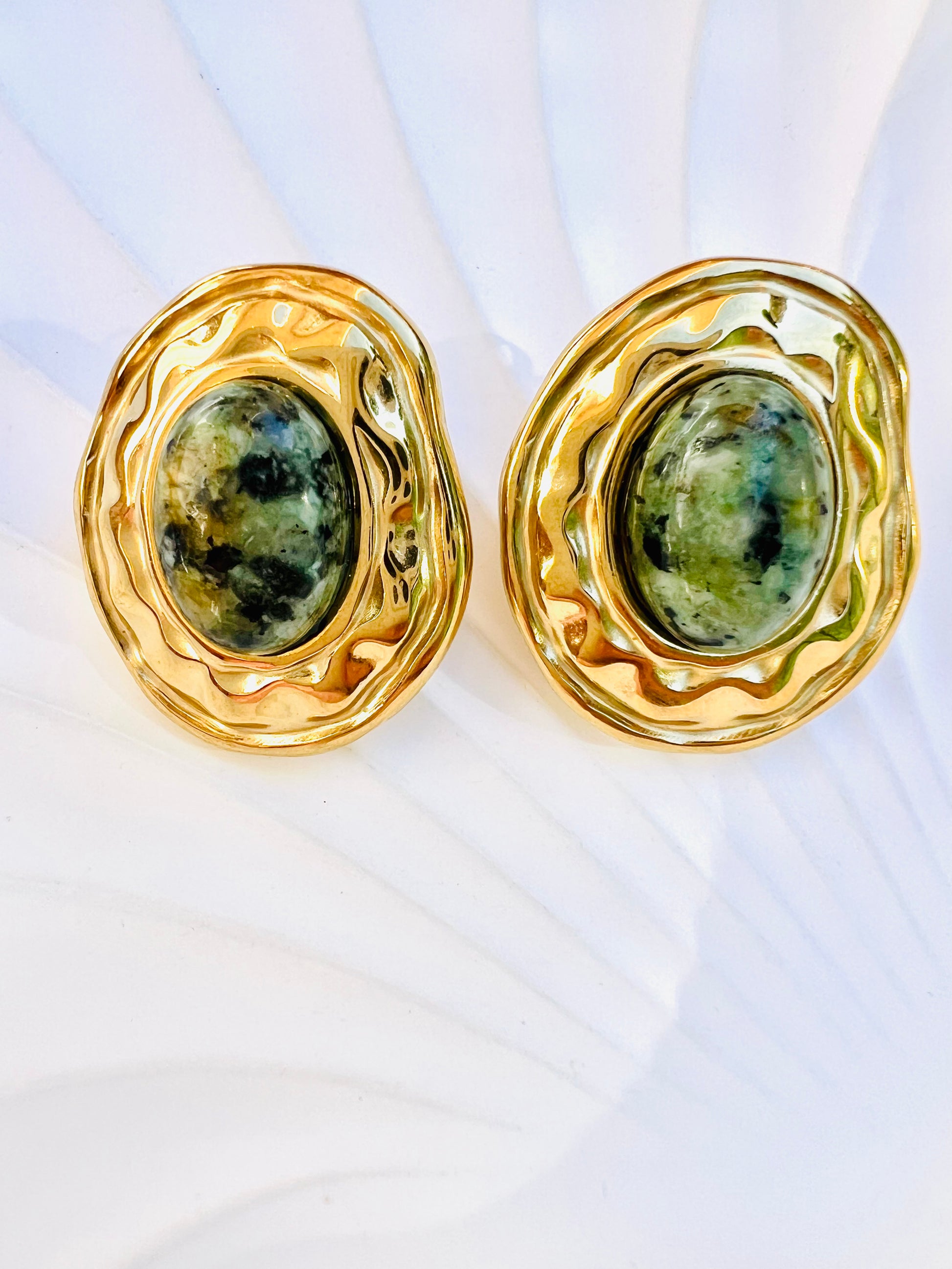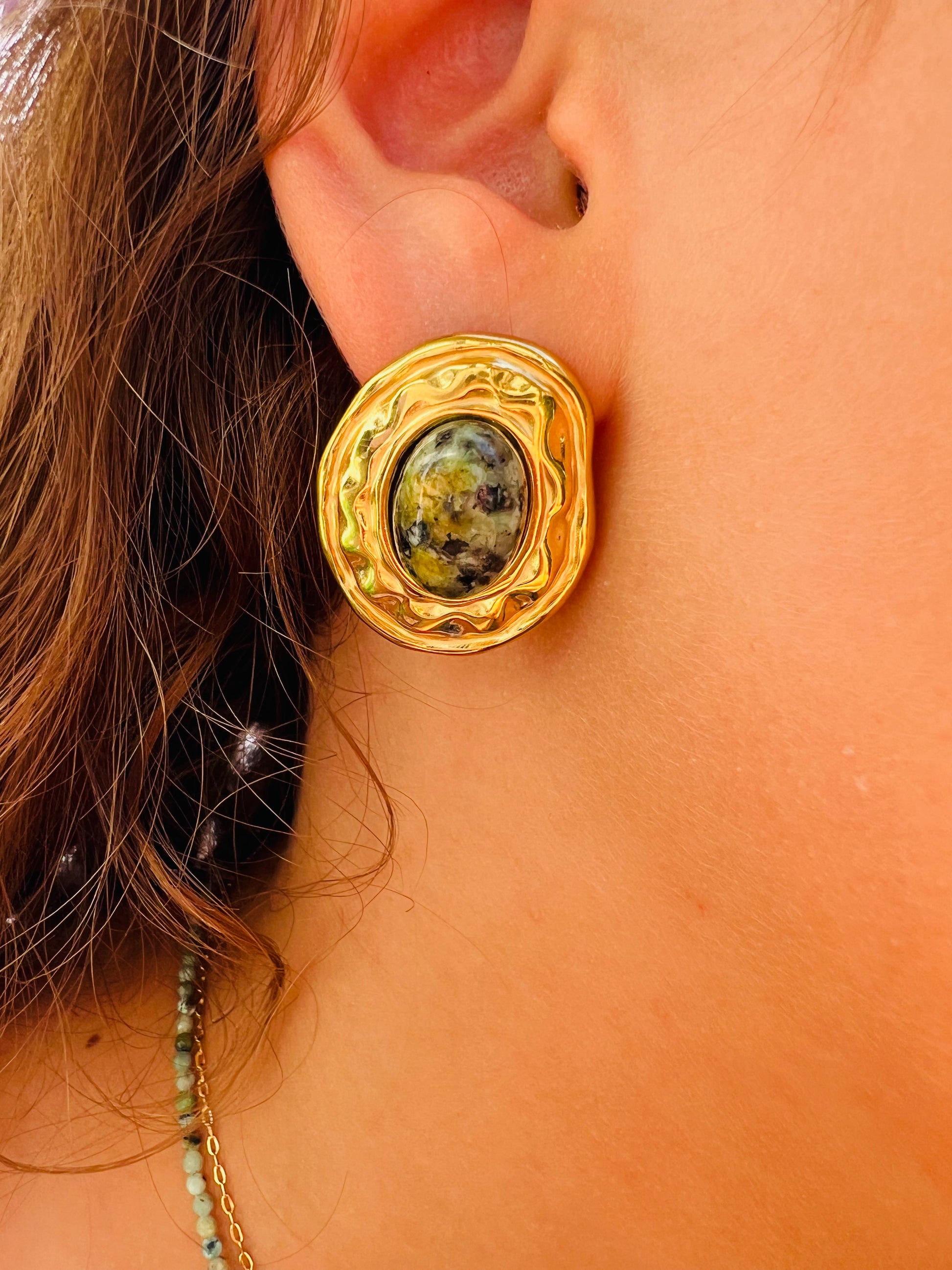 ✧ Boucles dorées en acier inoxydable doré et pierre naturelle.