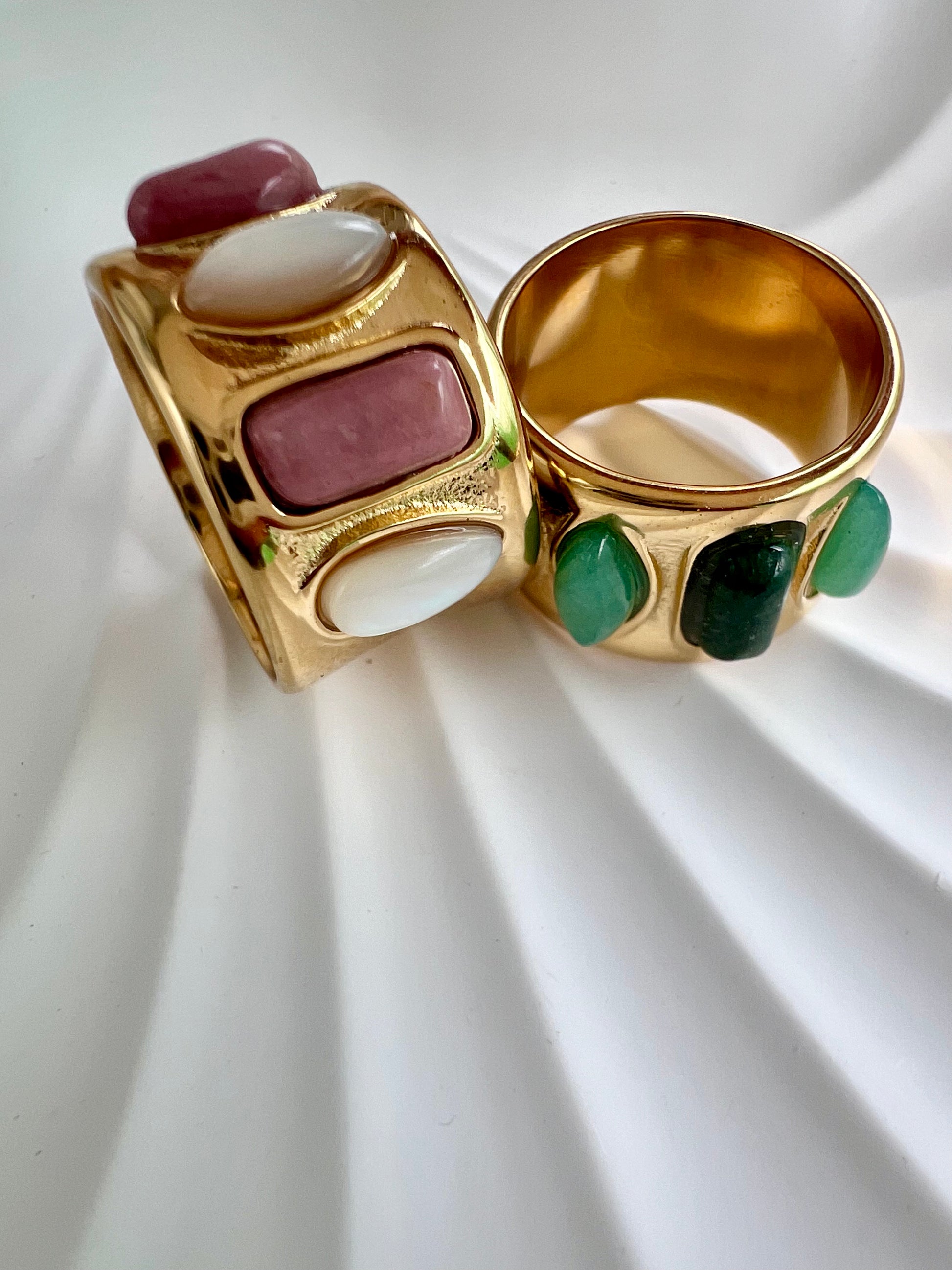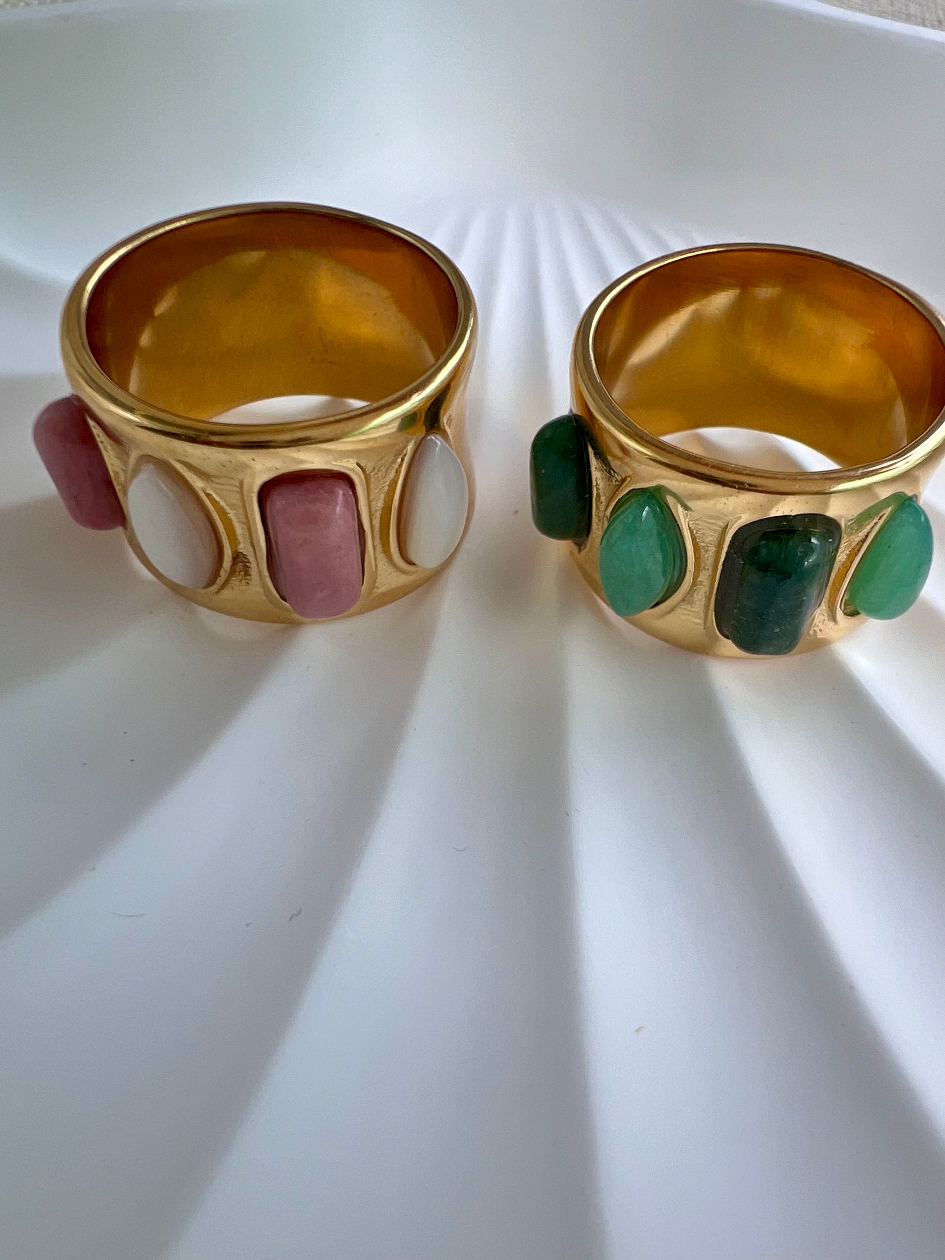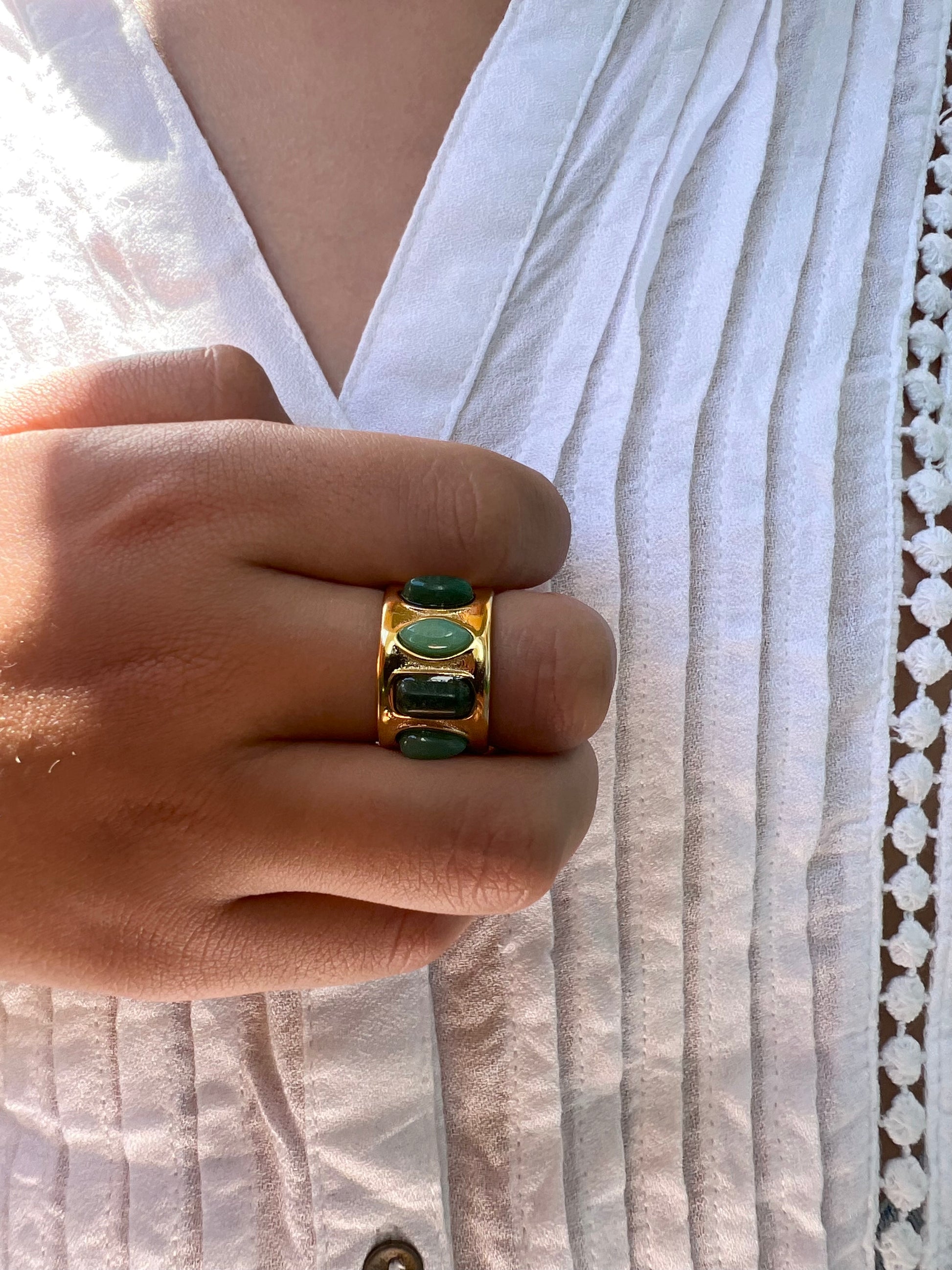 Bague ALISON en acier inoxydable, ornée de quatre pierres naturelles aux teintes douces et harmonieuses.