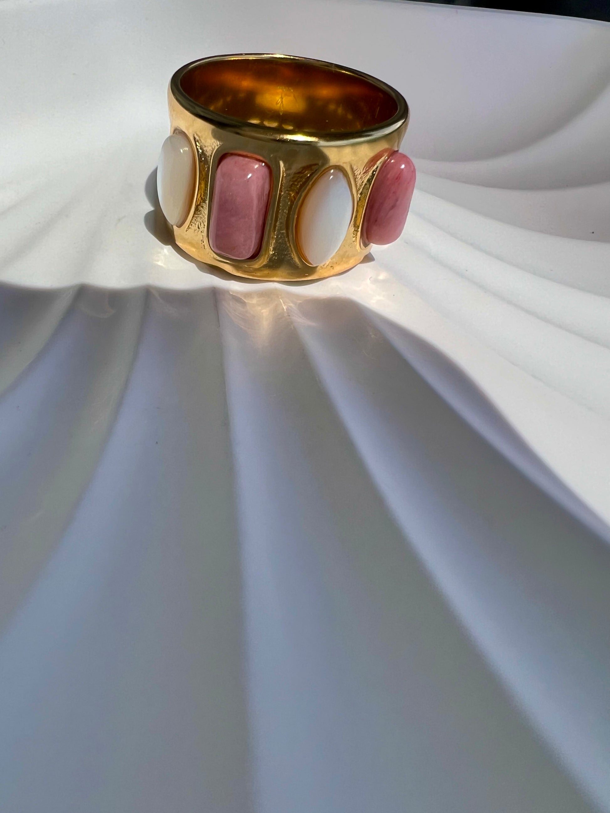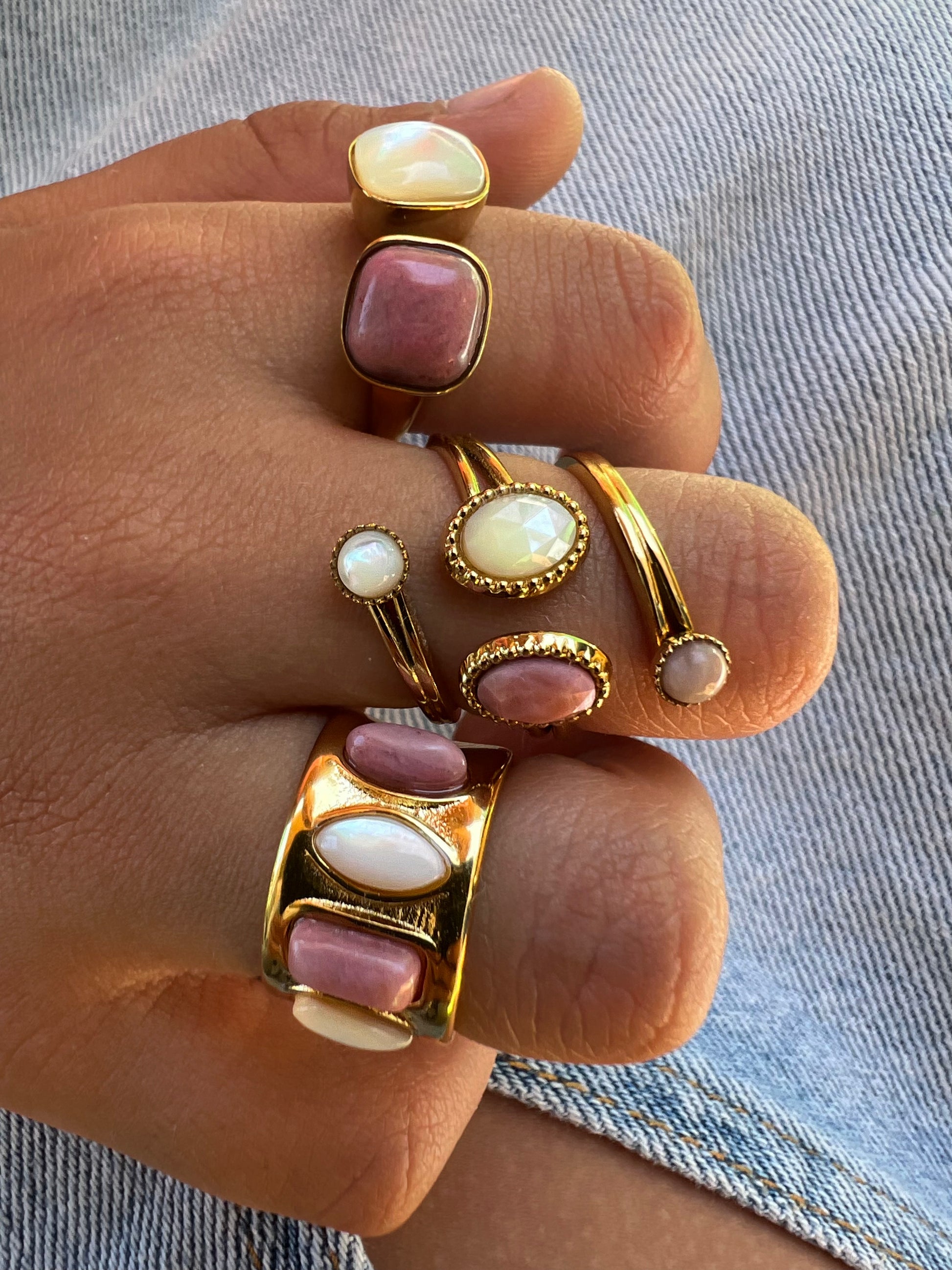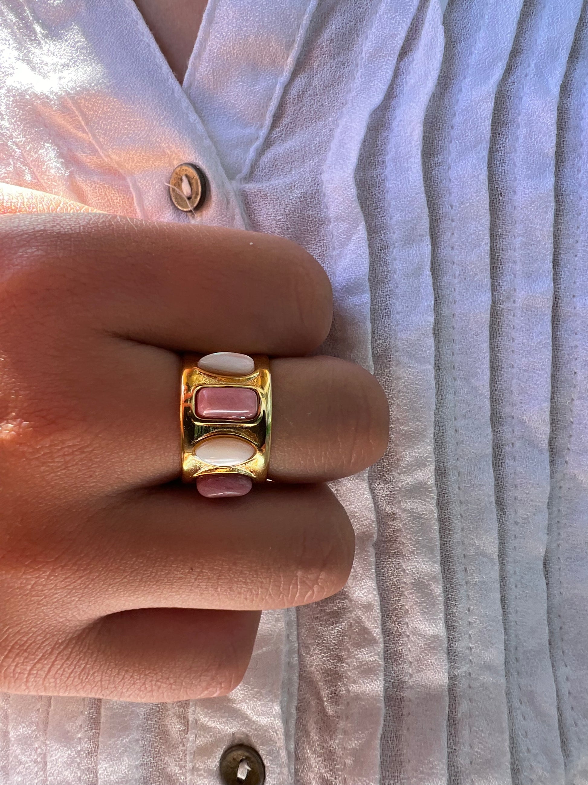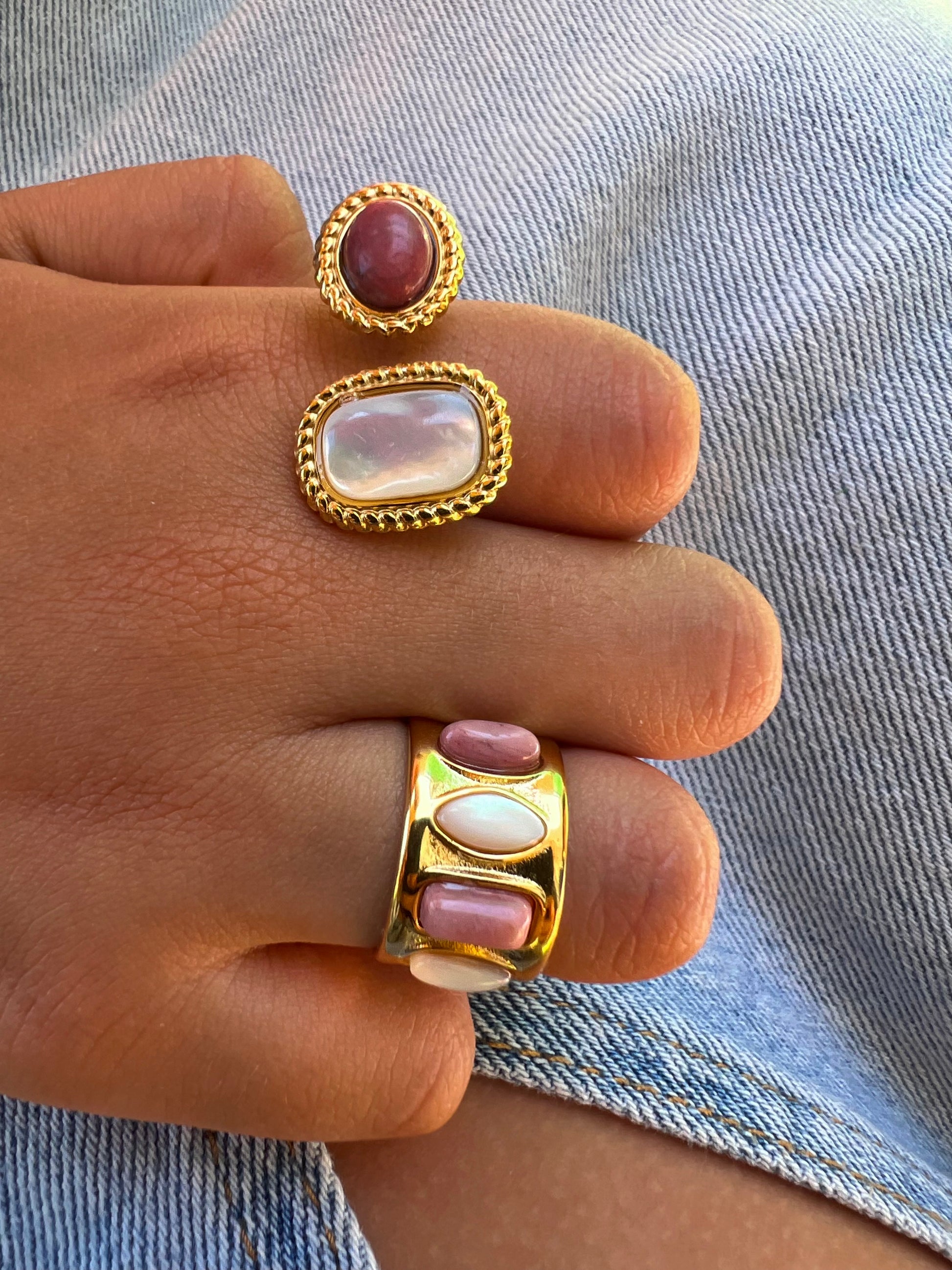 Bague ALISON en acier inoxydable, ornée de quatre pierres naturelles aux teintes douces et harmonieuses.