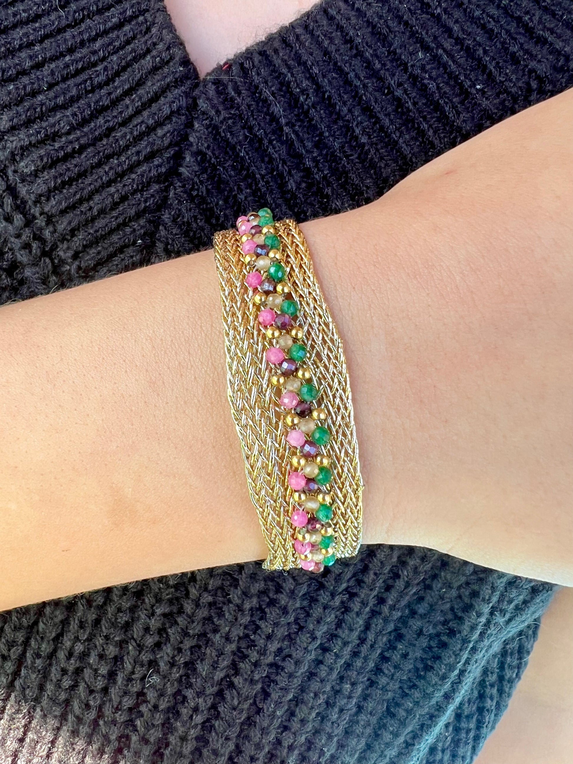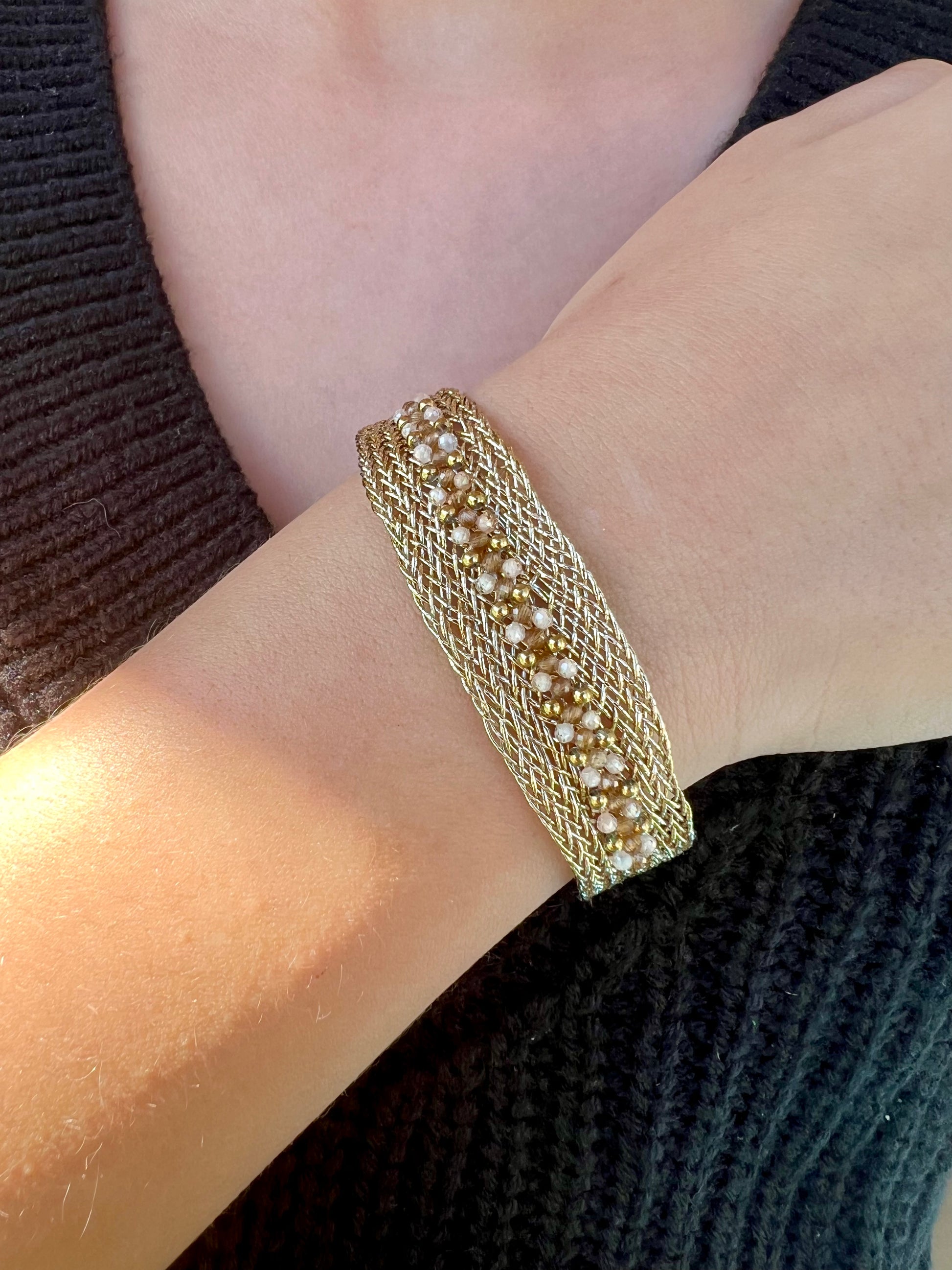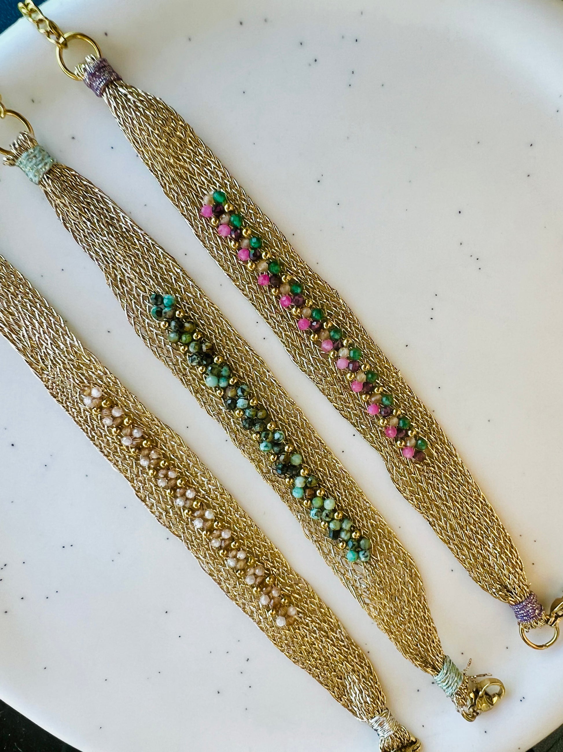 ✧ Bracelet doré en lurex et acier inoxydable serti de turquoise africaine ou d'oxyde de zirconium.