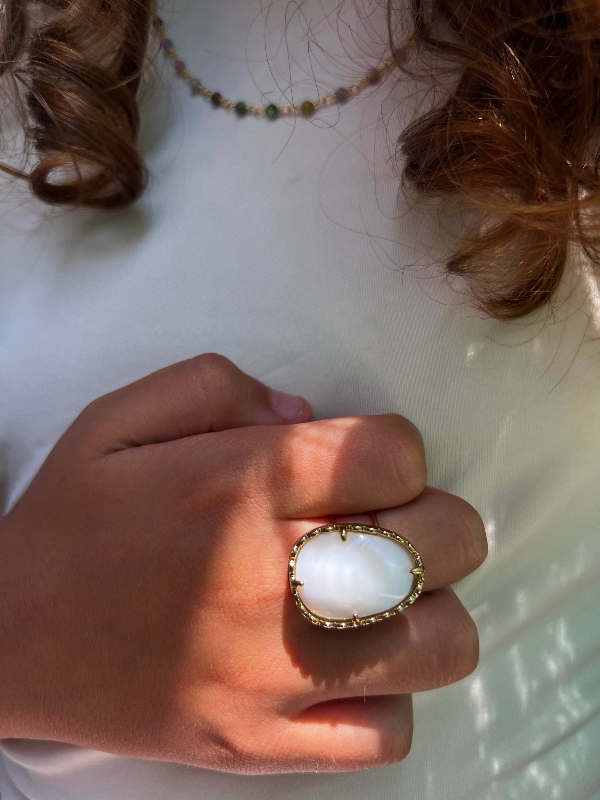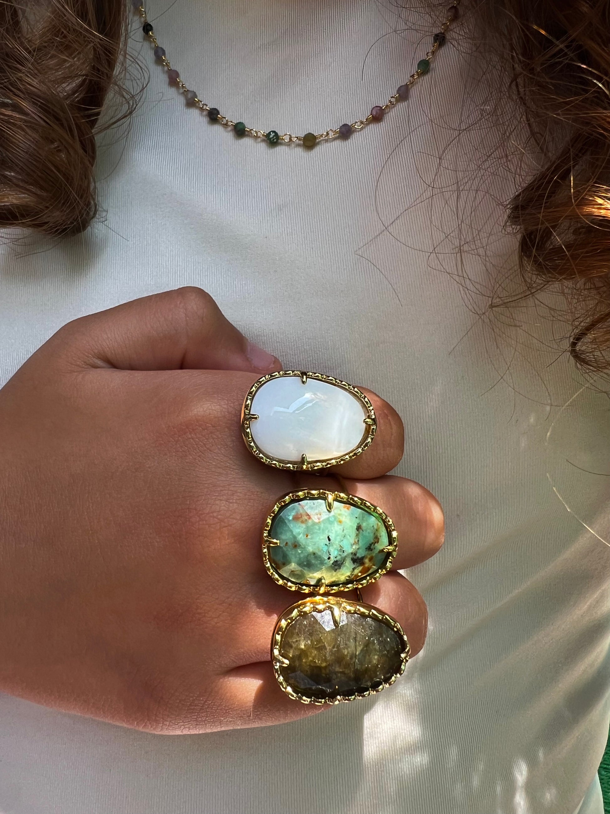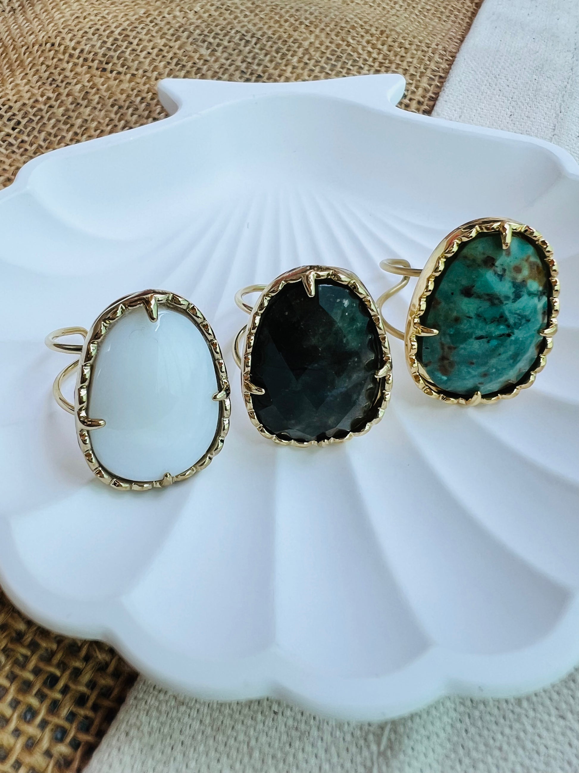 Élégante et lumineuse, cette bague en acier inoxydable doré est ornée d’une magnifique pierre naturelle aux reflets subtils ✨. Un bijou raffiné qui sublime toutes les mains, à porter seul ou en accumulation.
