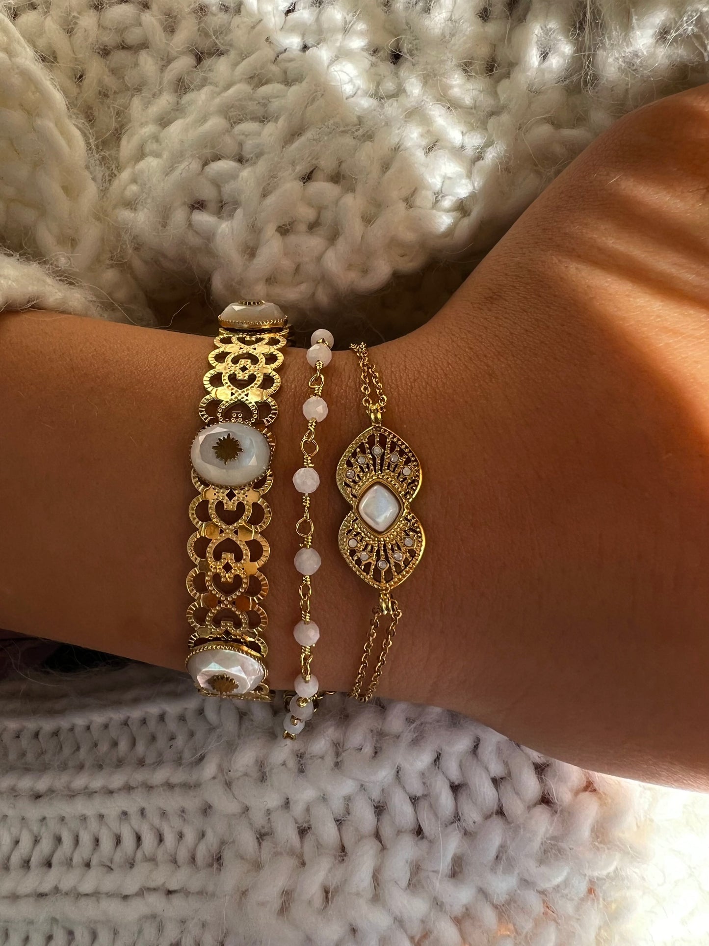 Le jonc BLAIR est orné d'une pierre naturelle ovale en rubis zoisite ou en nacre, offrant un éclat unique et une belle combinaison de couleurs. Un bijou remarquable qui ajoute une touche précieuse à votre style !