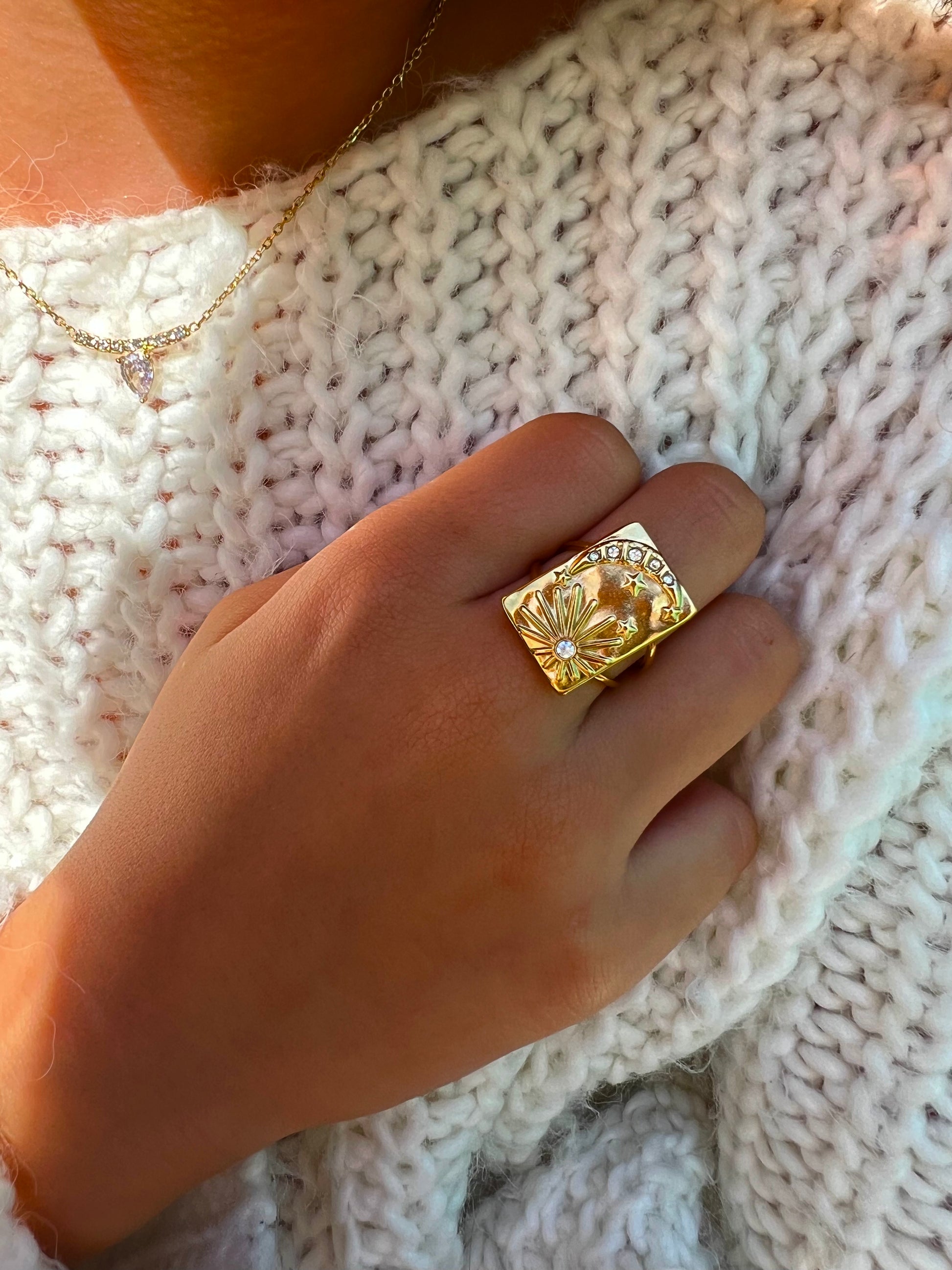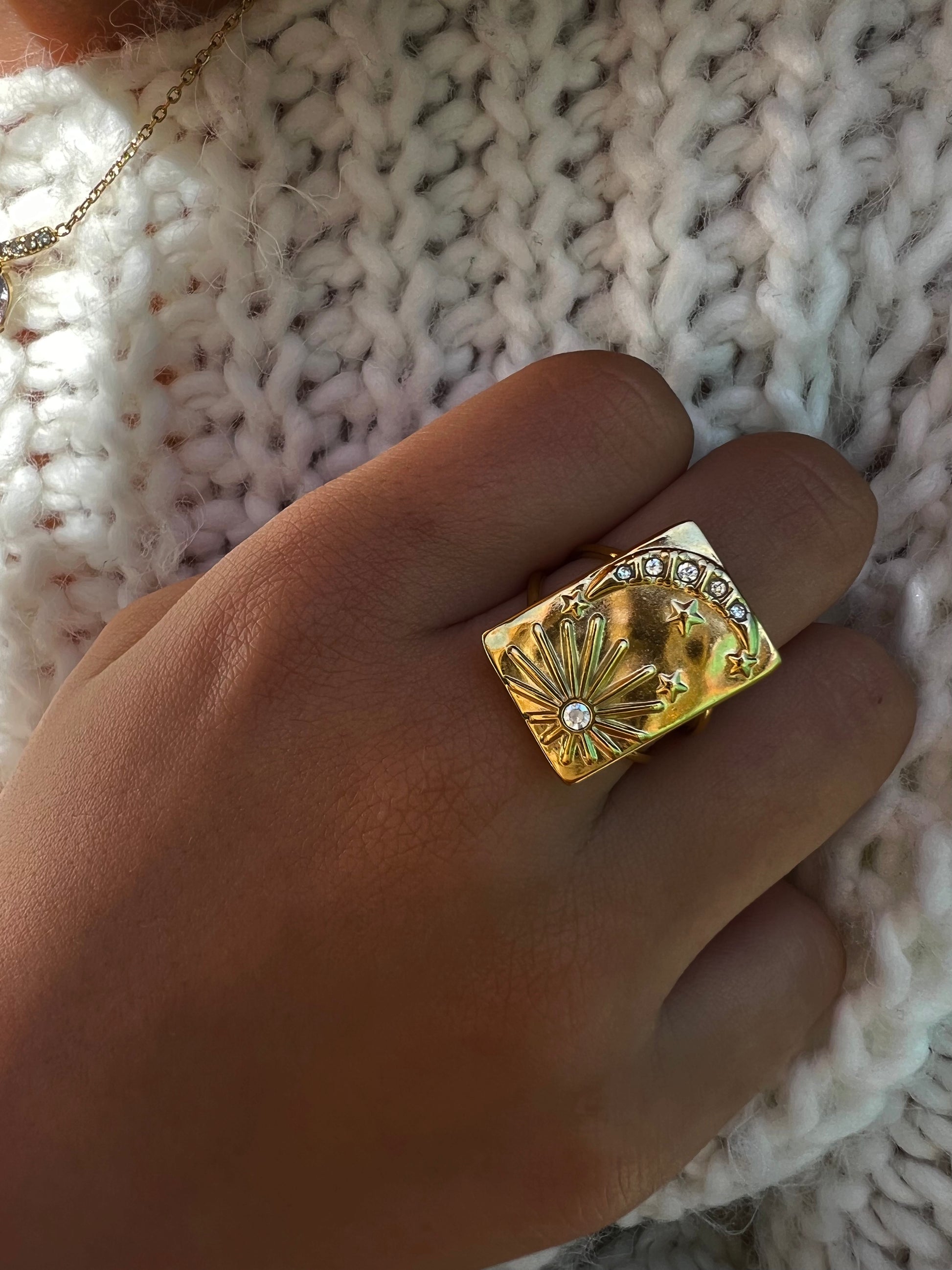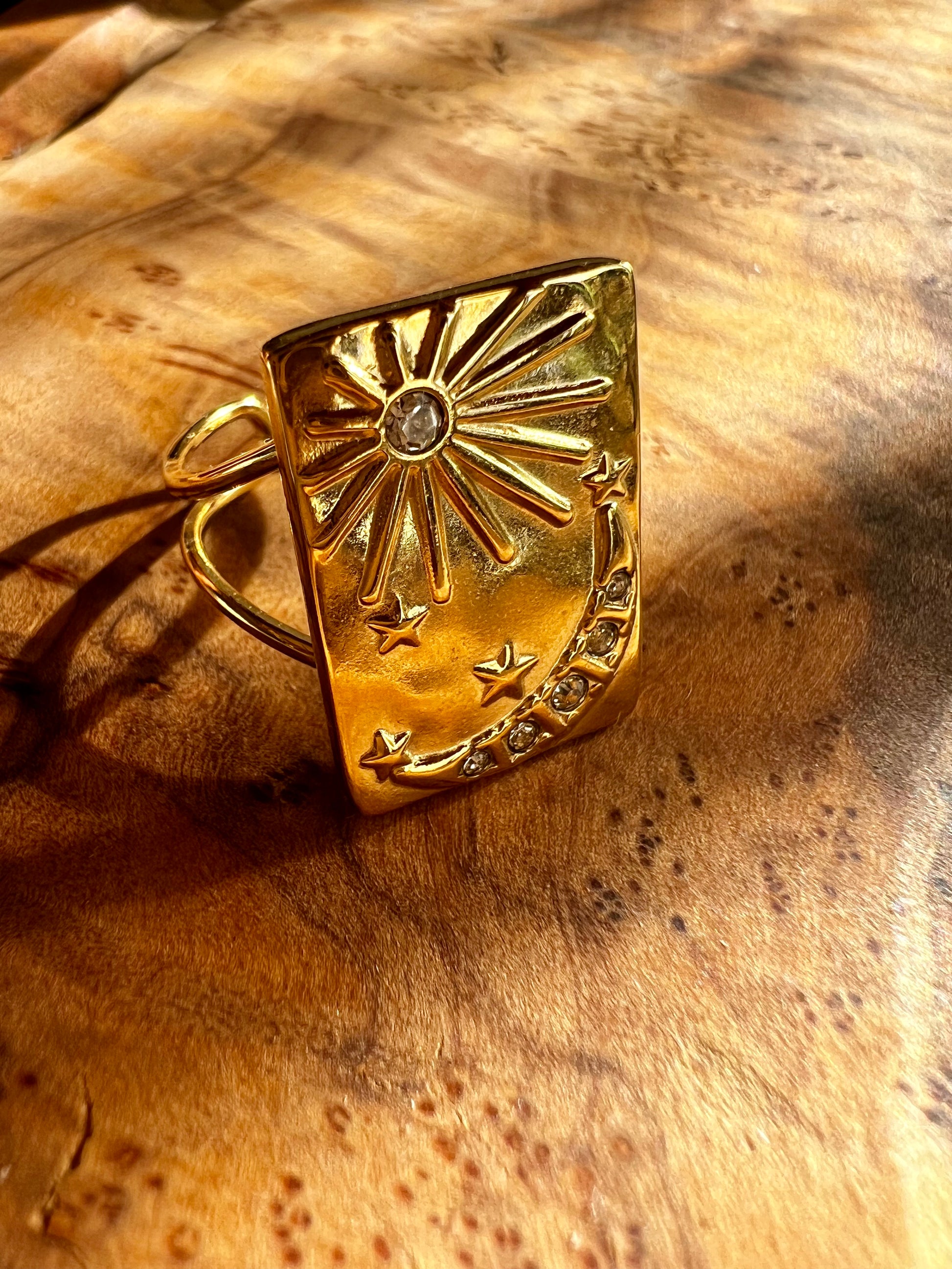 ✧ Bague dorée en acier inoxydable et strass.