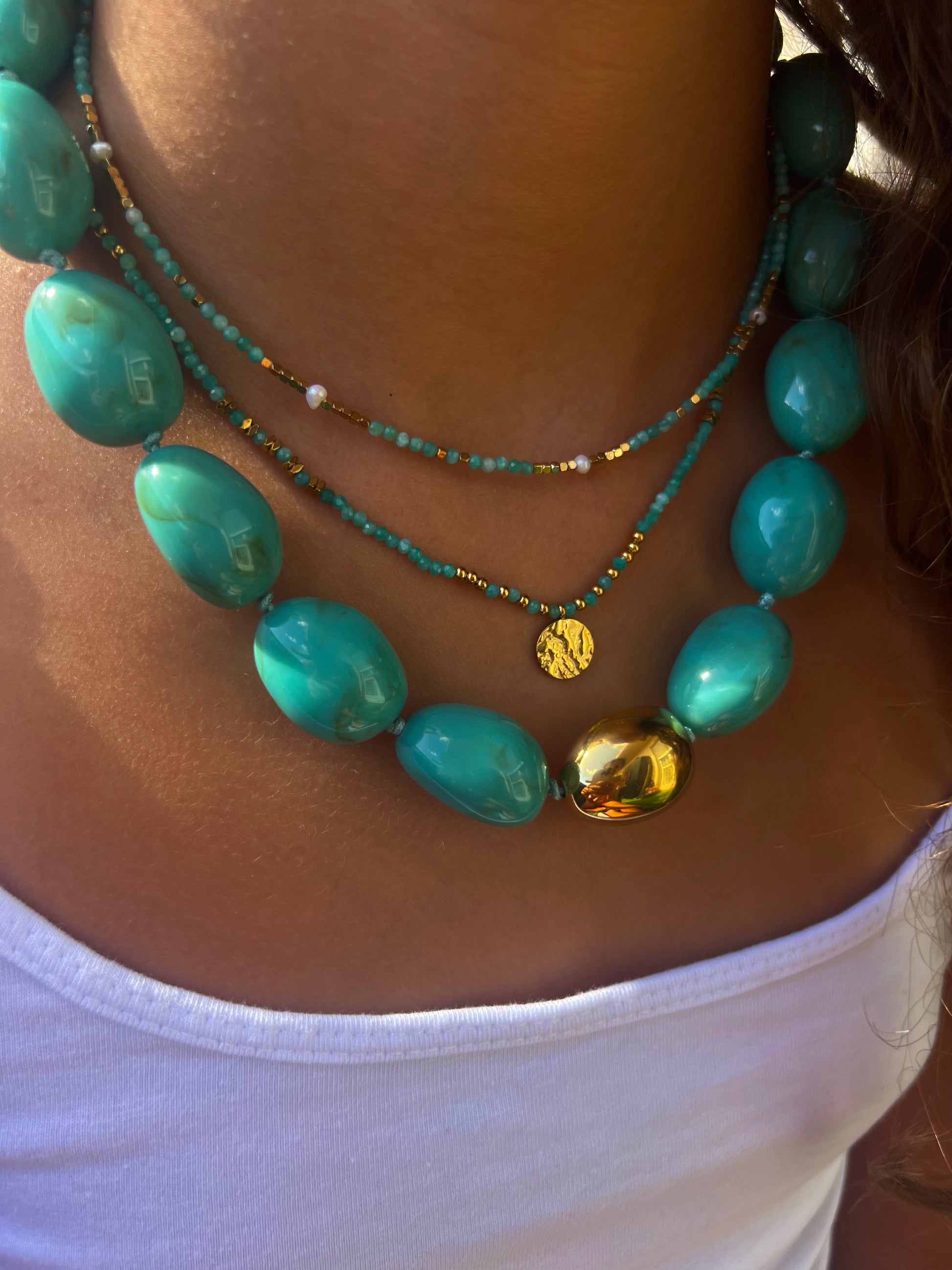 Le collier Cinnamon est une pièce audacieuse et tendance 🌟. En acier inoxydable doré, il est orné de grosses perles en résine colorée qui apportent caractère et originalité à vos tenues. Disponible en beige, marron et turquoise, il s’adapte à toutes les envies.