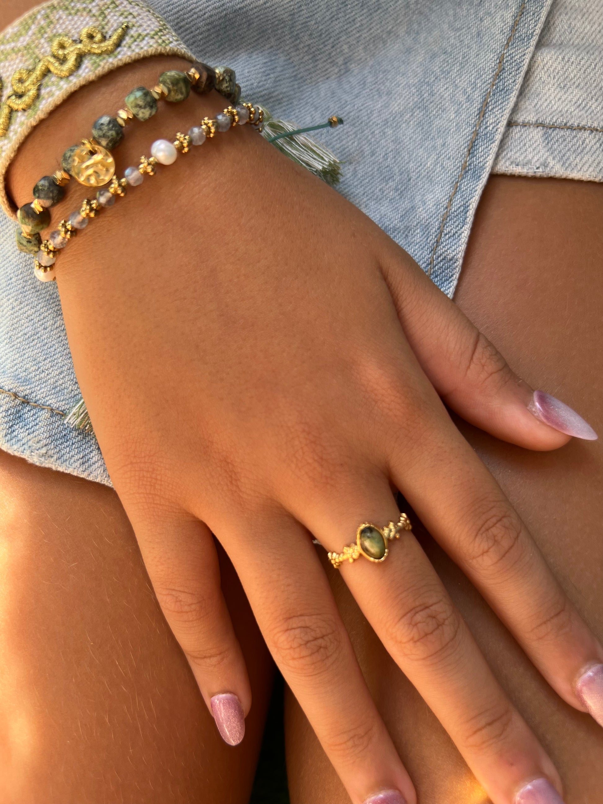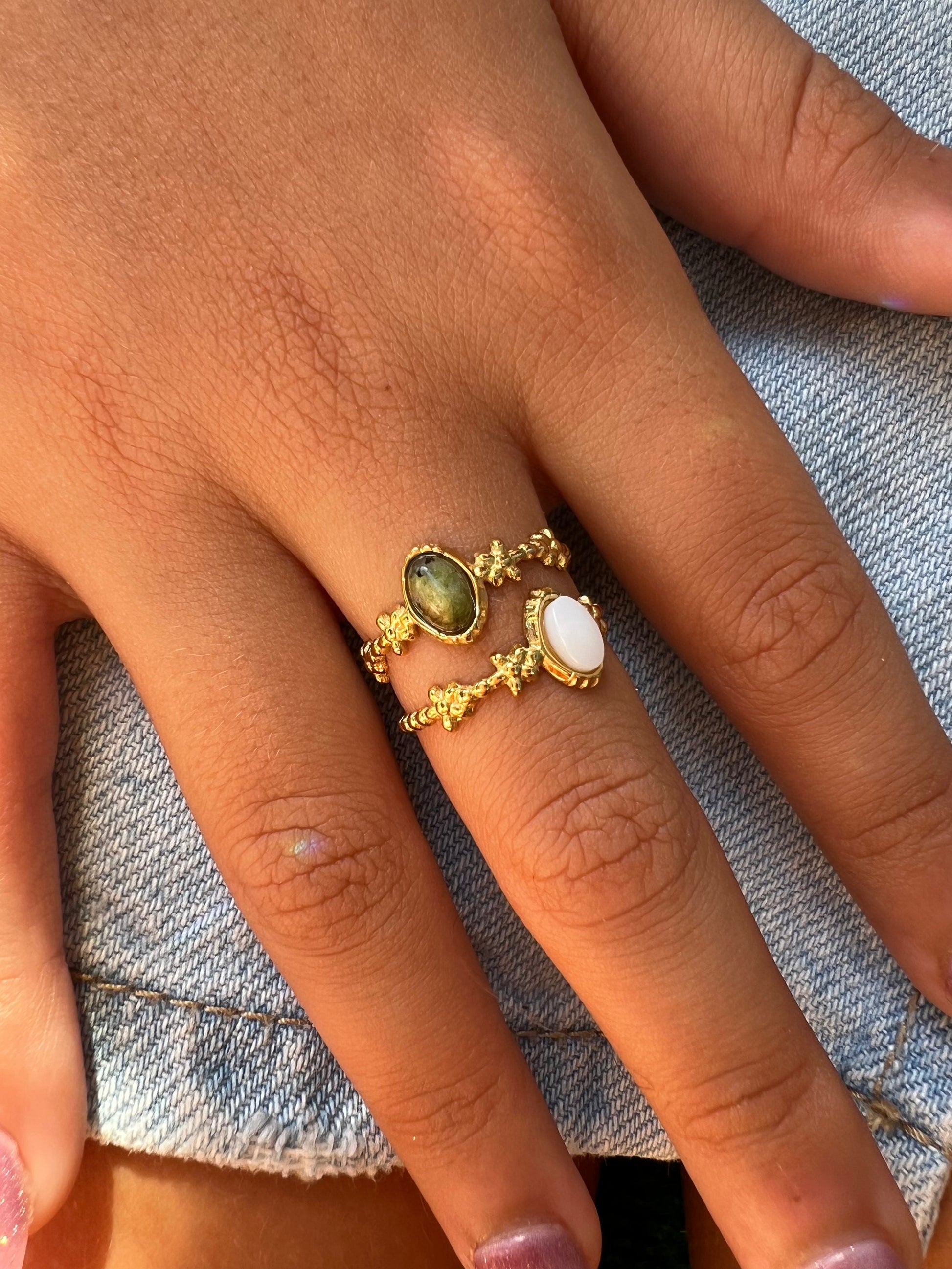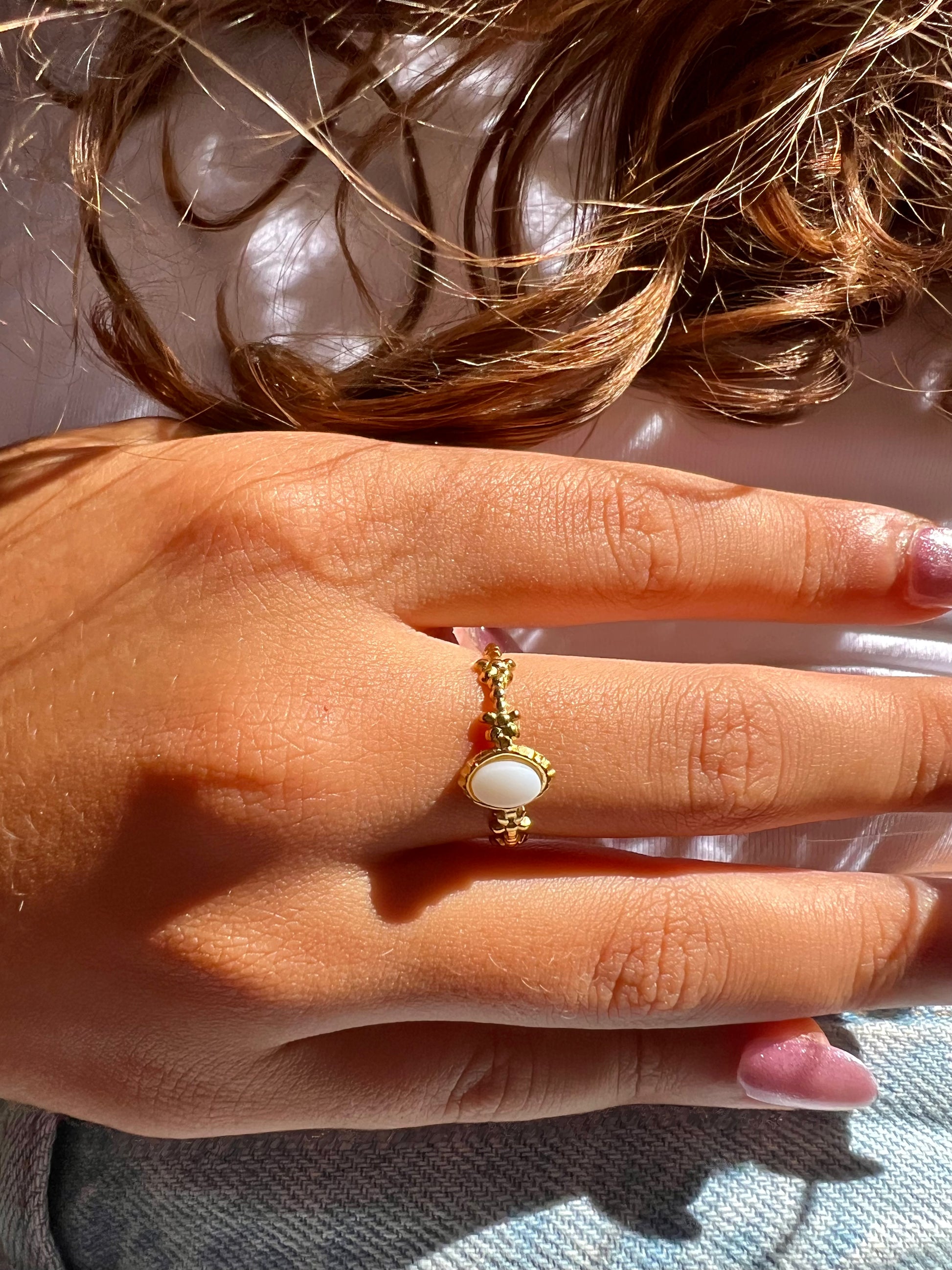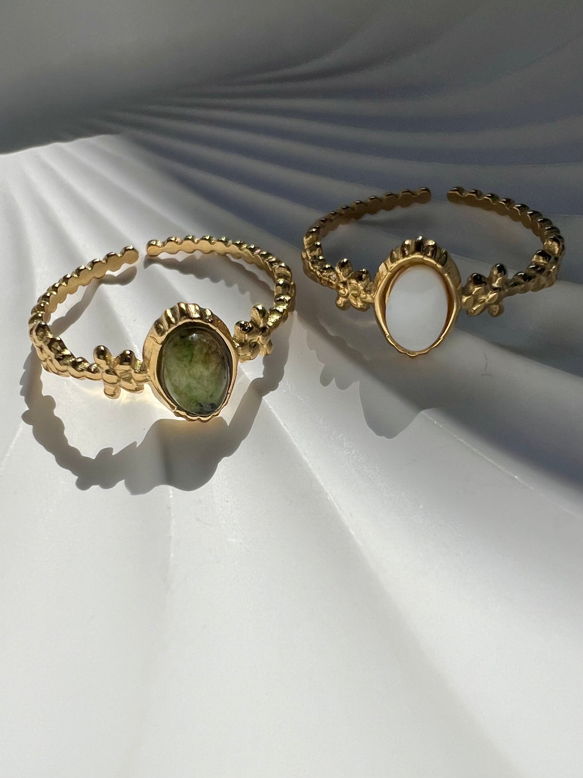 Épure et raffinement pour la bague Clara 🌿, au design minimaliste rehaussé d’une pierre naturelle en jade blanc ou en turquoise africaine.