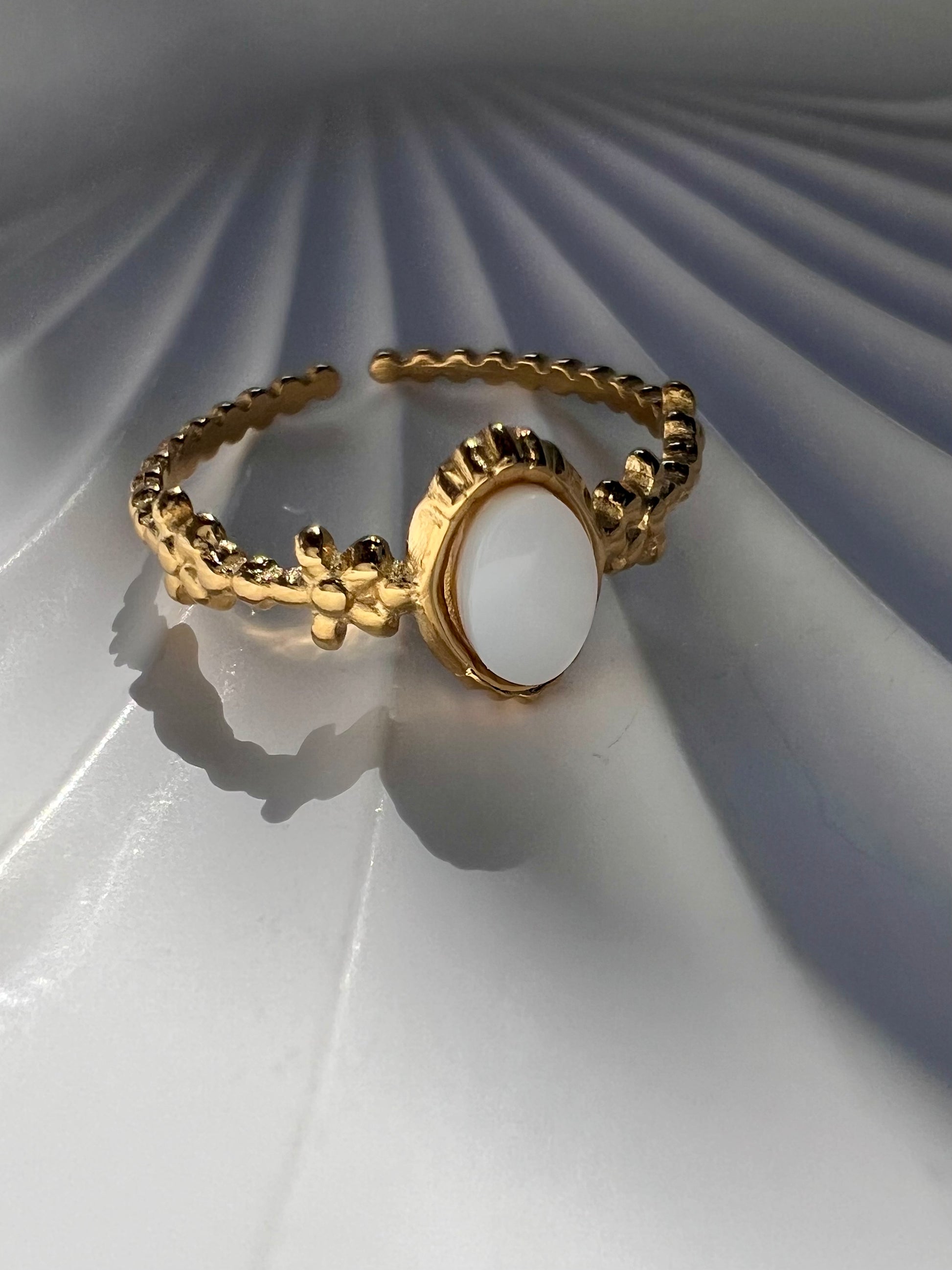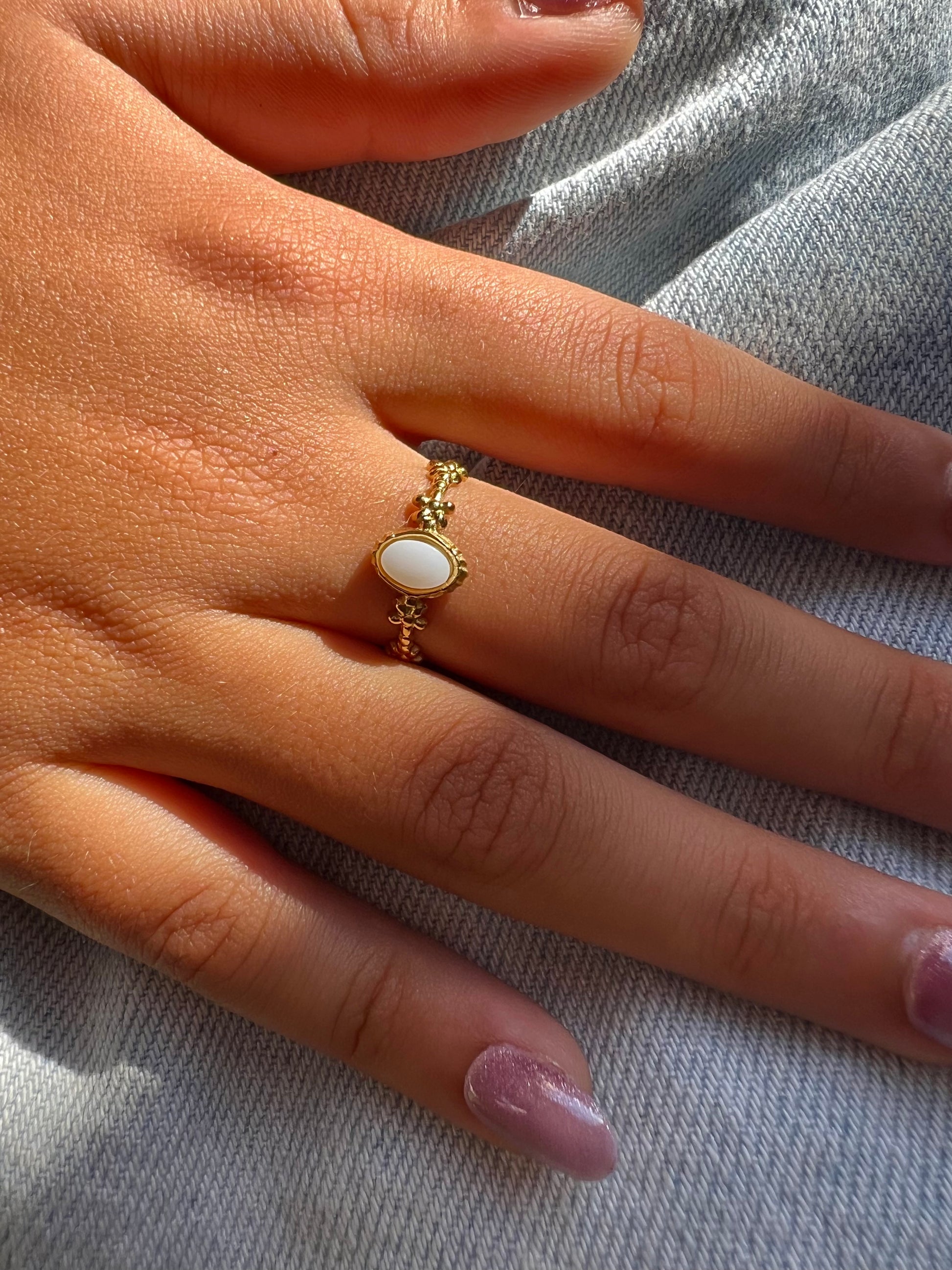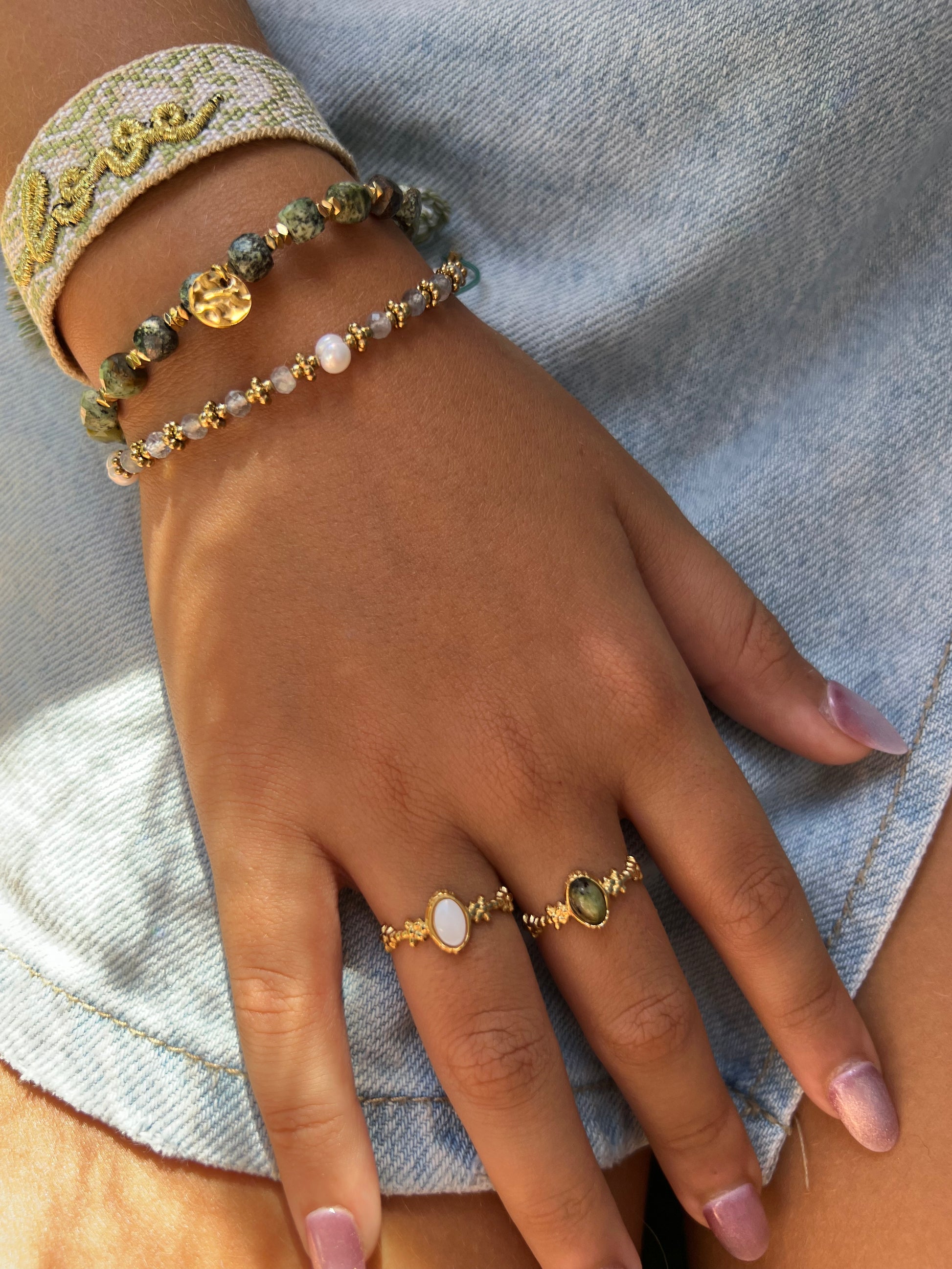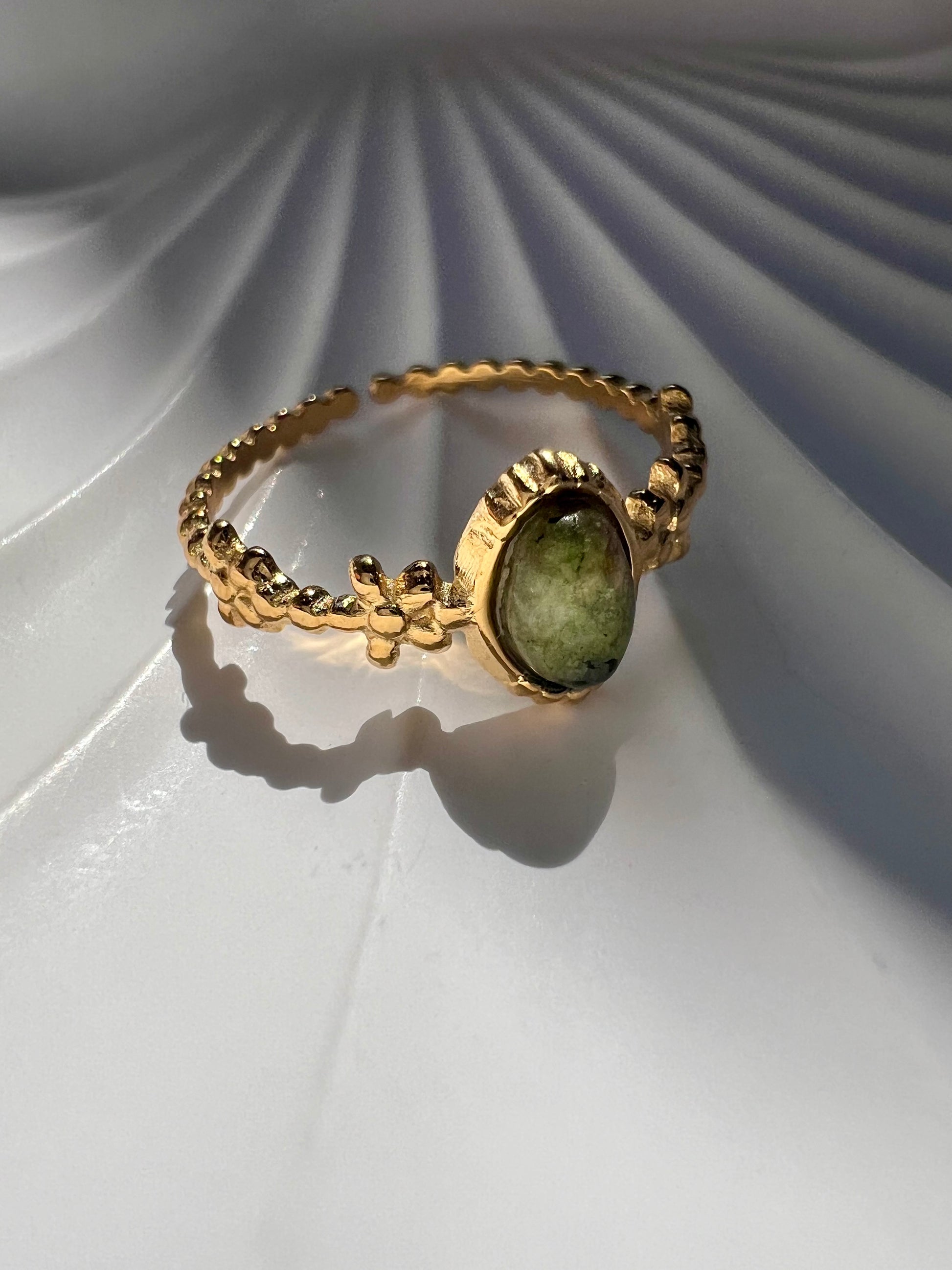 Épure et raffinement pour la bague Clara 🌿, au design minimaliste rehaussé d’une pierre naturelle en jade blanc ou en turquoise africaine.