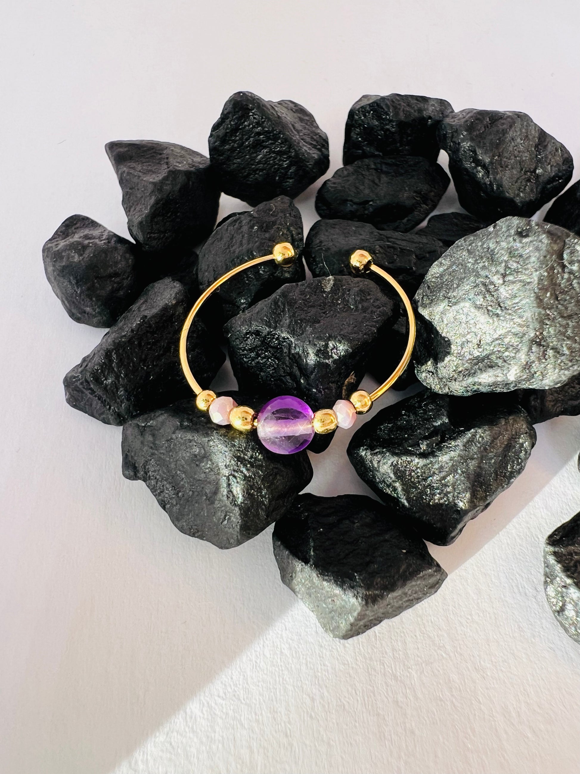 ✧ Pierres naturelles: améthyste, jaspe dalmatien et agate verte.