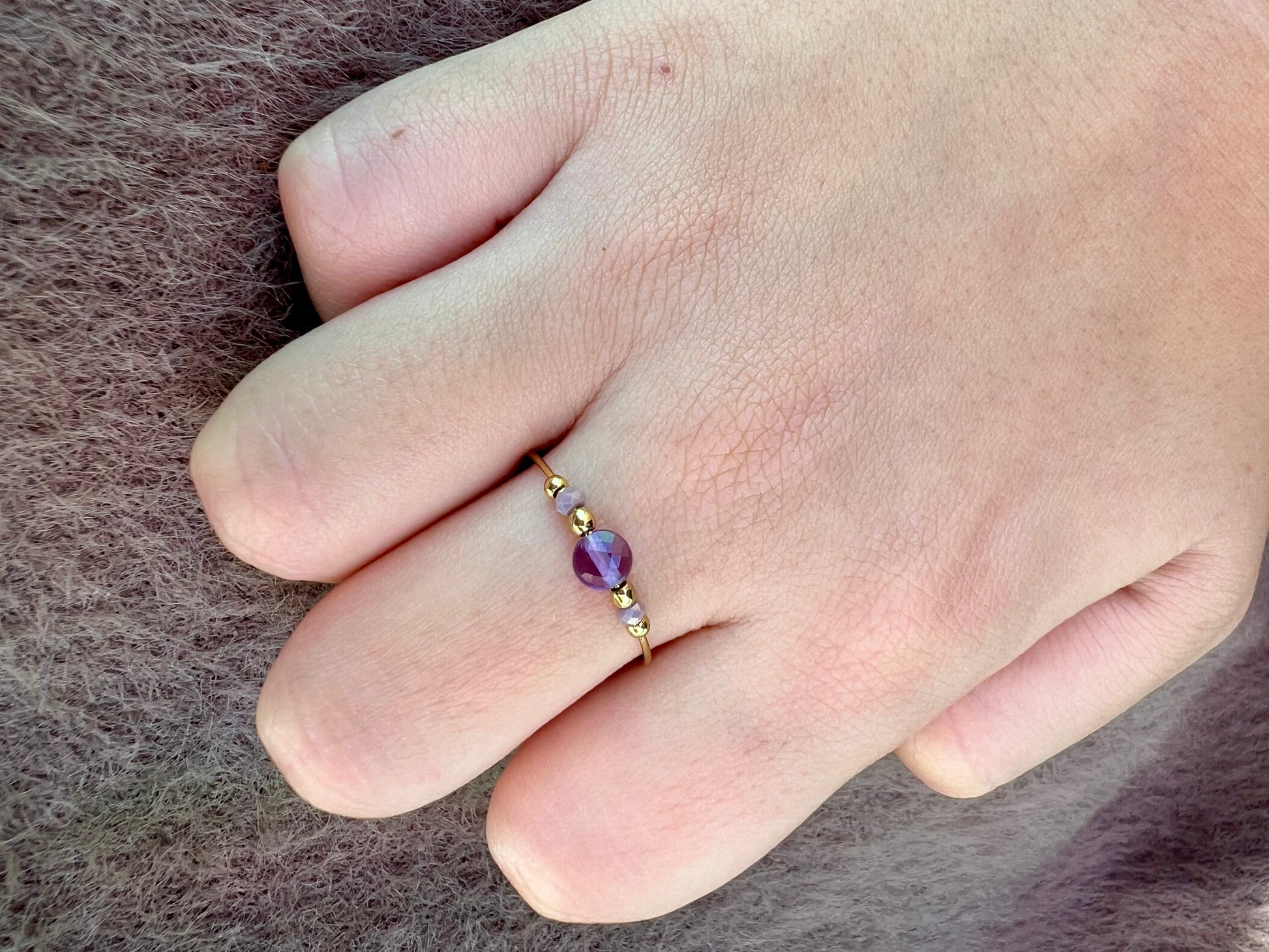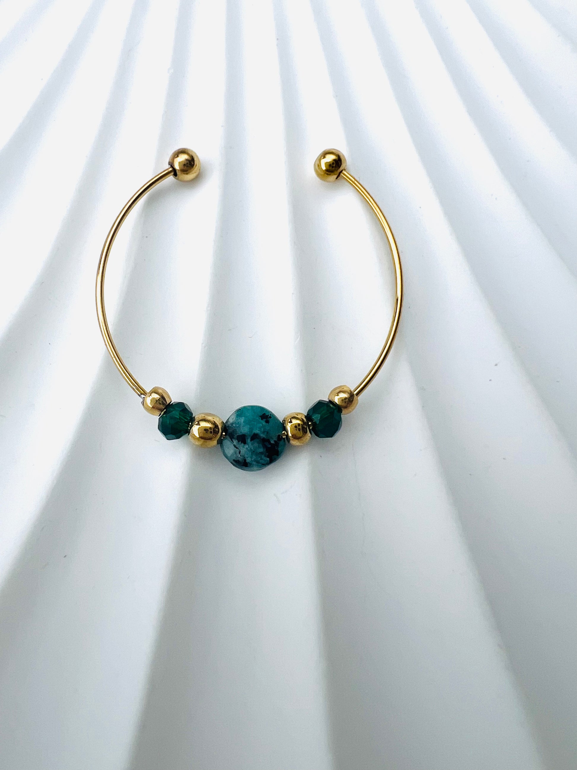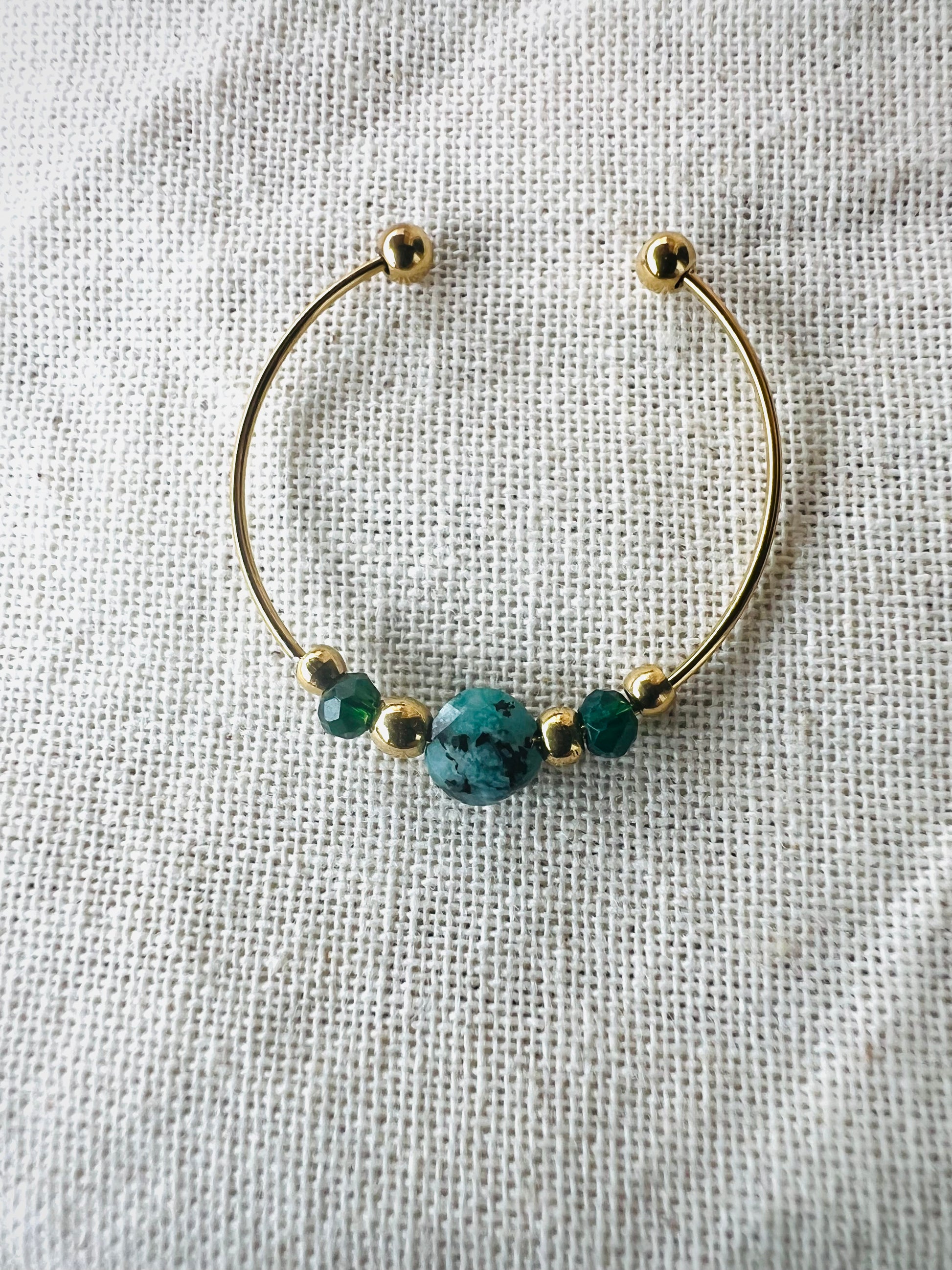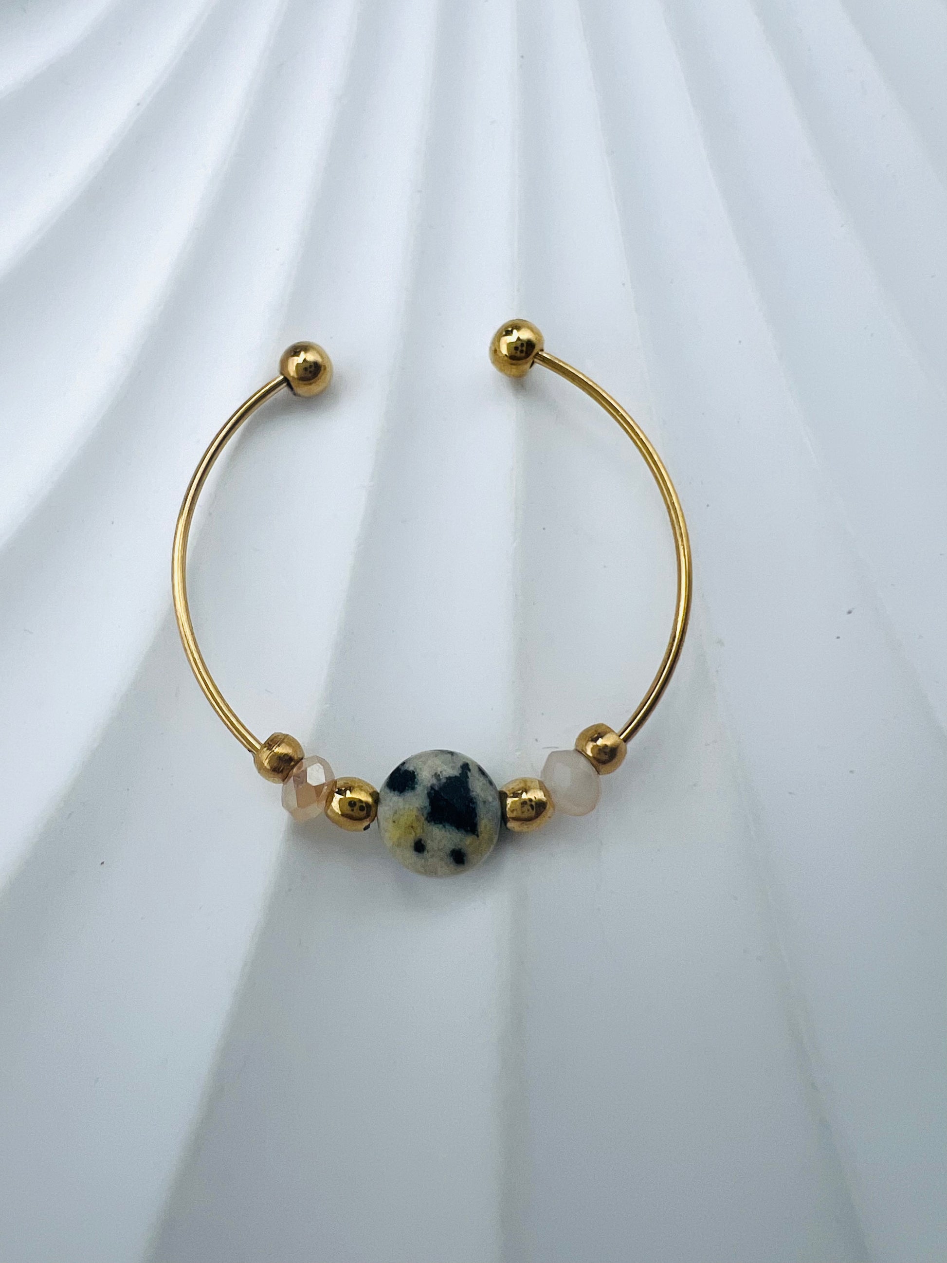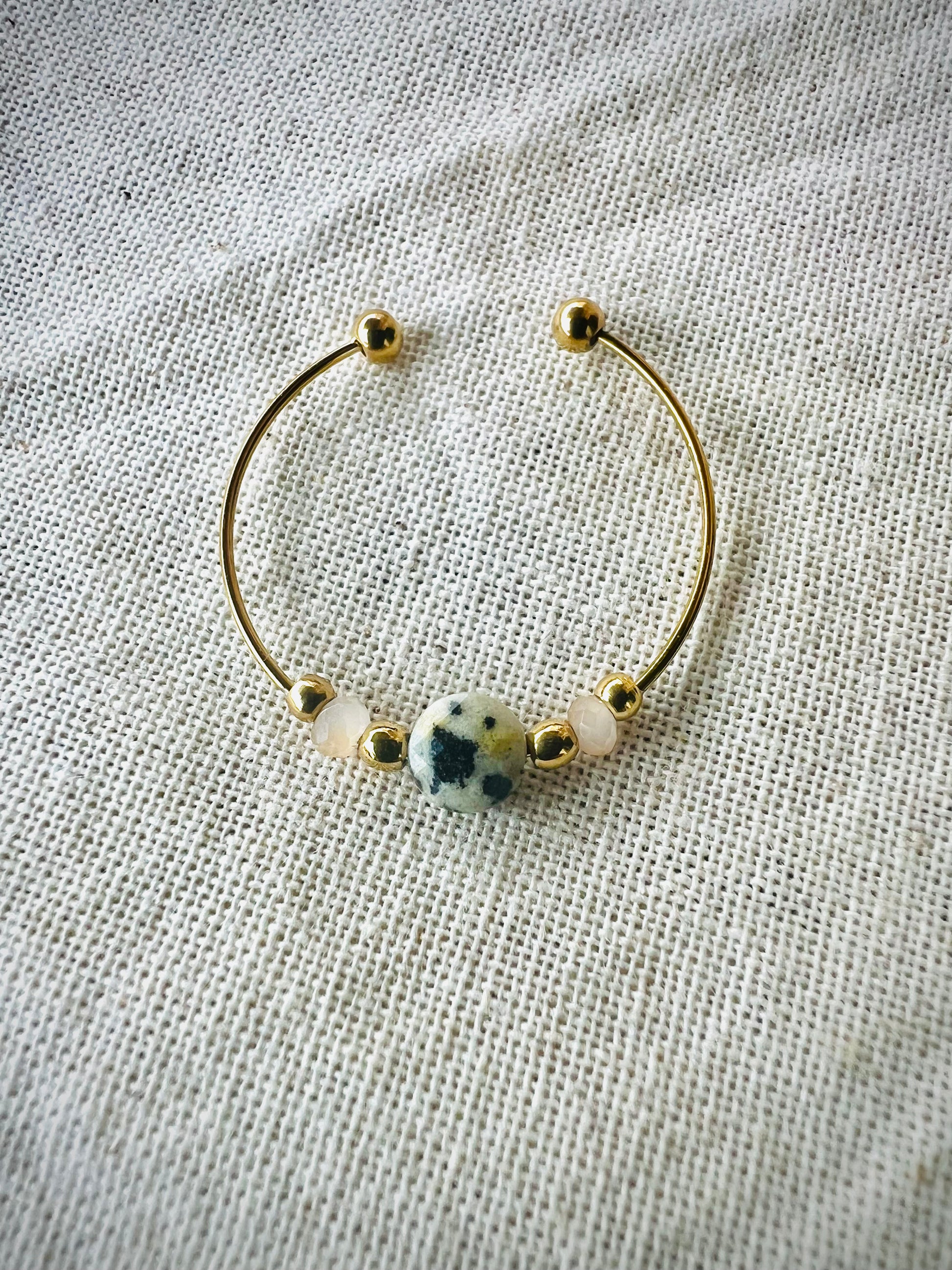 Disponible en 💜 améthyste, ⚪ jaspe dalmatien, 💚 agate verte.