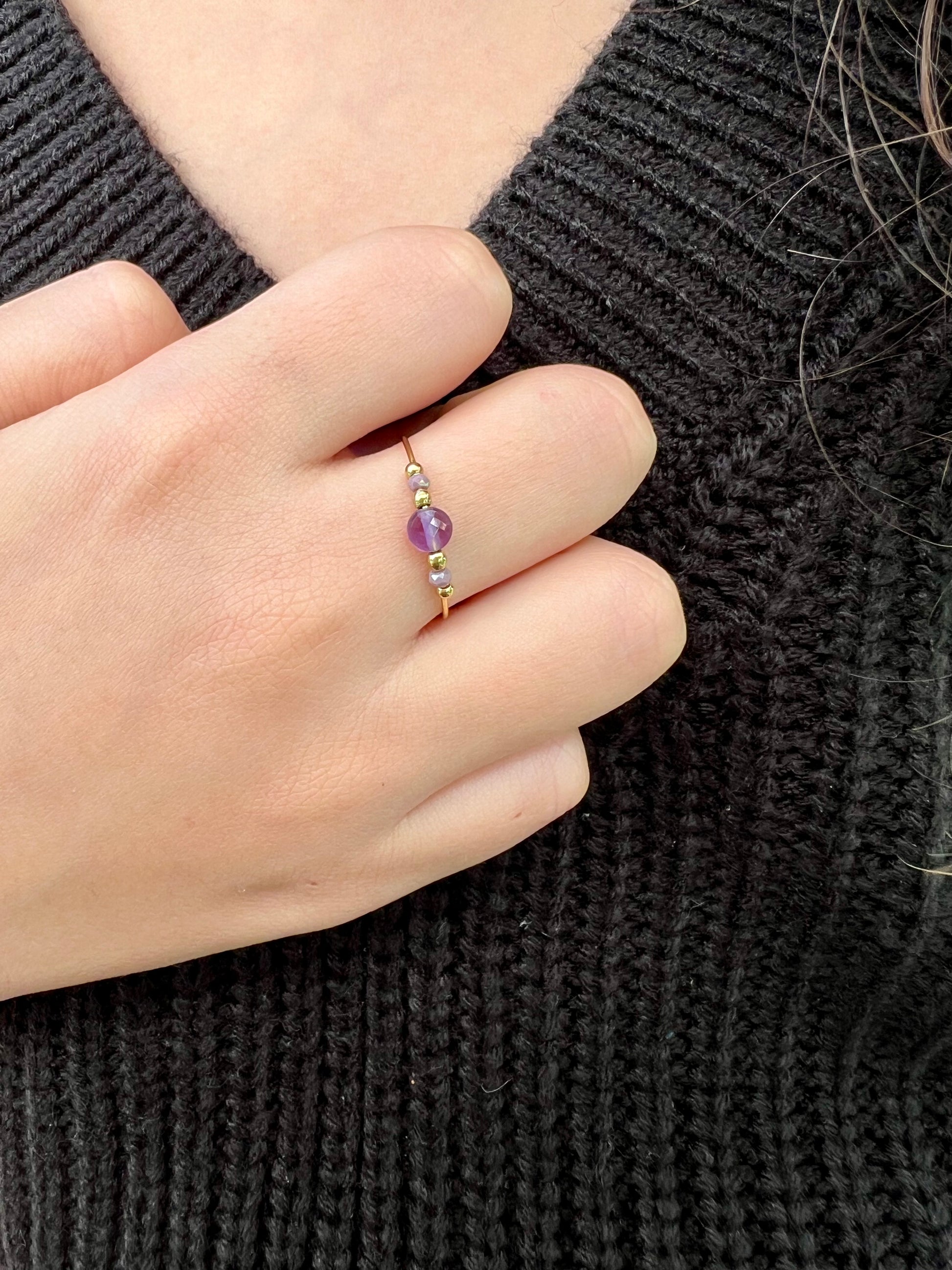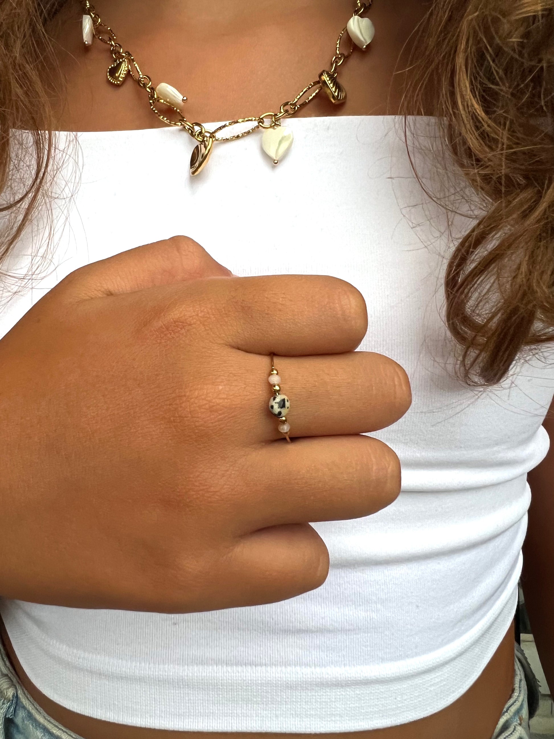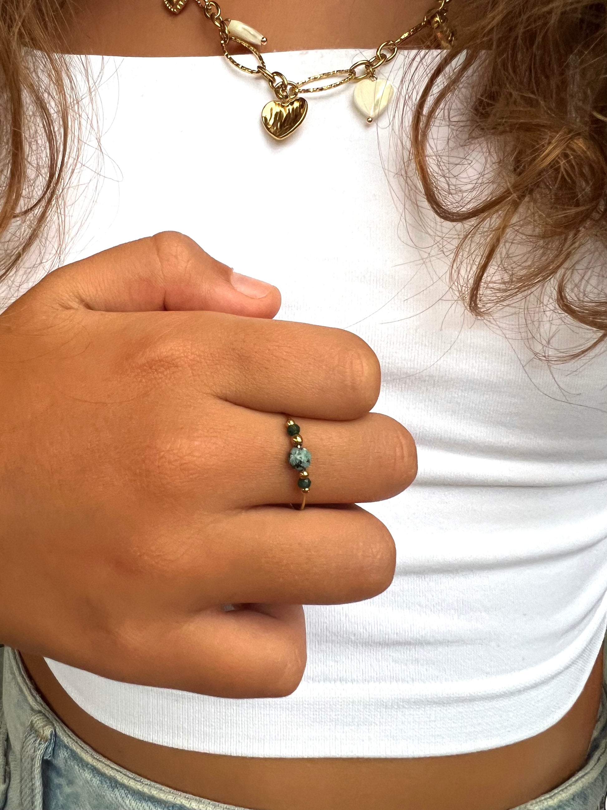 ✨ Délicate et raffinée, la bague Clorana en acier inoxydable 💛 se pare de pierres naturelles 💎.