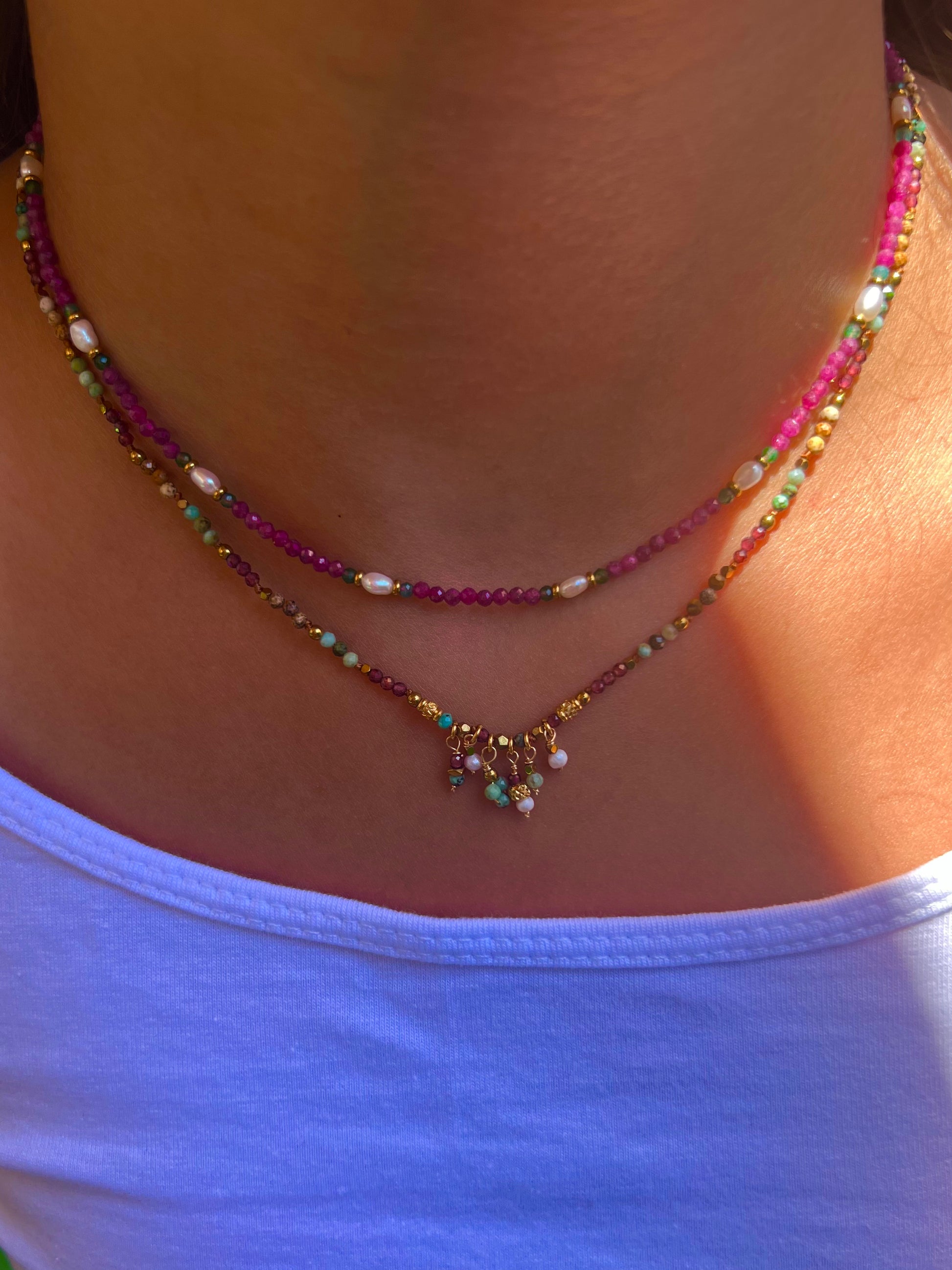 ✧ Collier en acier inoxydable perlé en pierres naturelles pampilles en perles d'eau douce et pierres.