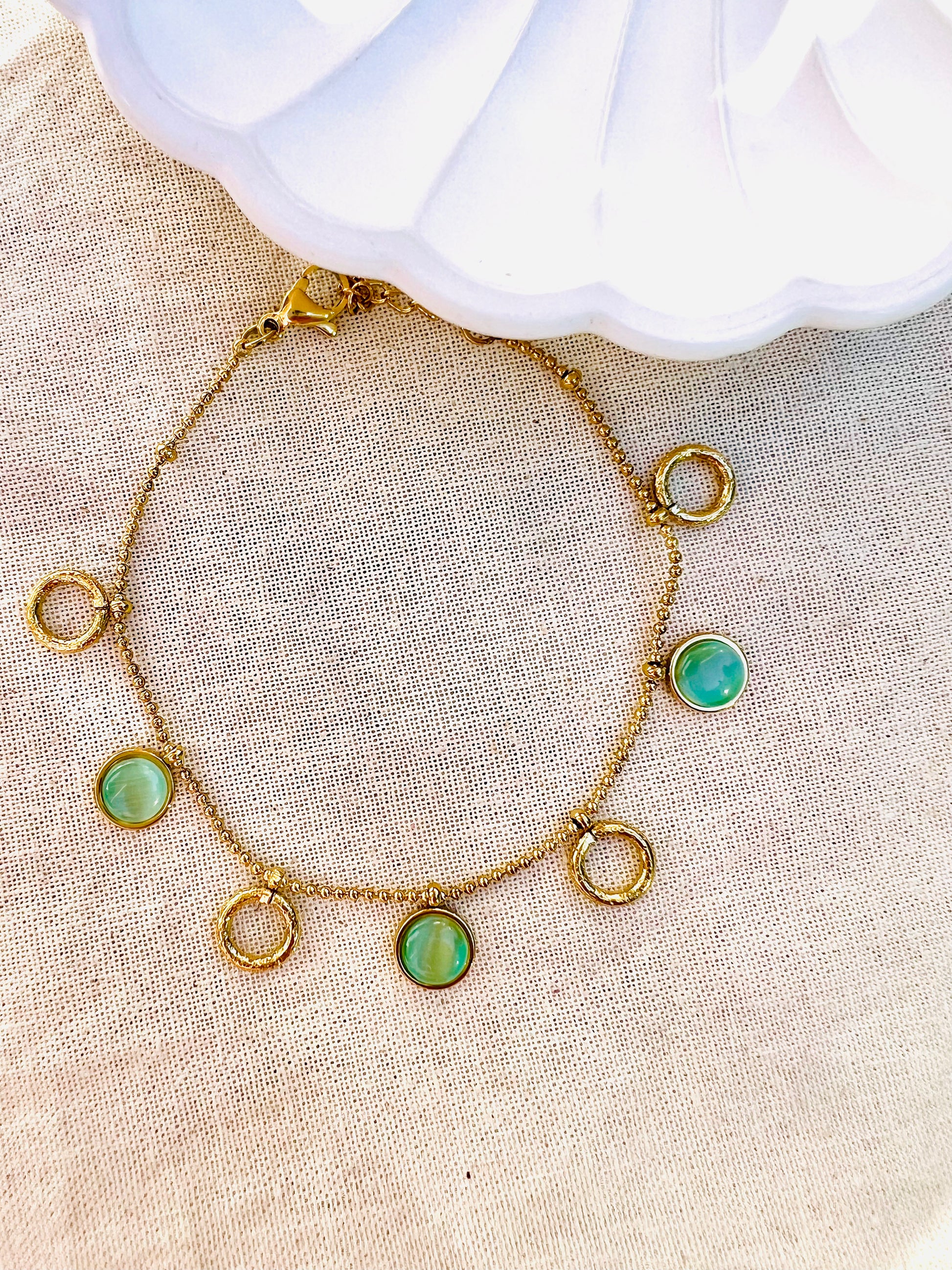 Le bracelet DARIA séduit par son éclat intemporel. Composé d’une pierre ronde en œil de chat bleu montée sur acier inoxydable, il évoque à la fois élégance et sérénité. Une touche raffinée à porter chaque jour 🌊.