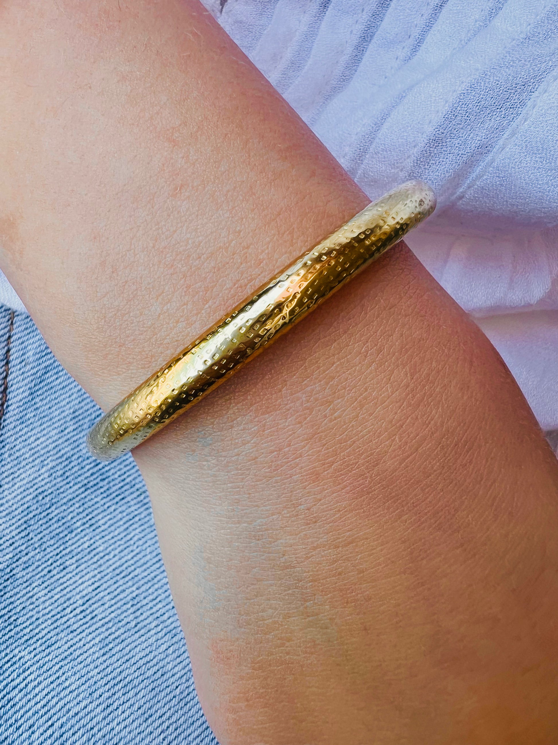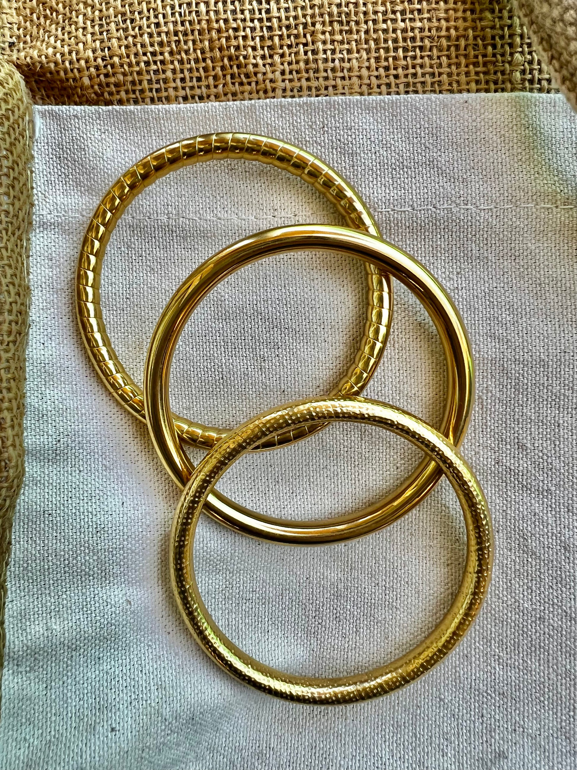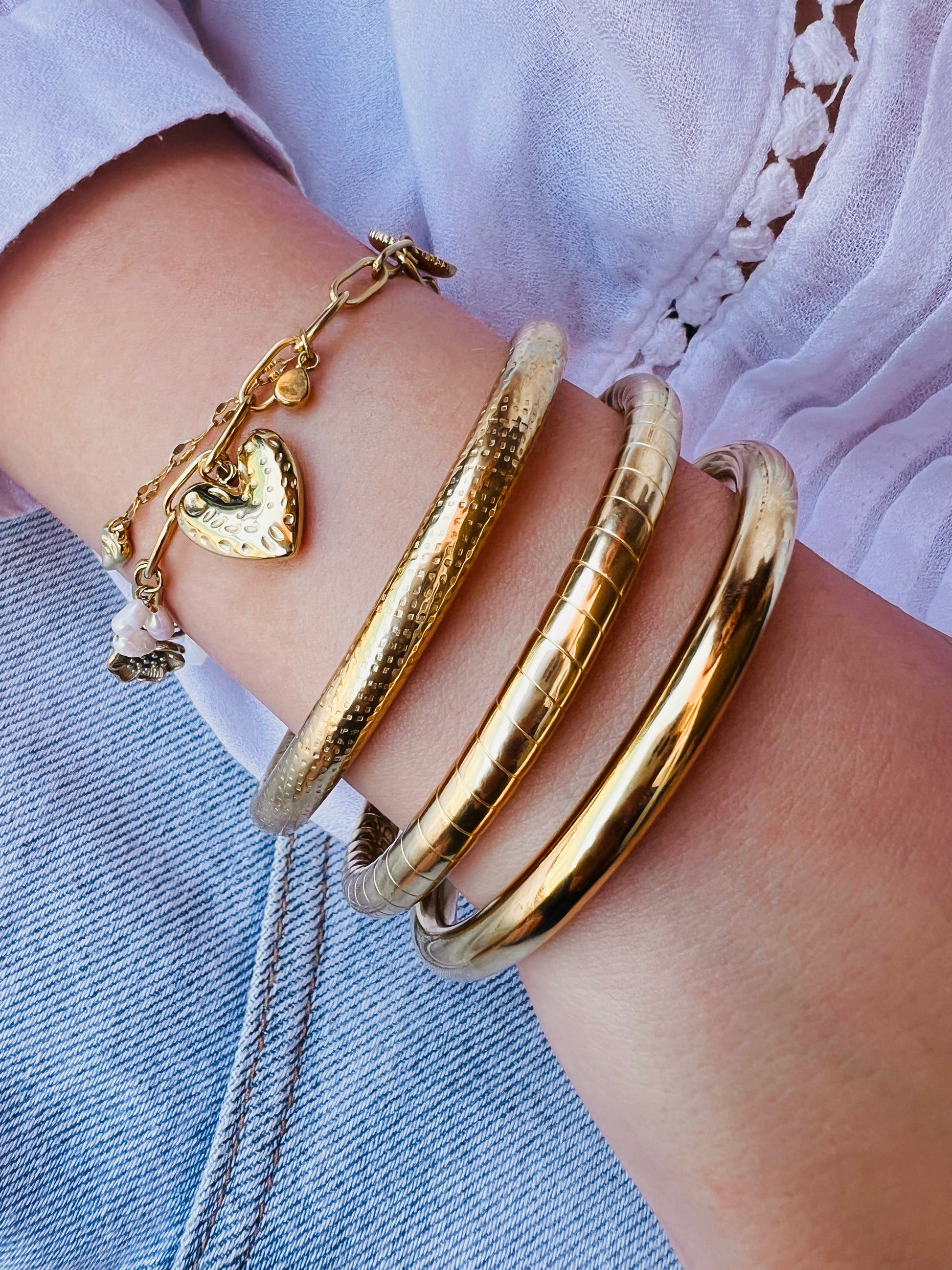 ✧ 3 joncs en acier inoxydable aux 3 motifs décoratifs différents : lisse, petits pois et strié.