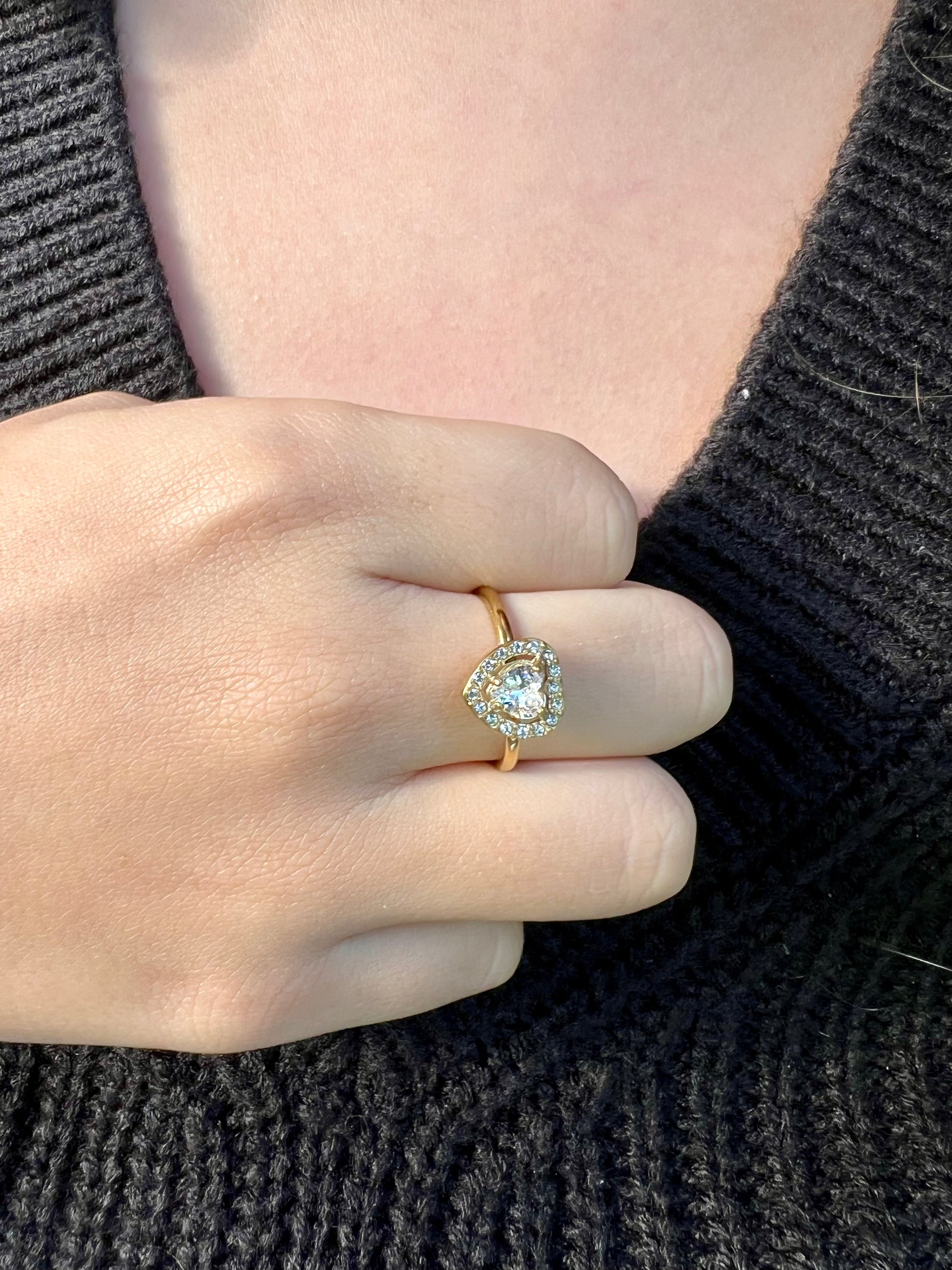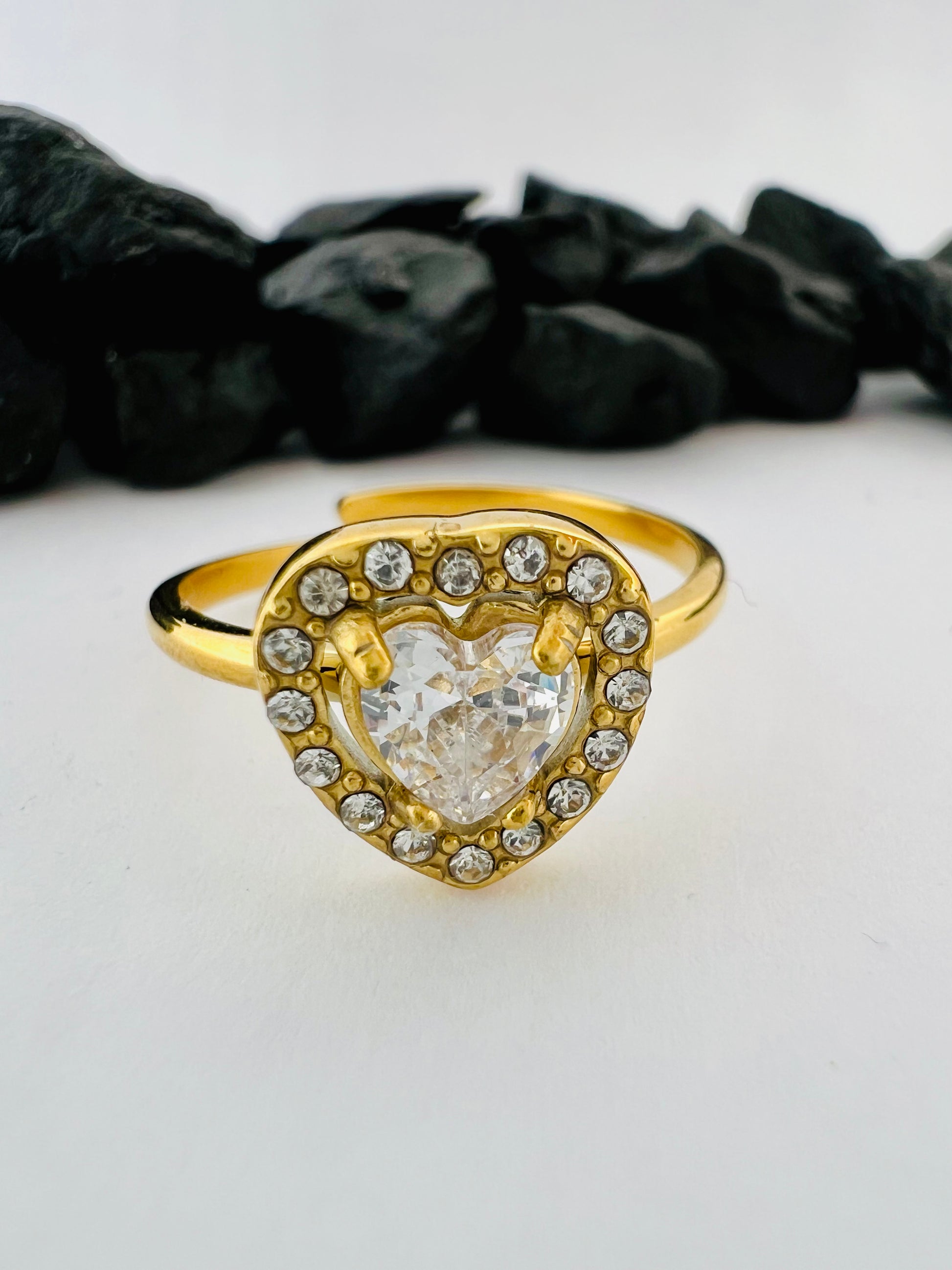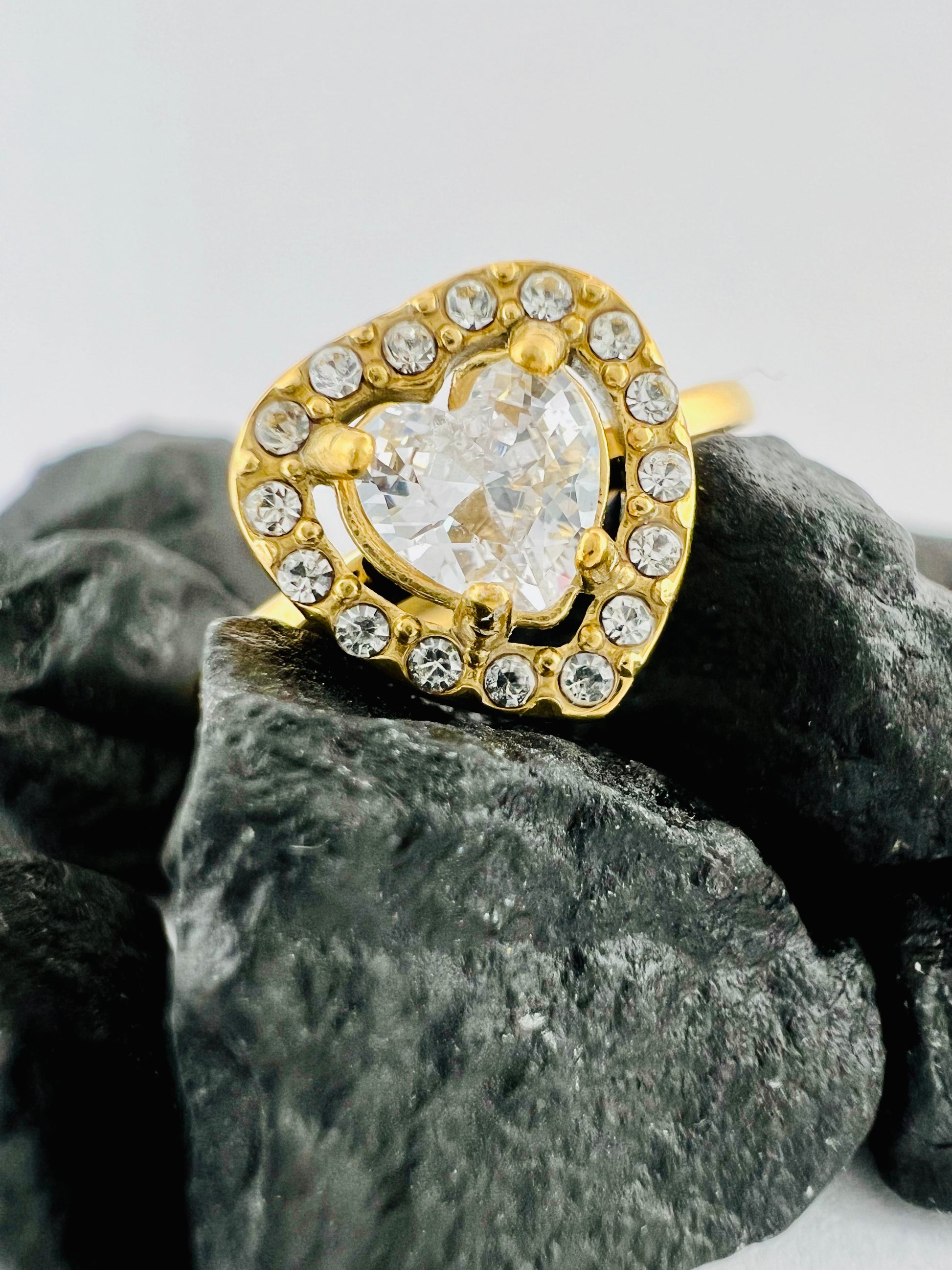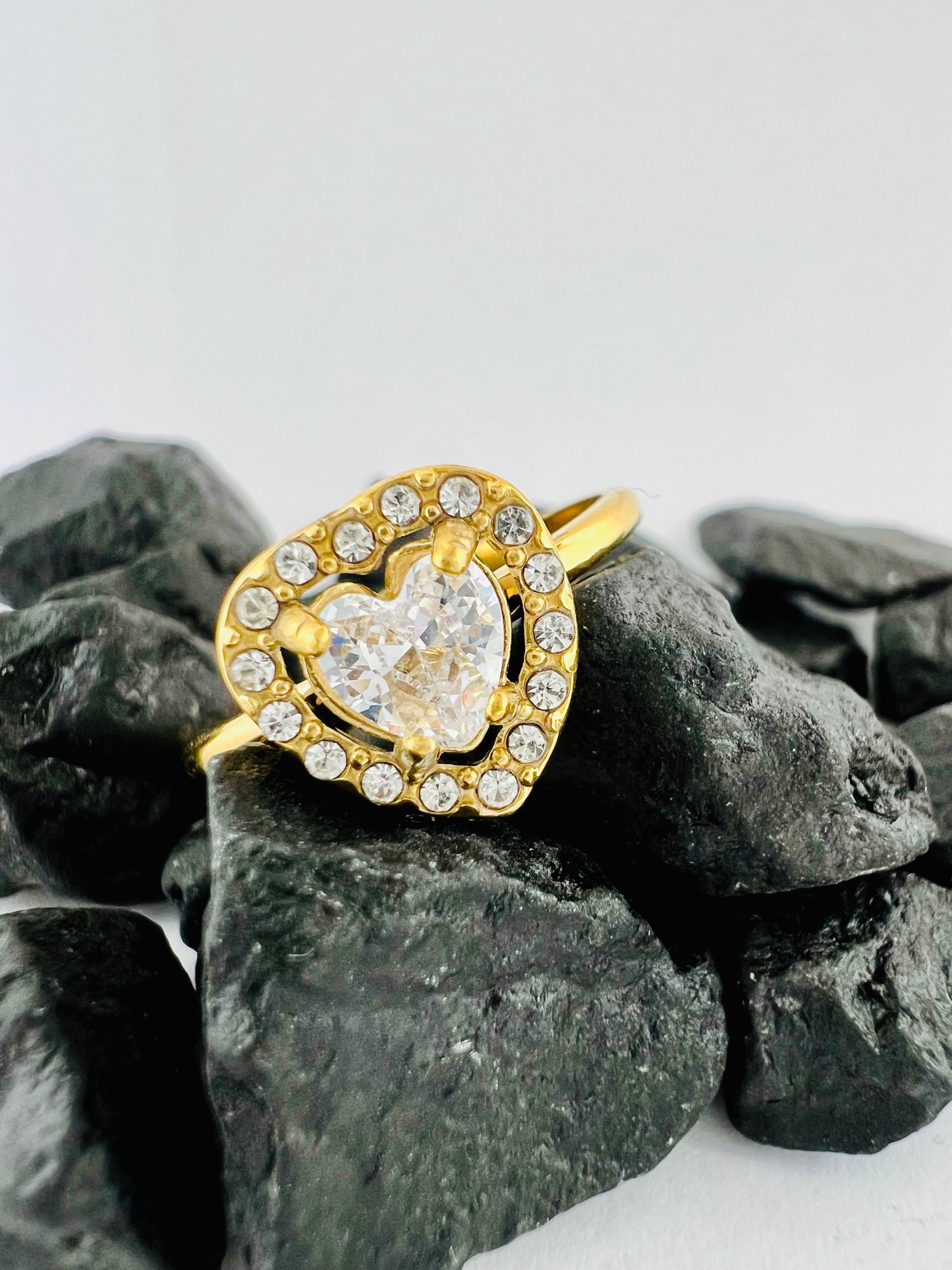 ✧ Bague dorée en acier inoxydable et cristal.