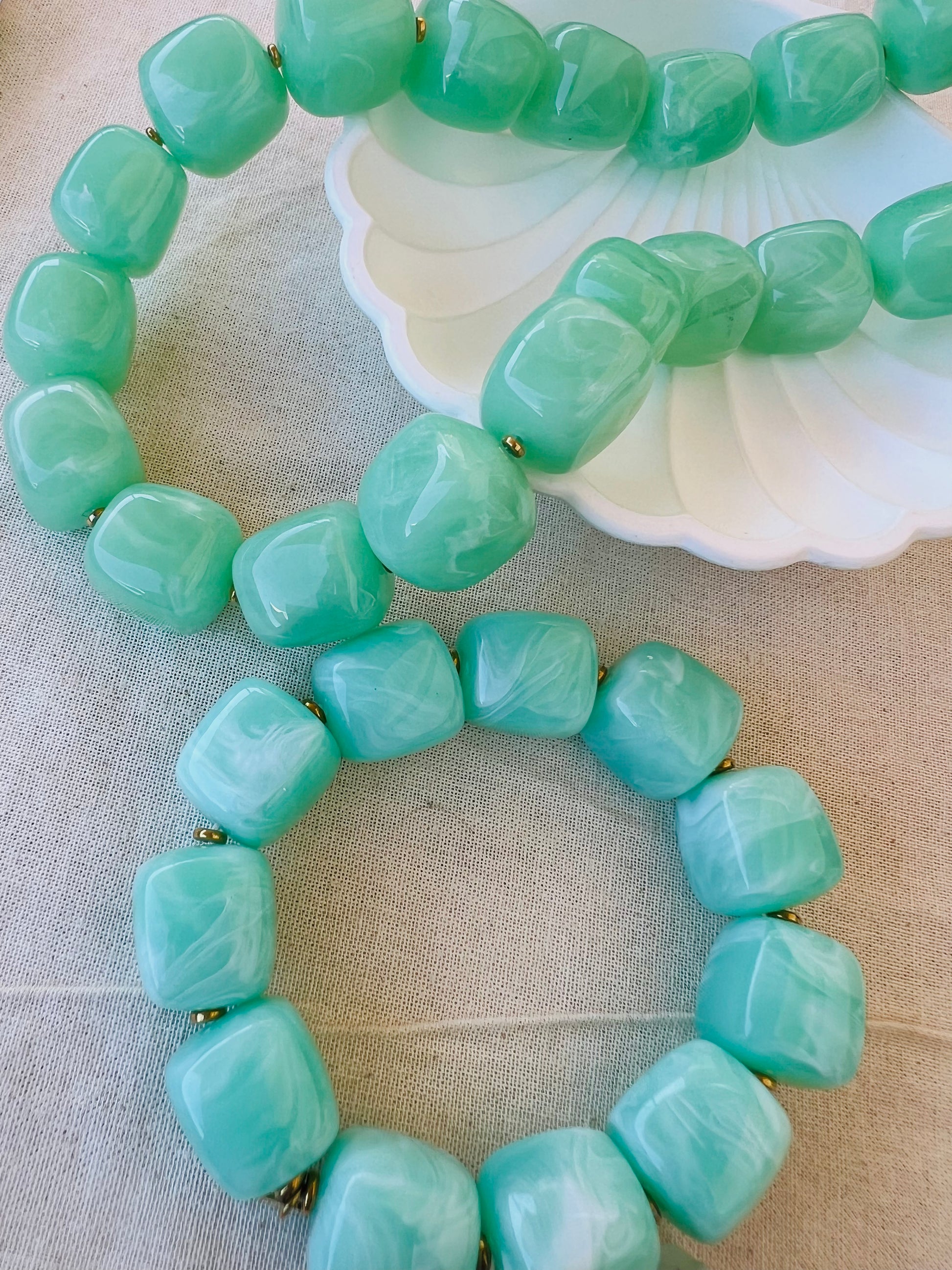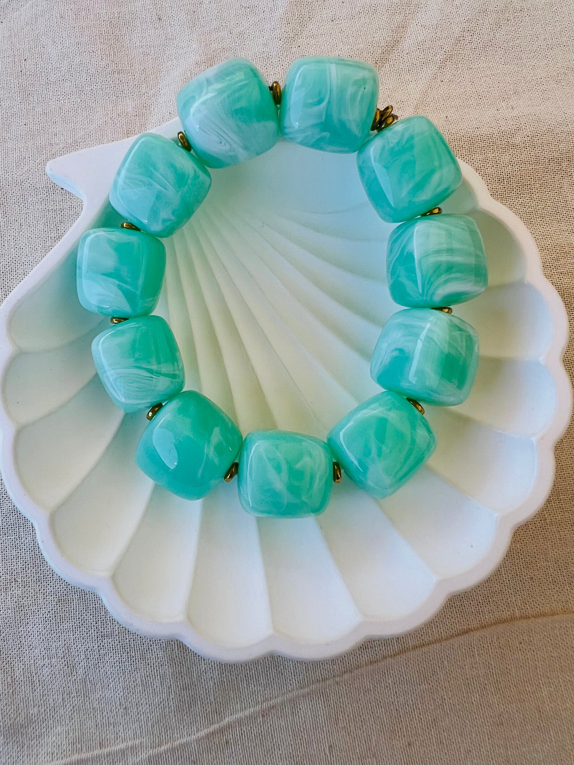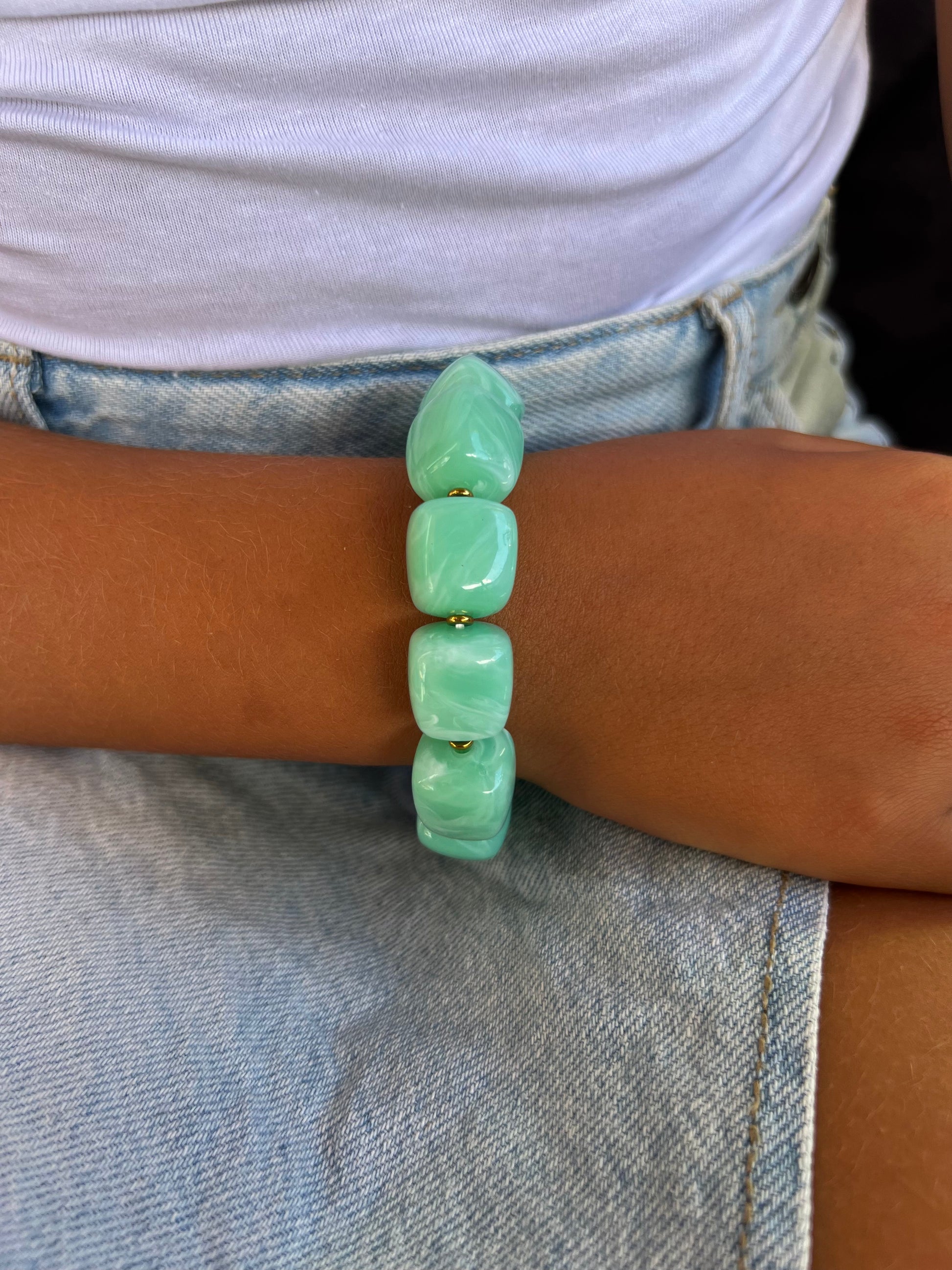✧ Bracelet élastique orné de perles en résine.