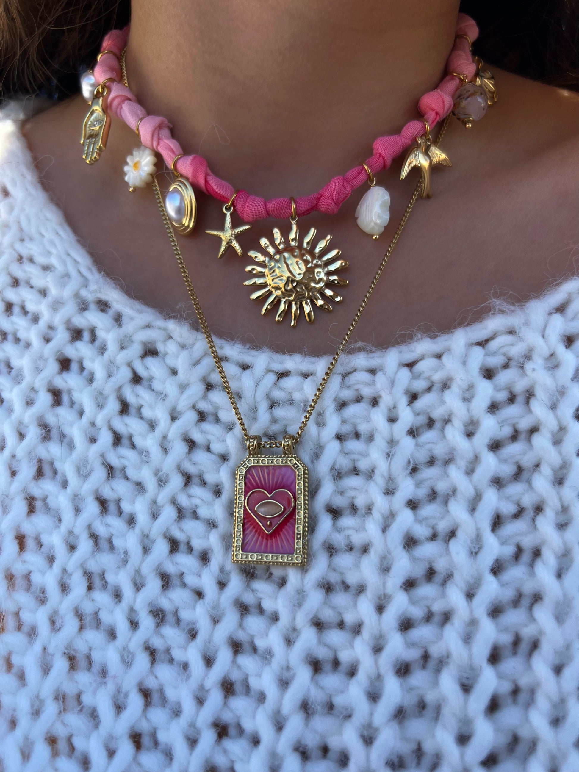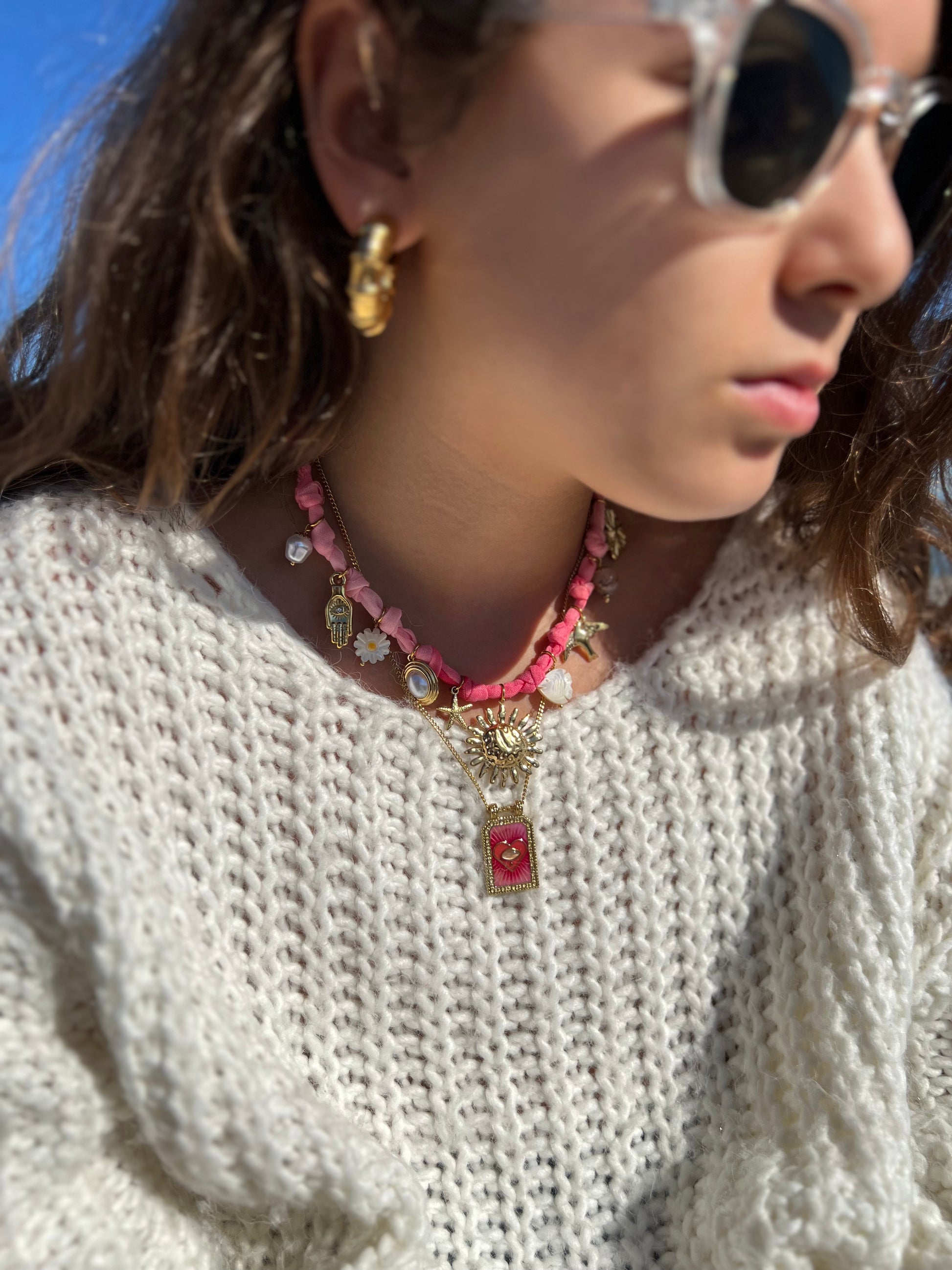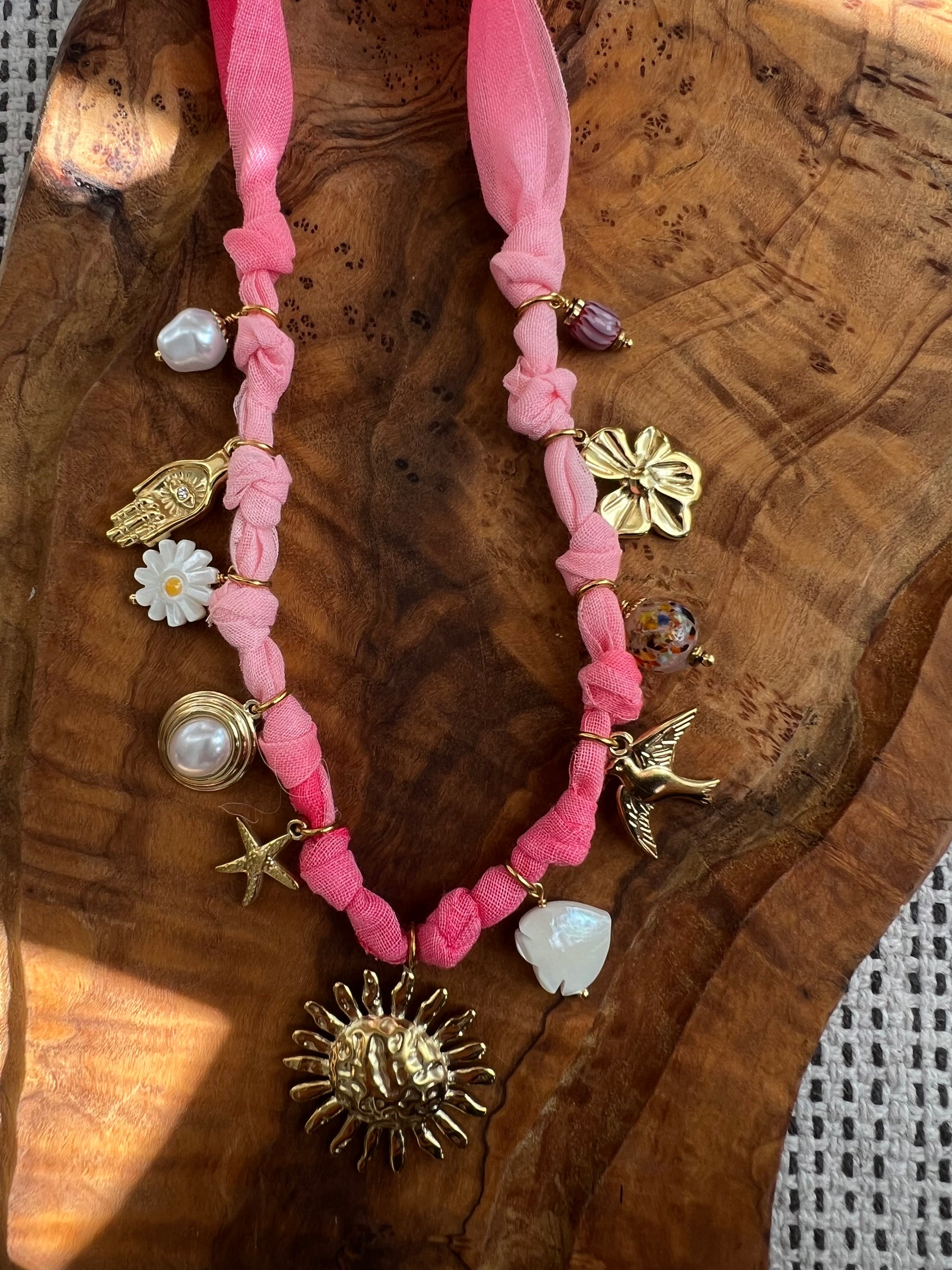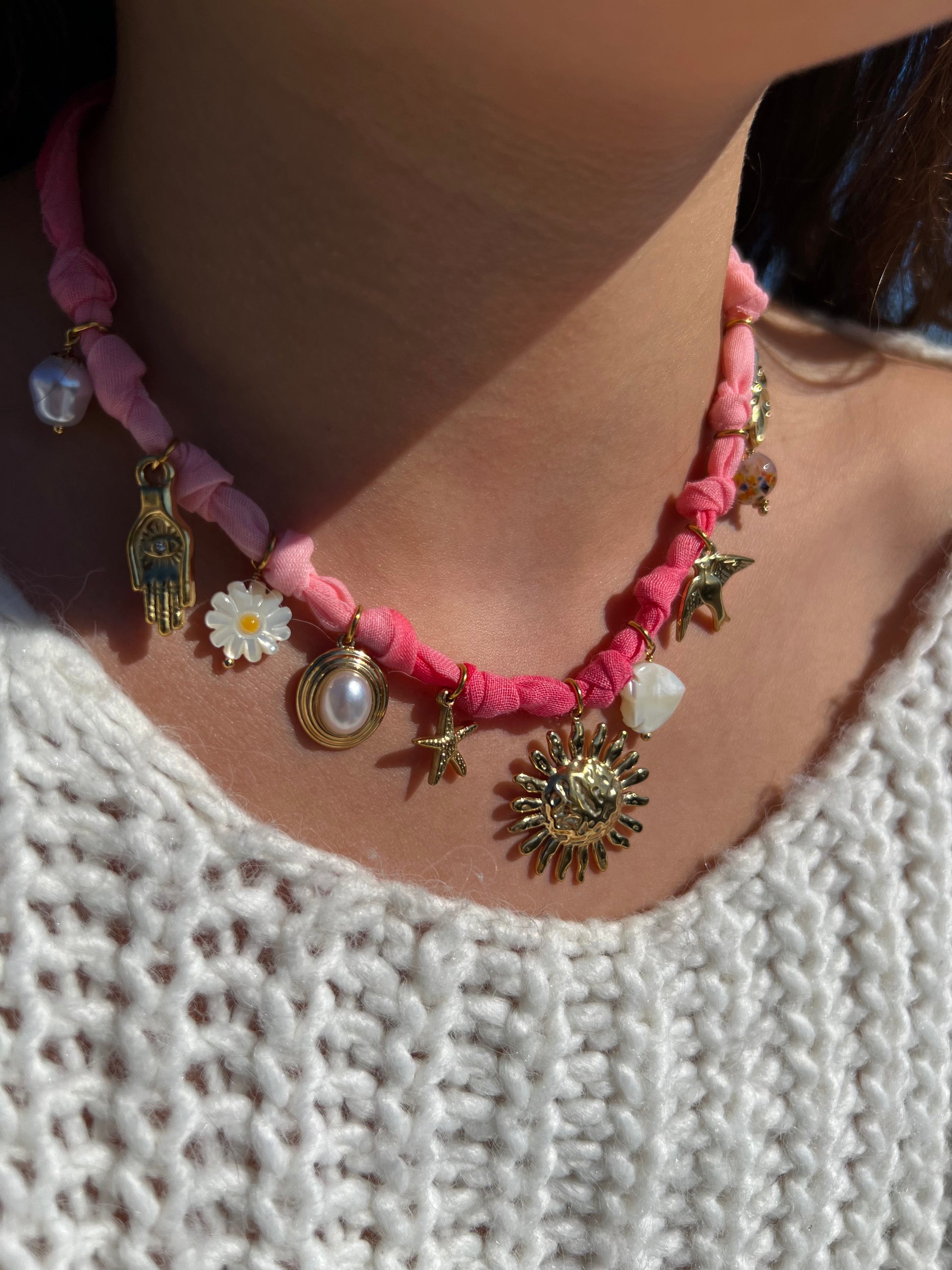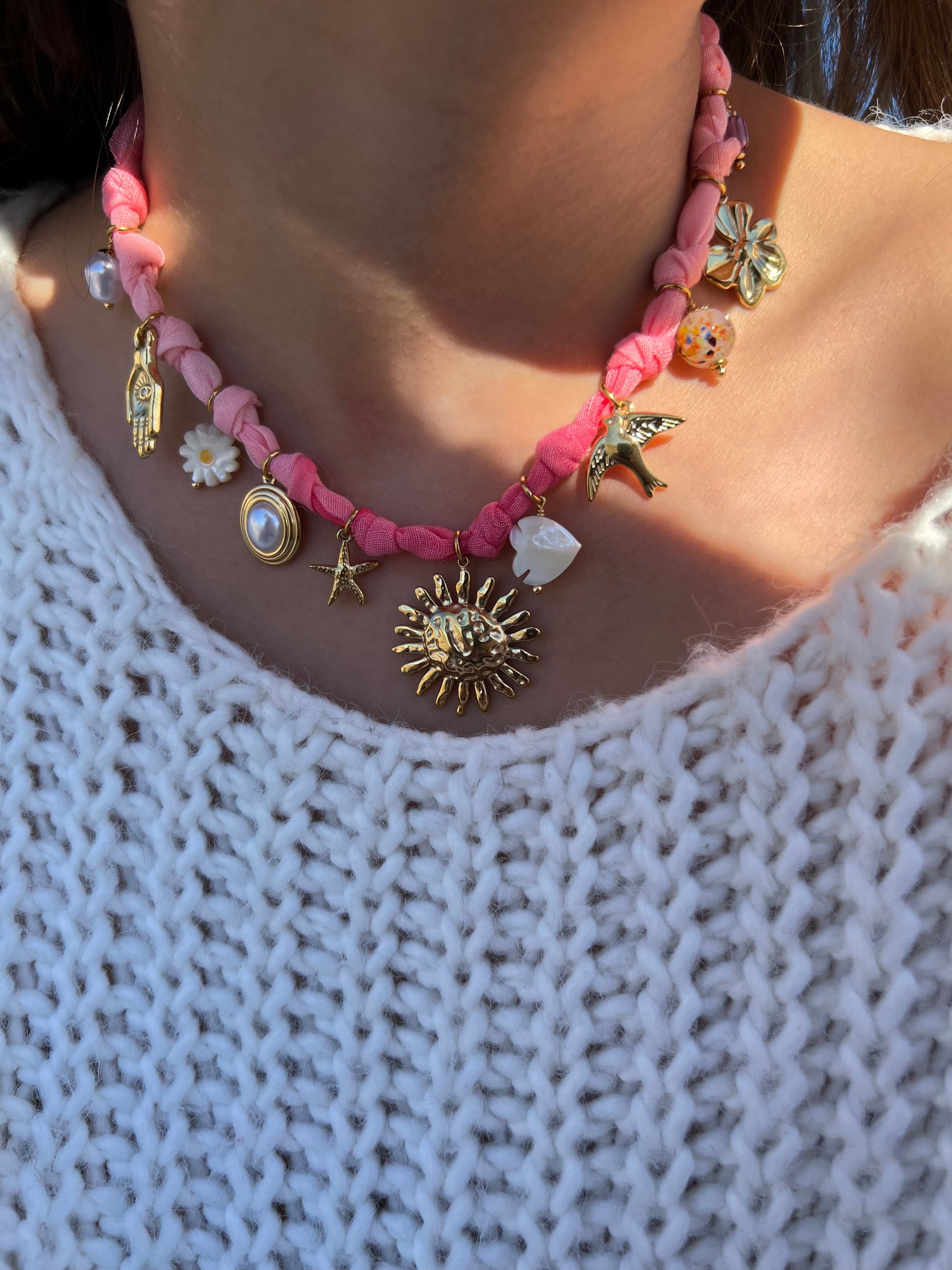 ✧ Collier en tissue tie and die rose multipampilles en acier inoxydable.