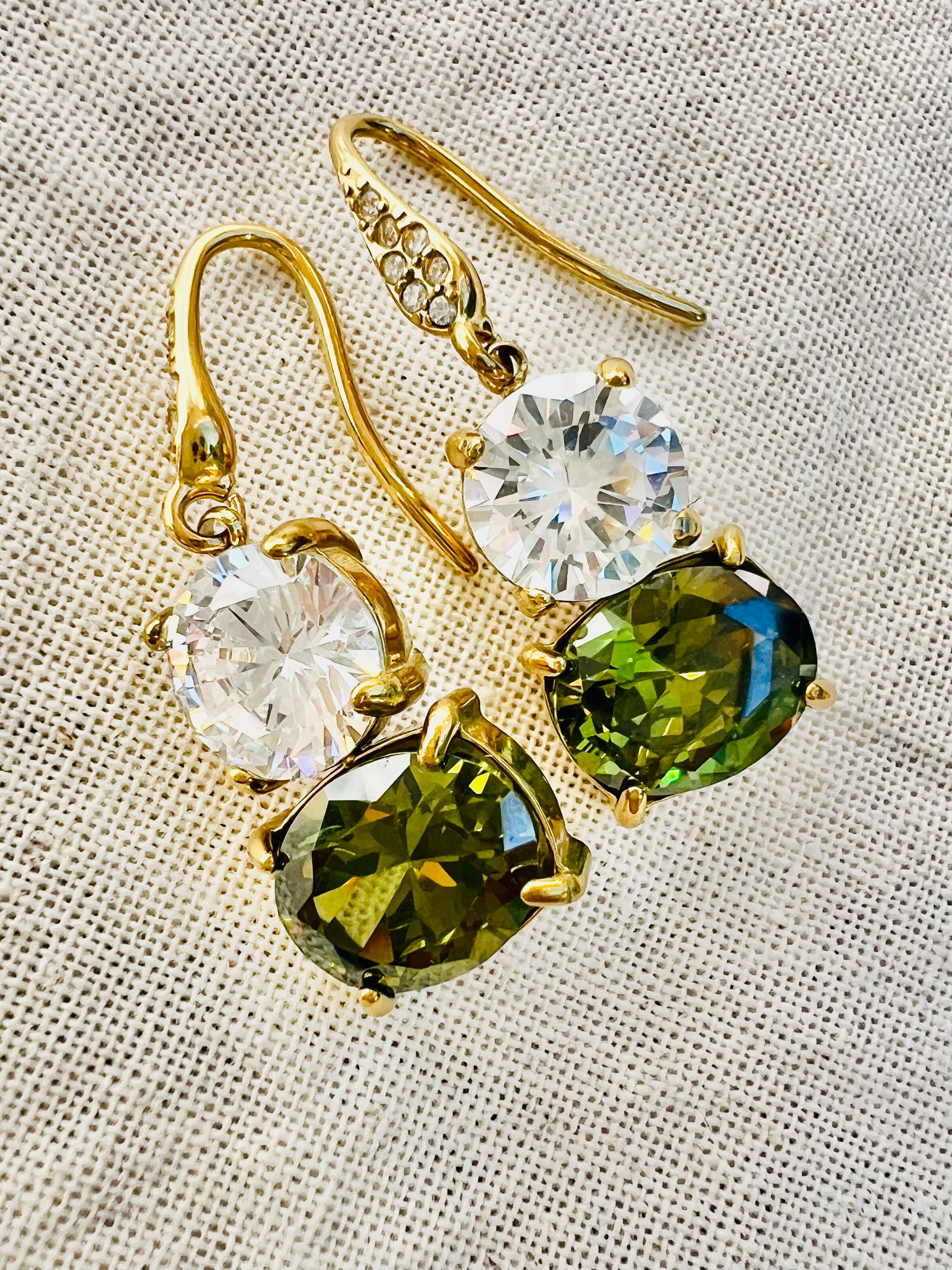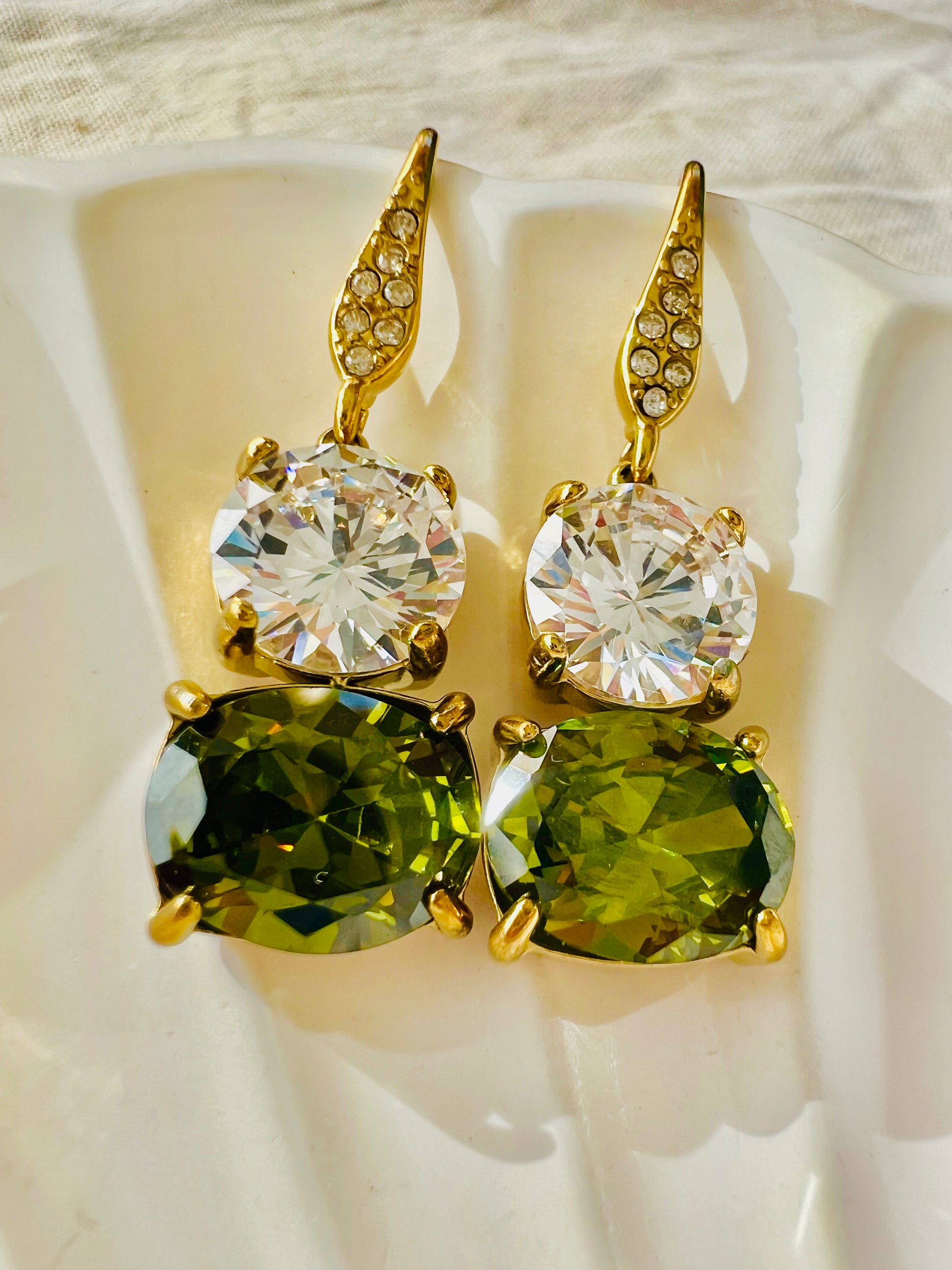 ✧ Boucles dorées pendantes en acier inoxydable doré et cristaux.