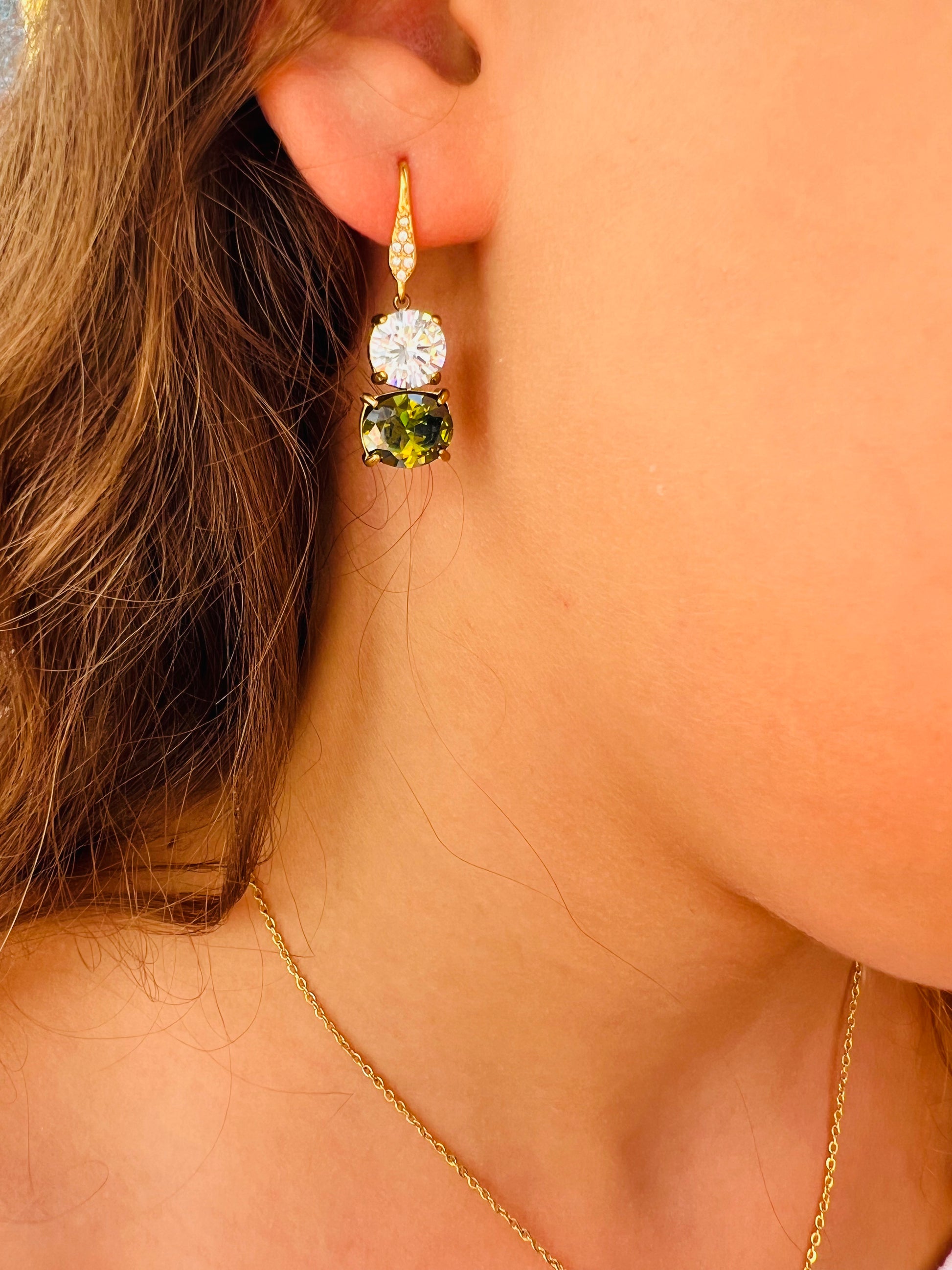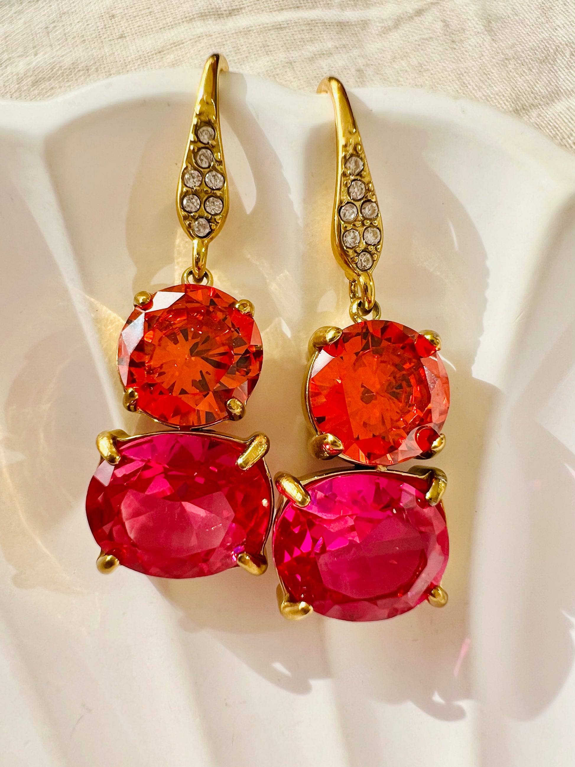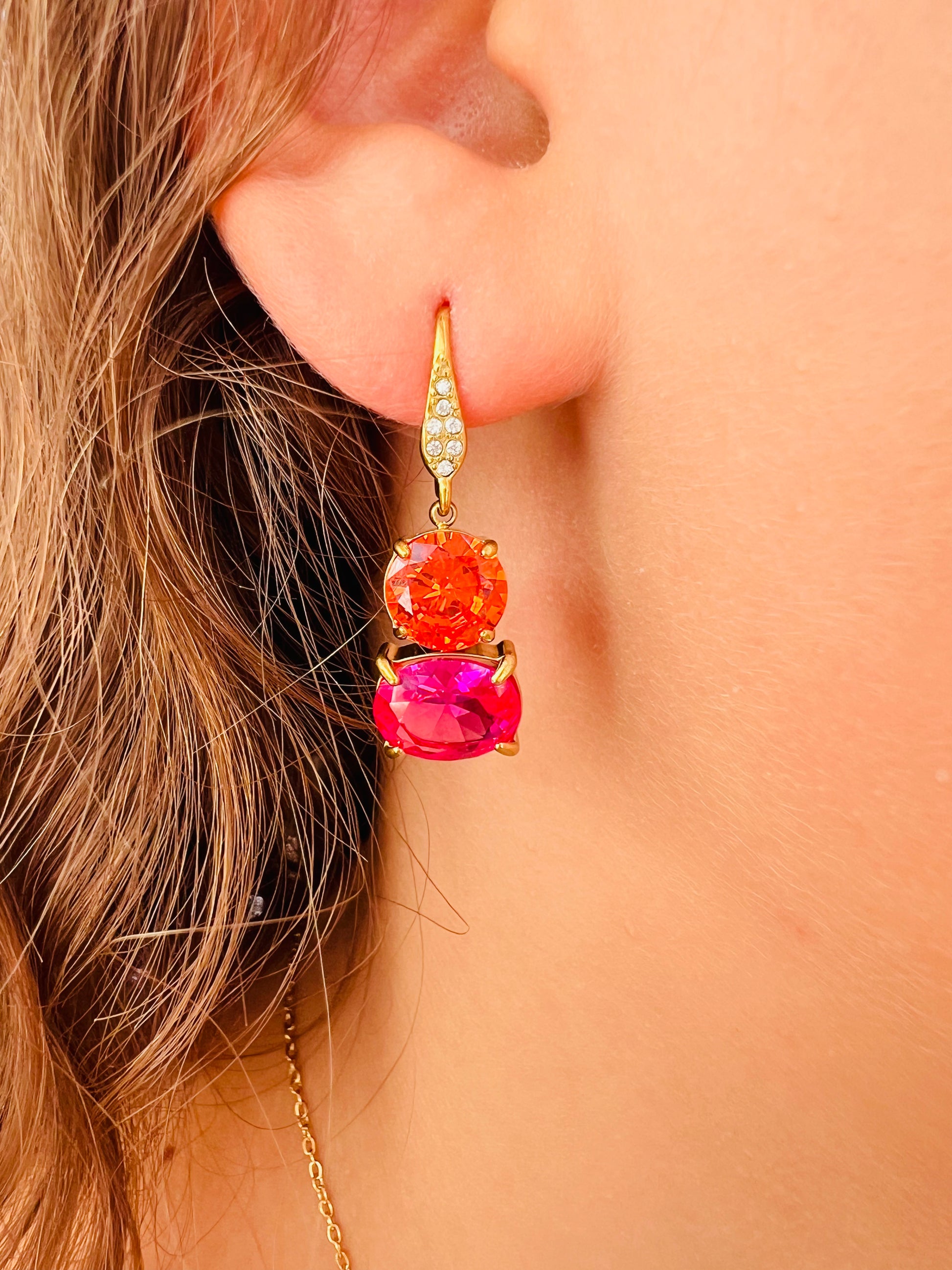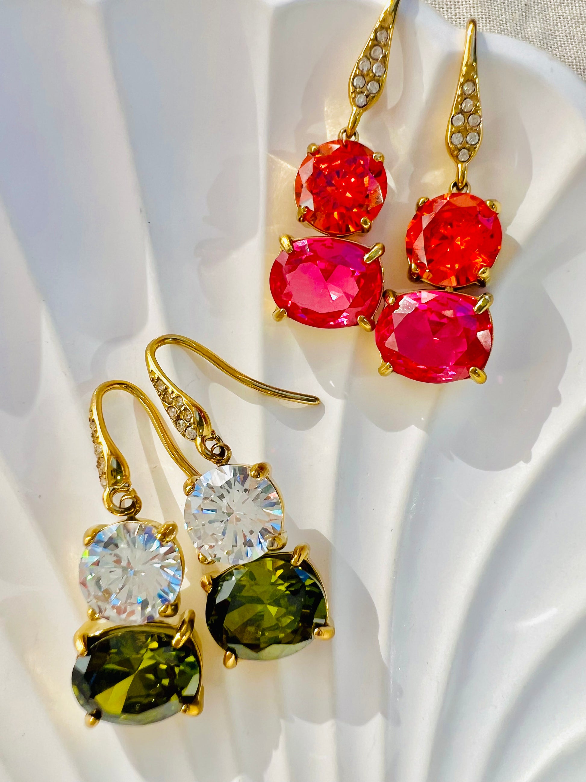 Les boucles Filippa sont un véritable concentré de glamour. Serties de cristaux colorés scintillants, elles se déclinent en rose ou en vert pour illuminer vos soirées ✨.