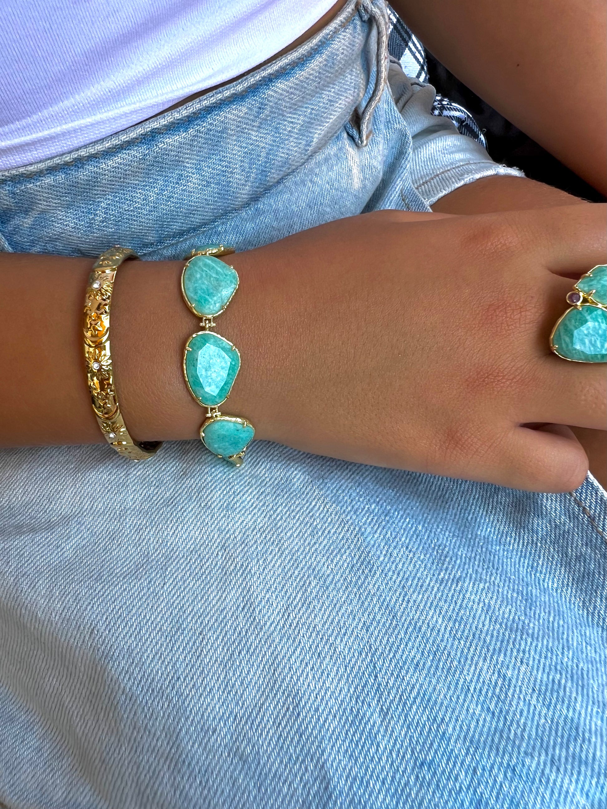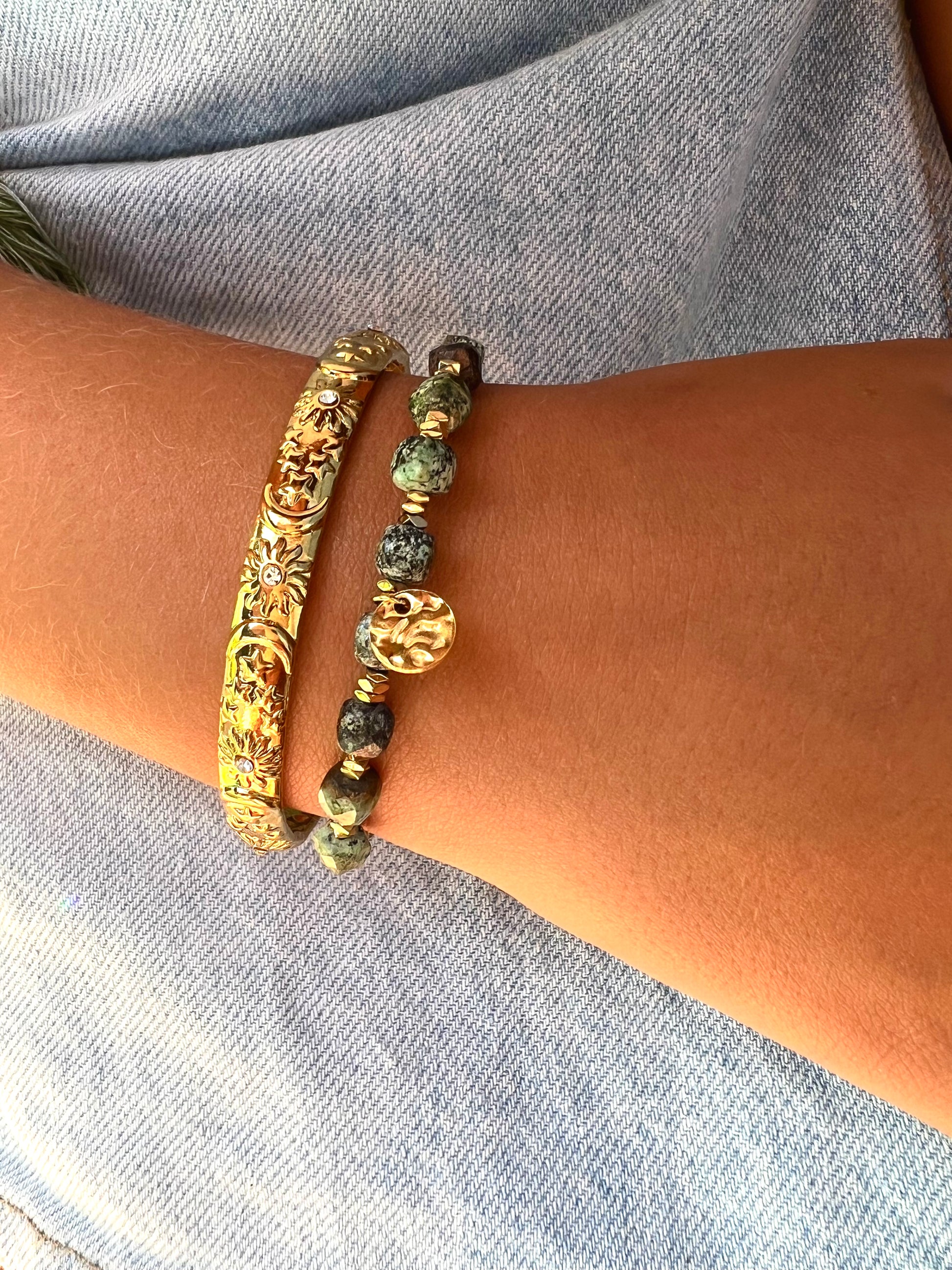 ✧ Jonc doré en acier inoxydable et oxyde de zirconium.