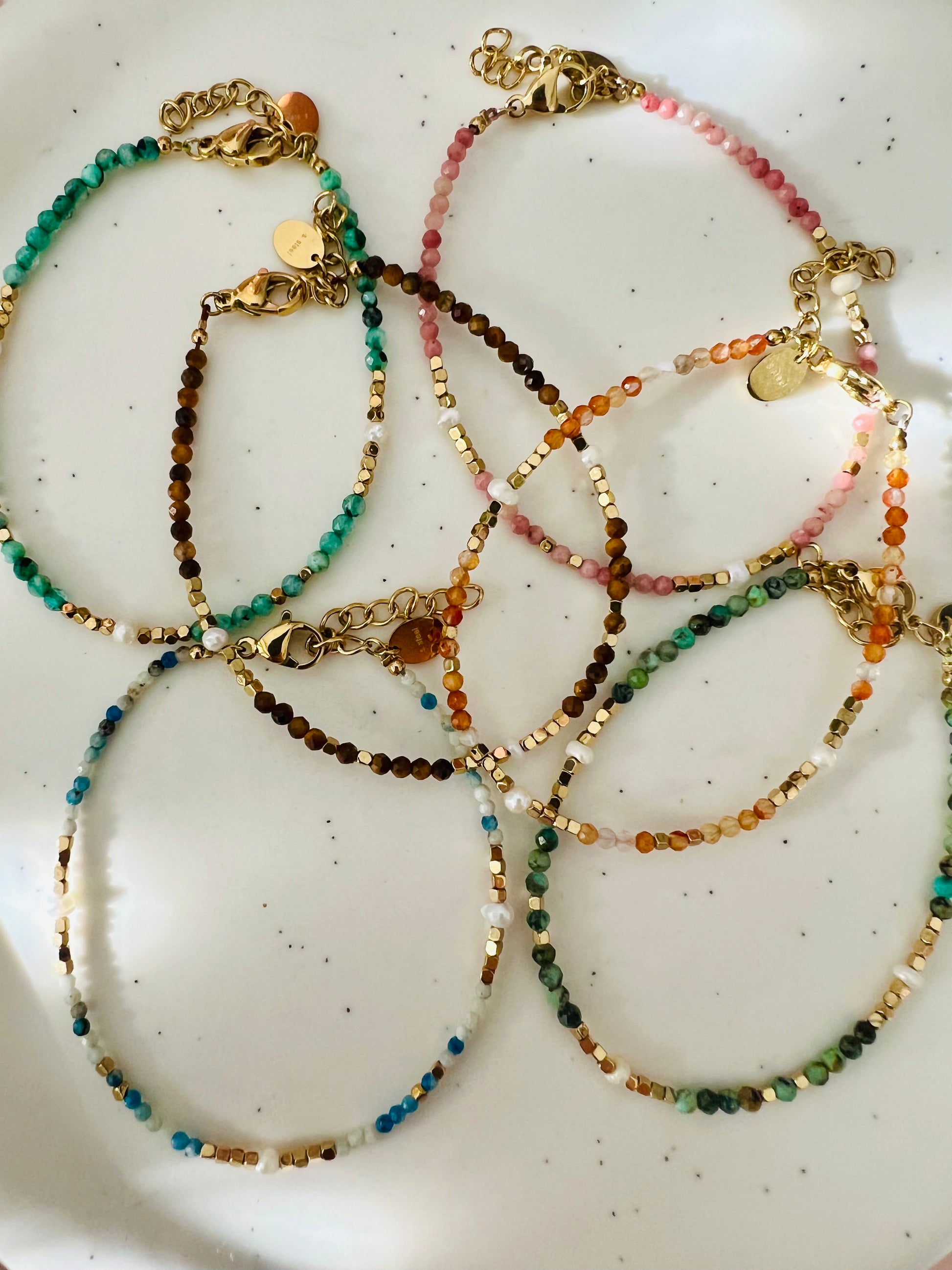 ✨ Élégant et raffiné, le Bracelet Georgina marie avec harmonie des perles dorées ✨, des perles d’eau douce 🤍 et de sublimes pierres naturelles 💎. Un bijou intemporel qui sublime toutes les tenues, du quotidien aux occasions spéciales. Disponible en plusieurs pierres aux couleurs et vertus uniques 🌿.