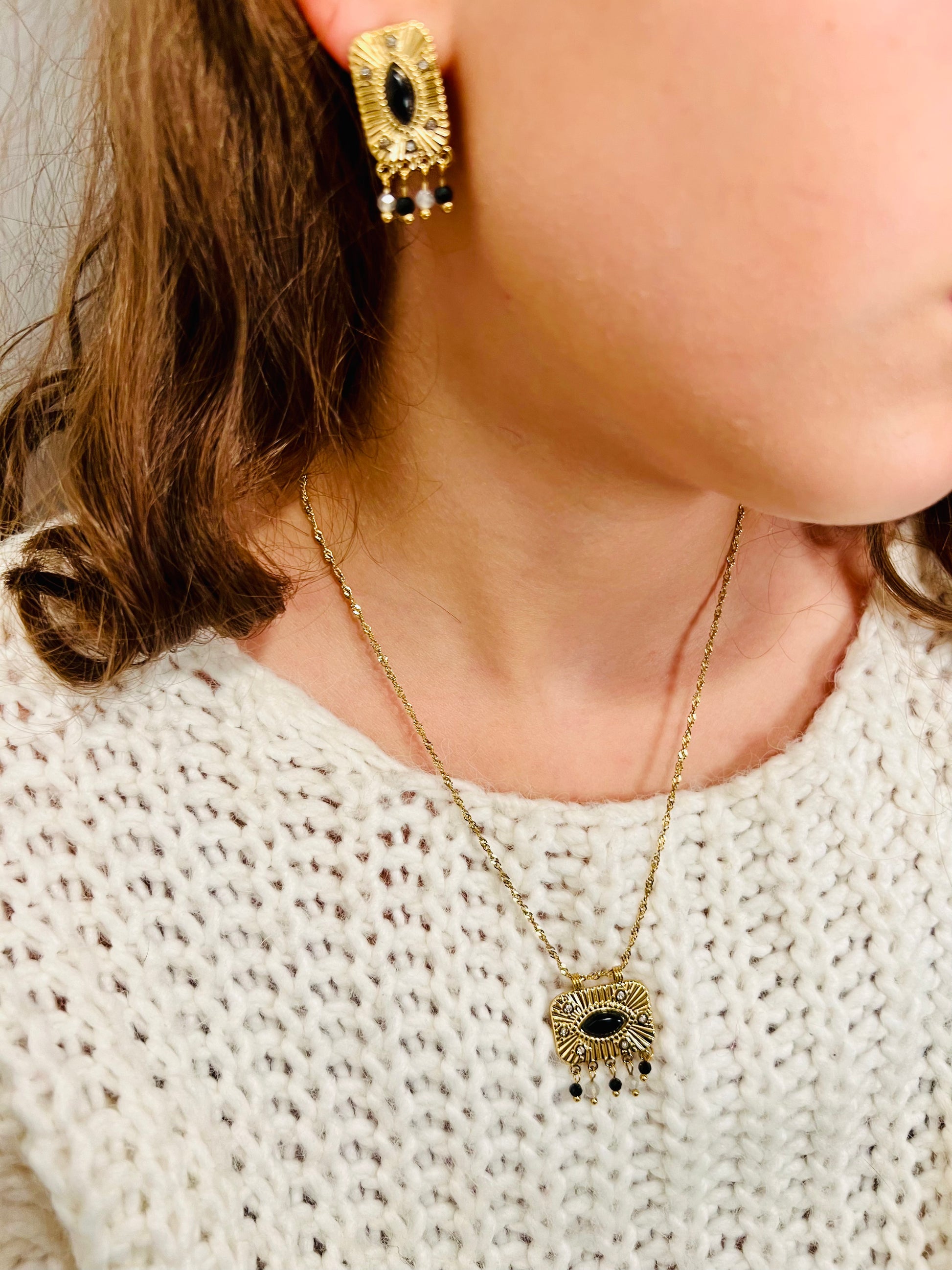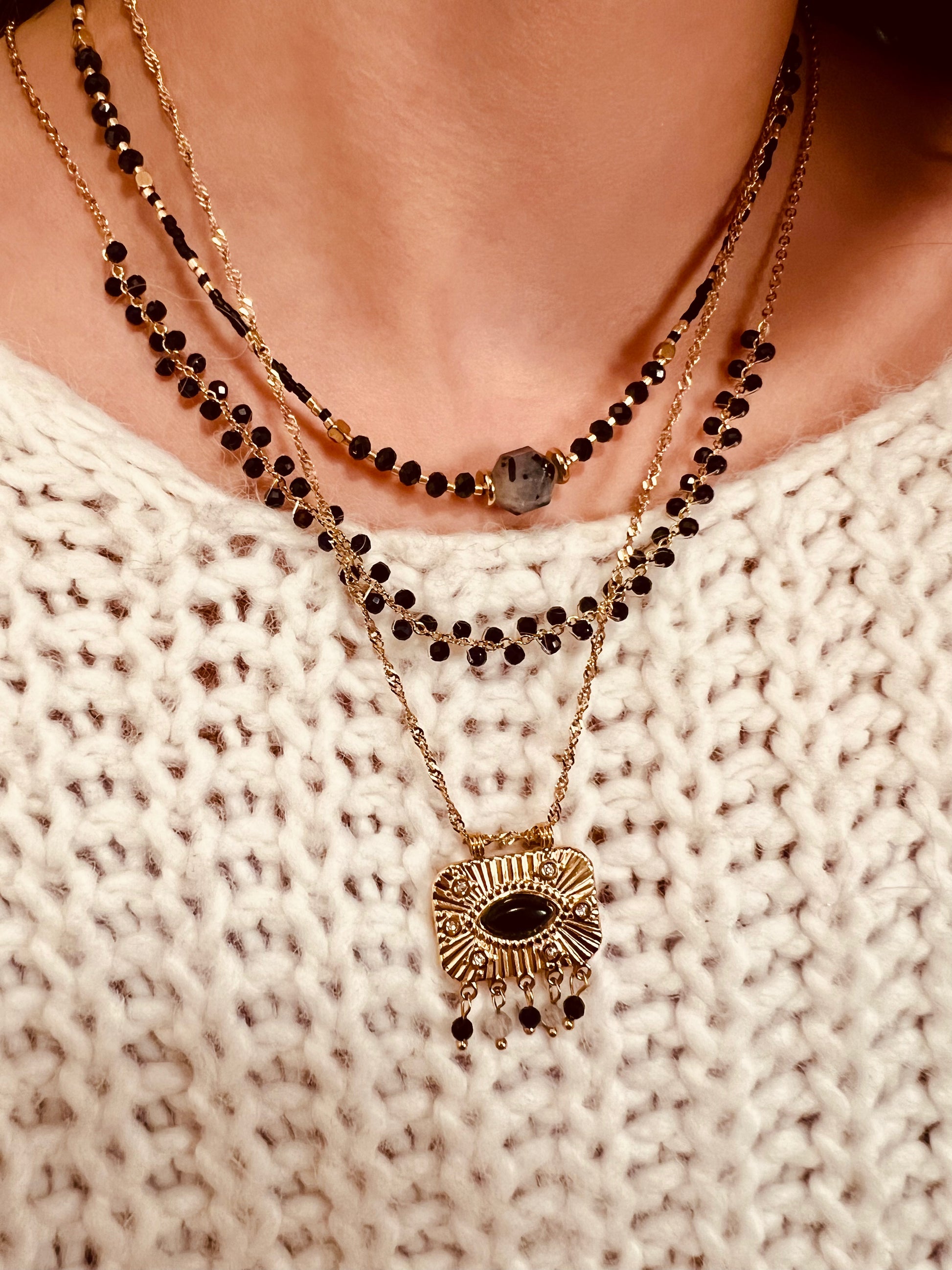 ✧ Existe en jade blanc et agates blanches ou onyx et agates noires.