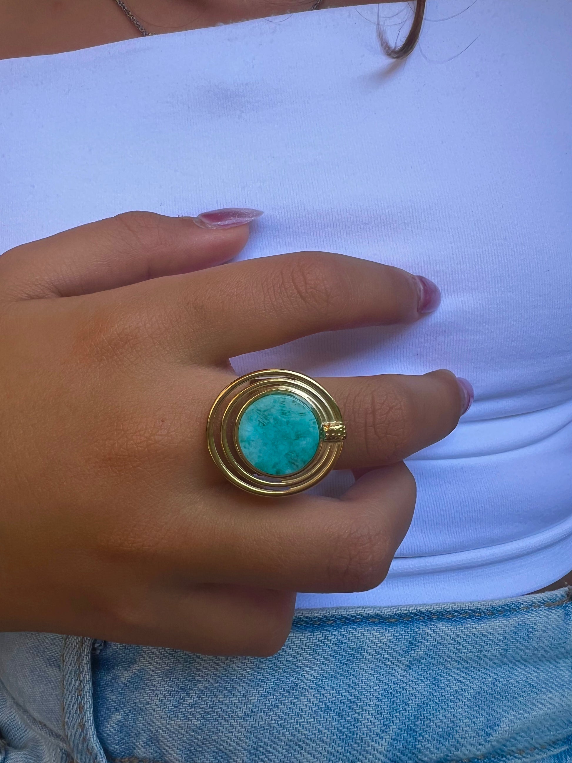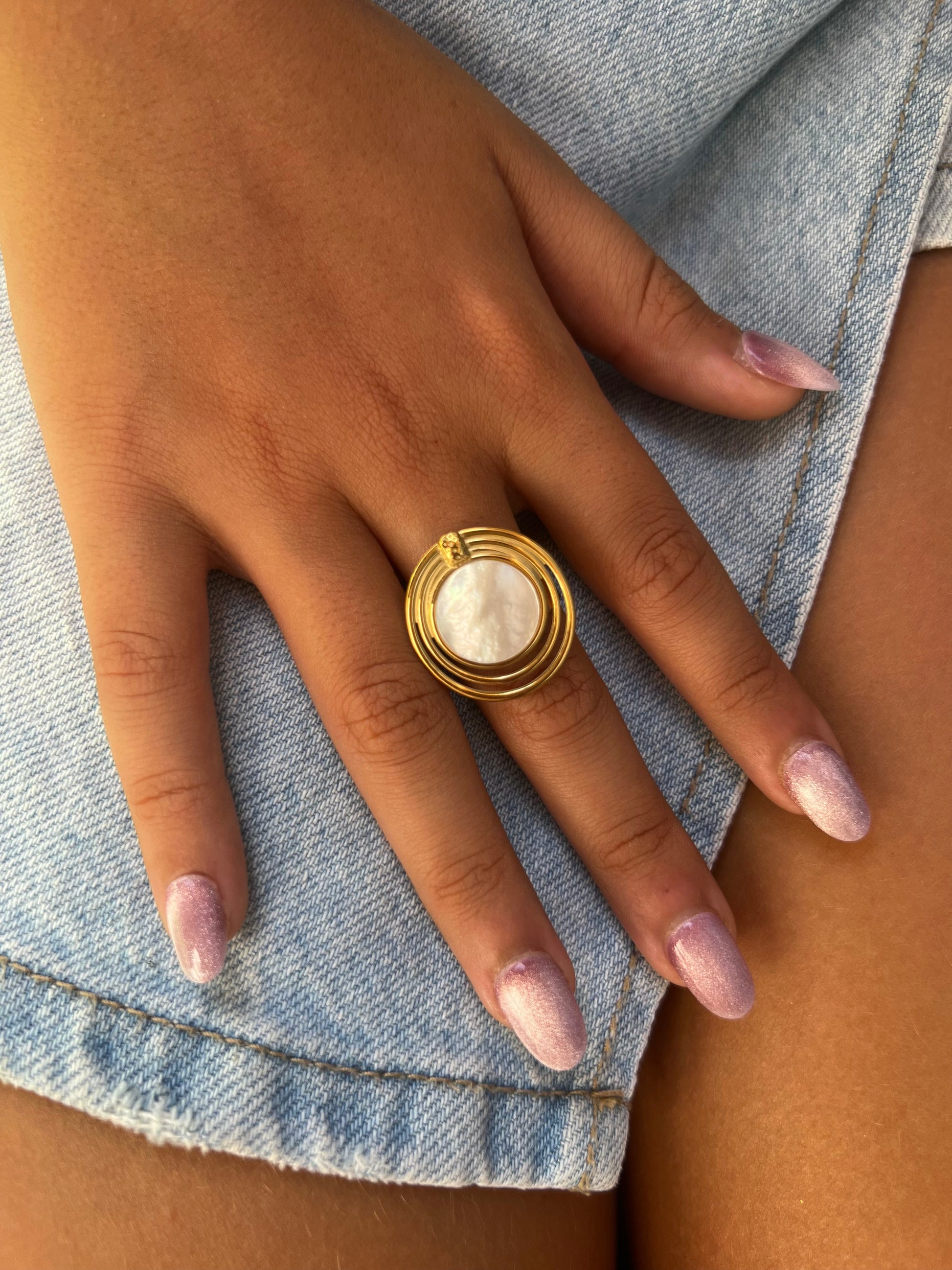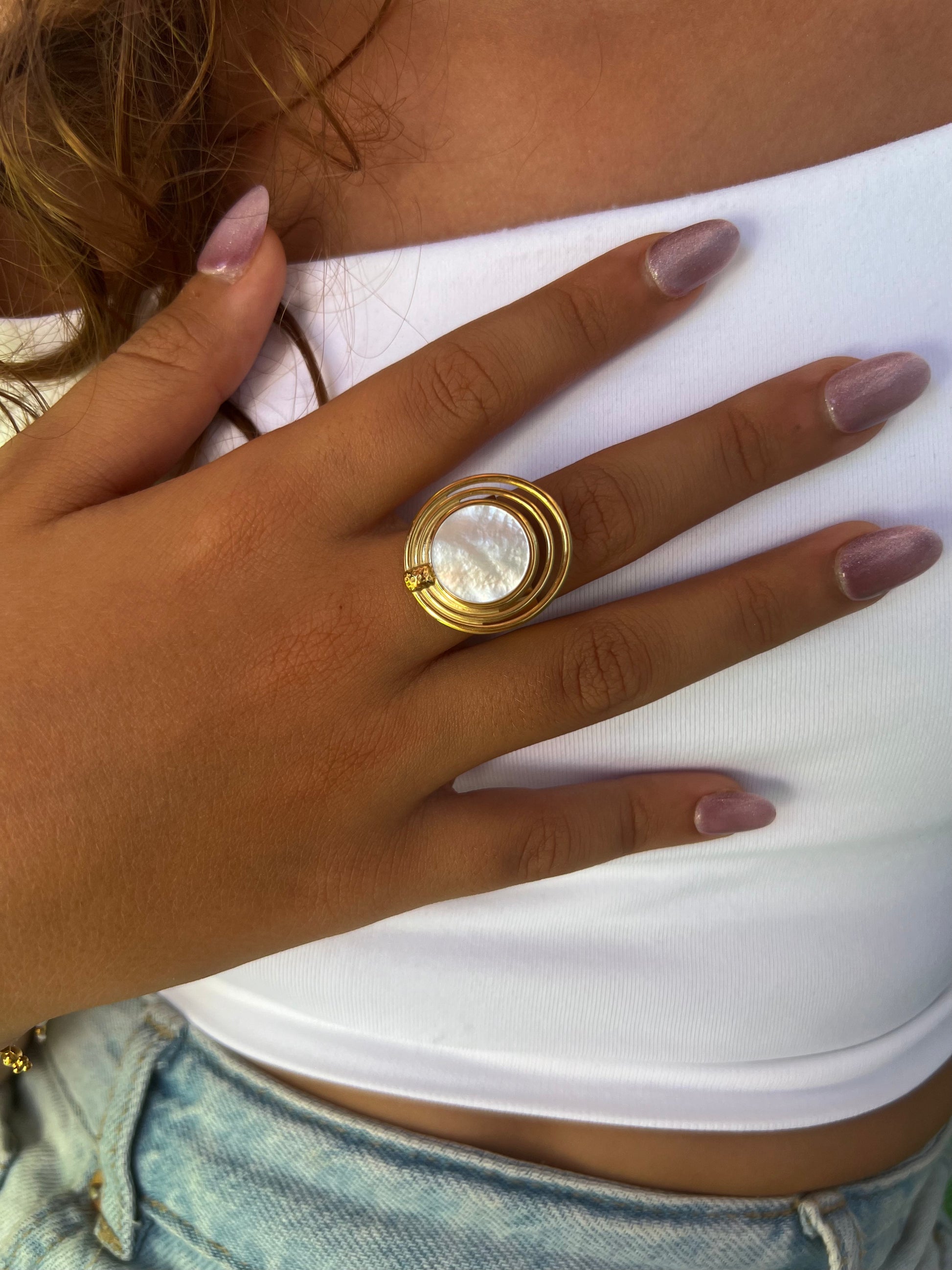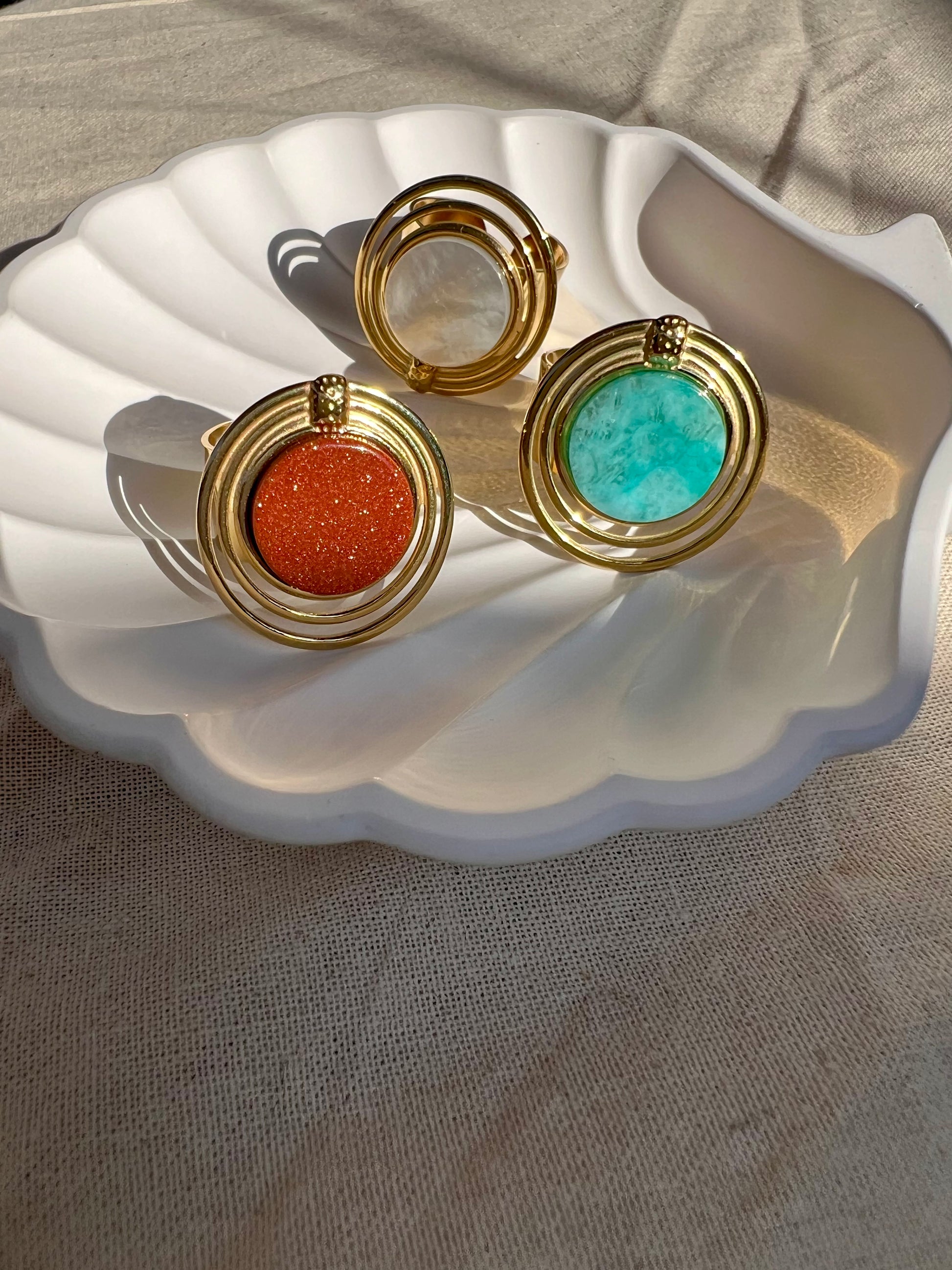 Avec ses trois anneaux superposés et sa pierre naturelle ronde, la bague Ginger mixe modernité et douceur.