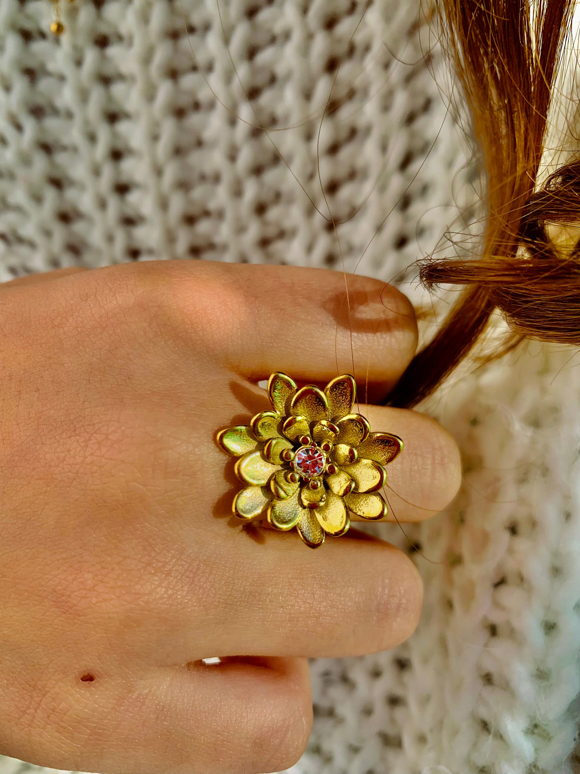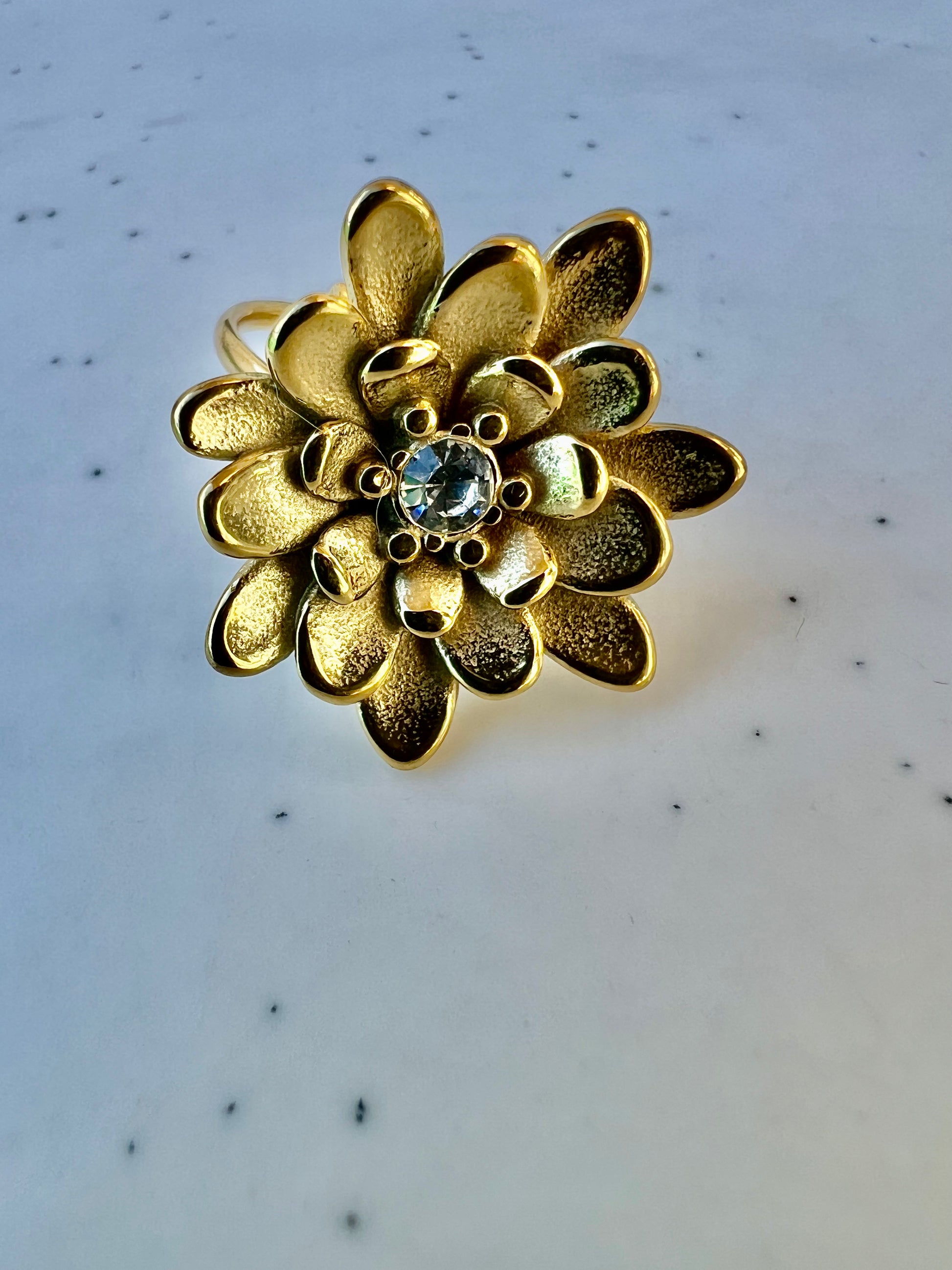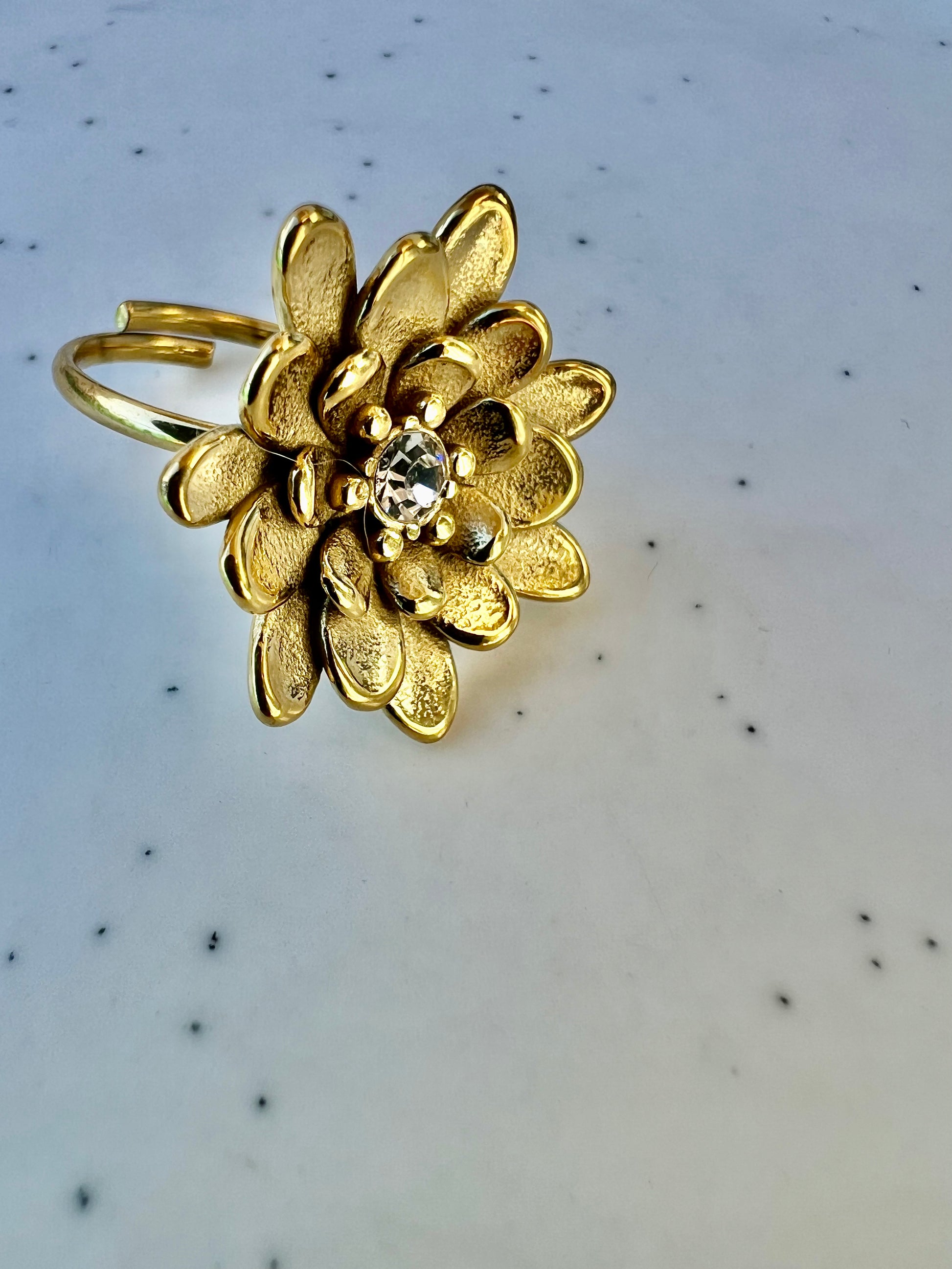 ✧ Bague dorée en acier inoxydable et oxyde de zirconium.