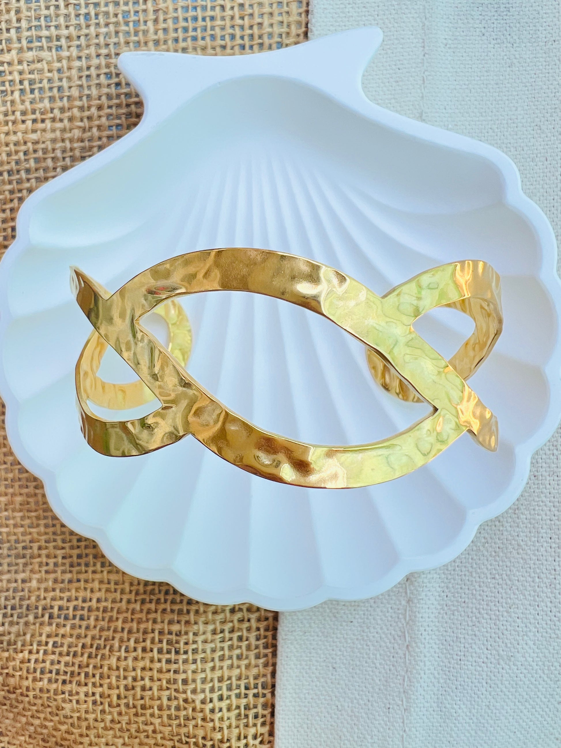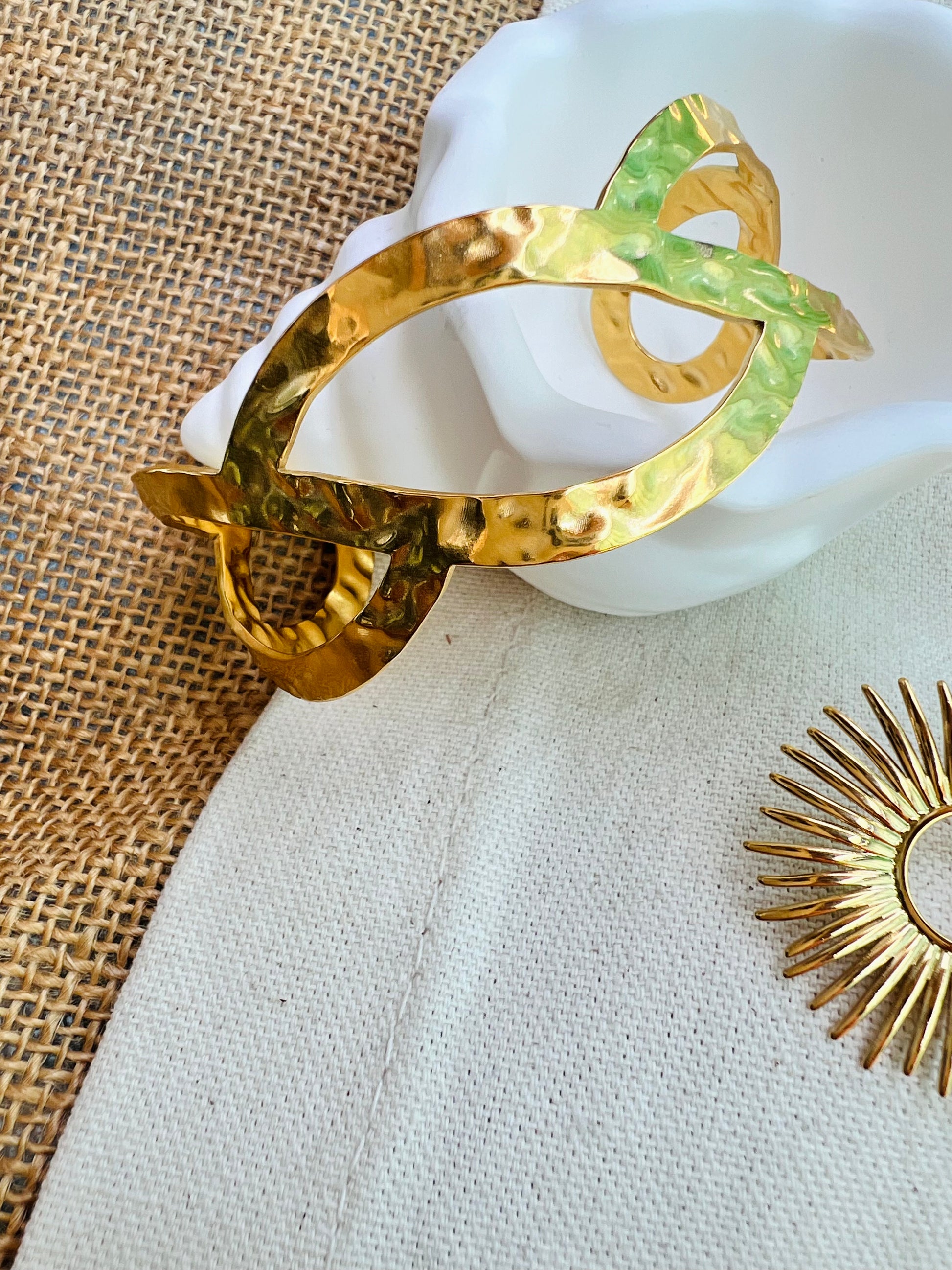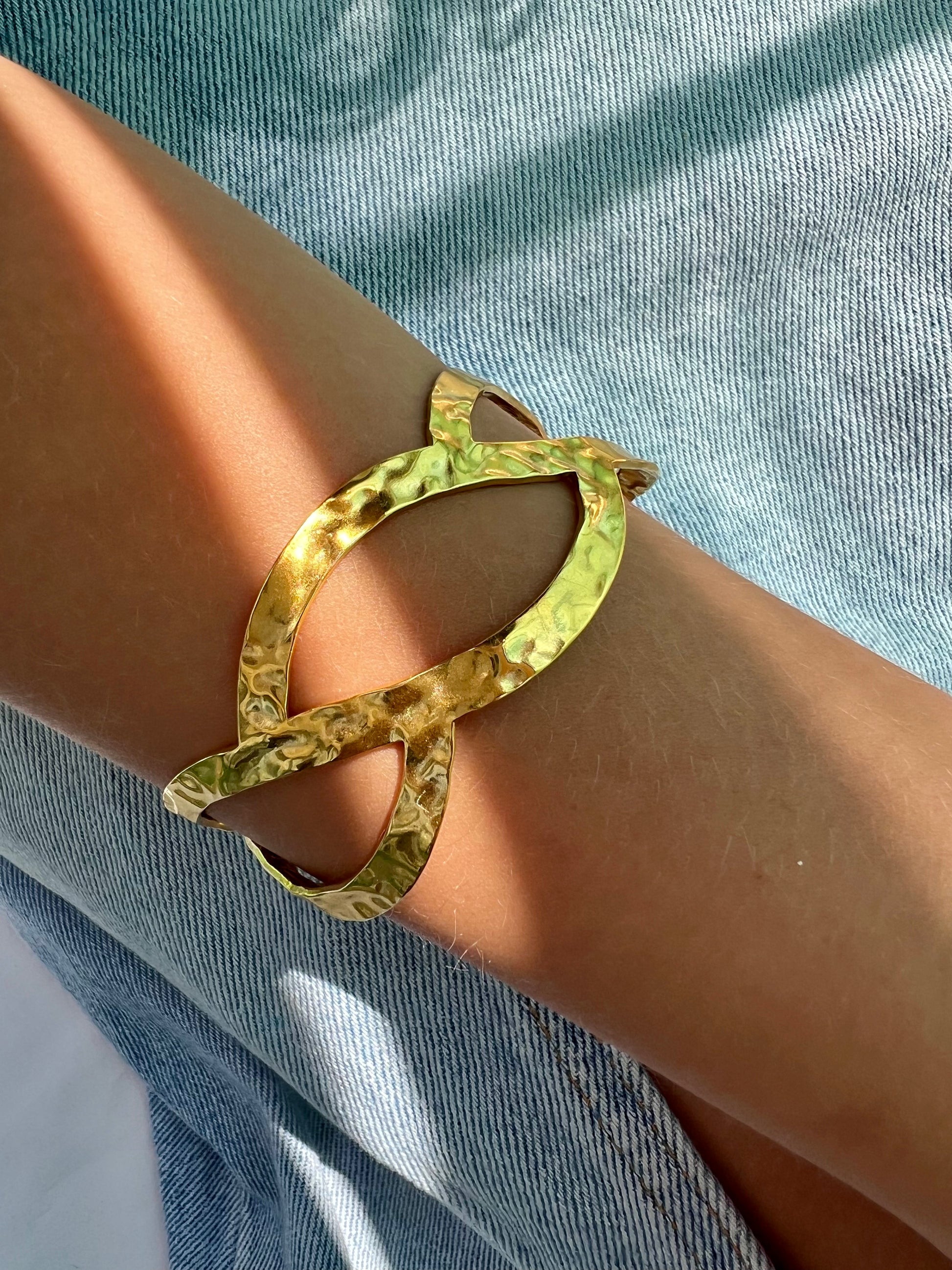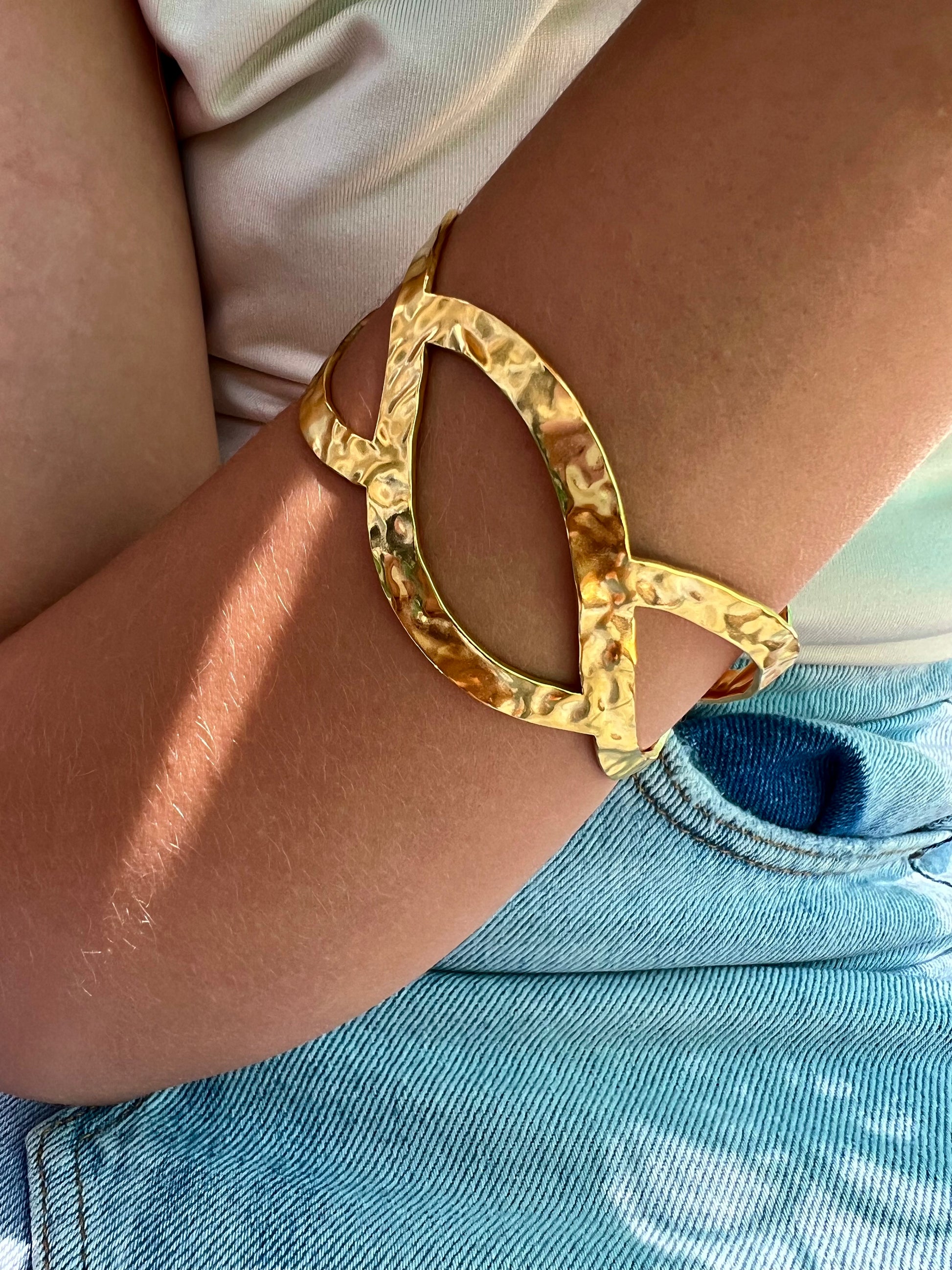 ✧ Bracelet type Jonc/ manchette en acier inoxydable avec un effet martelé.