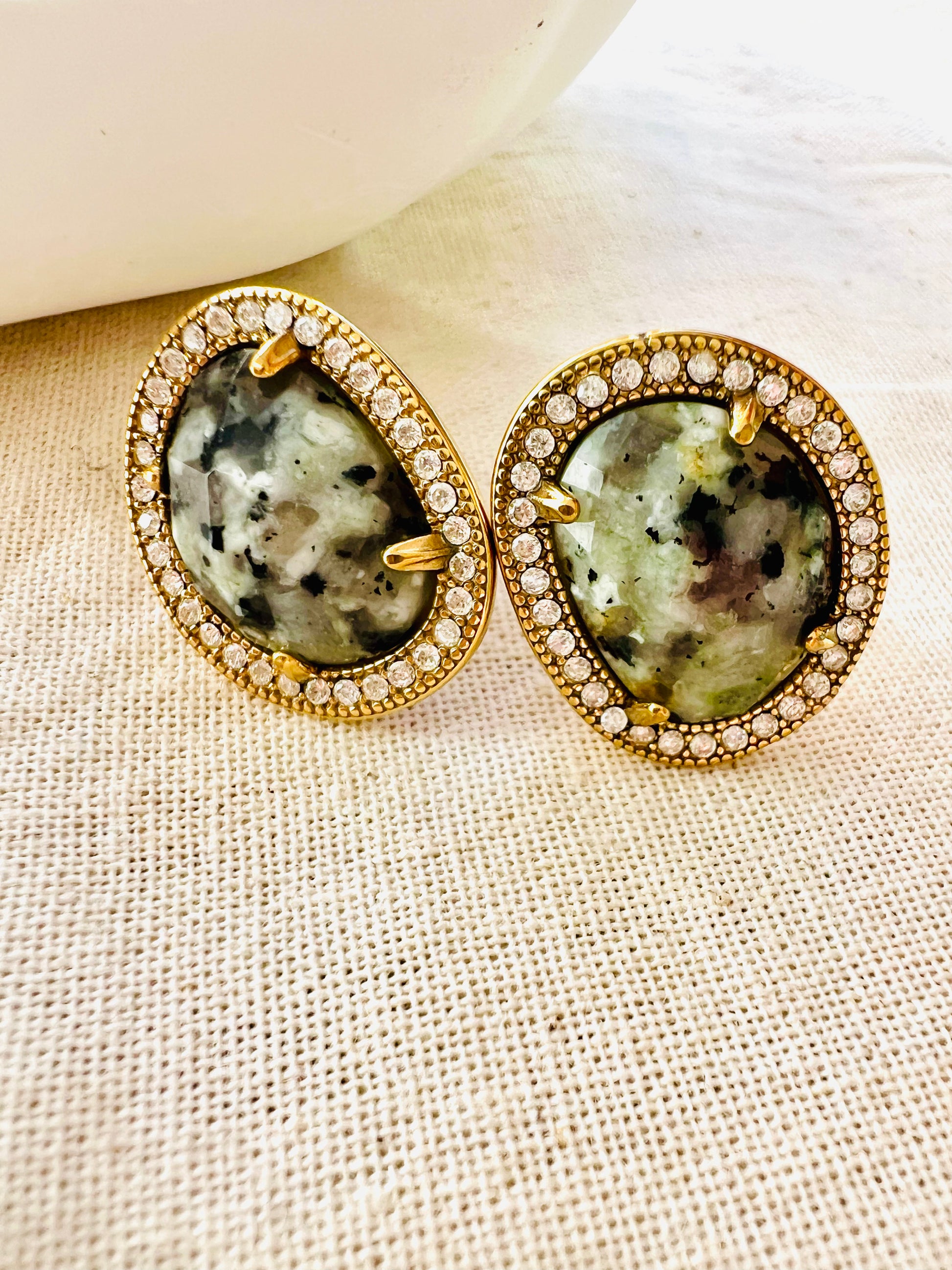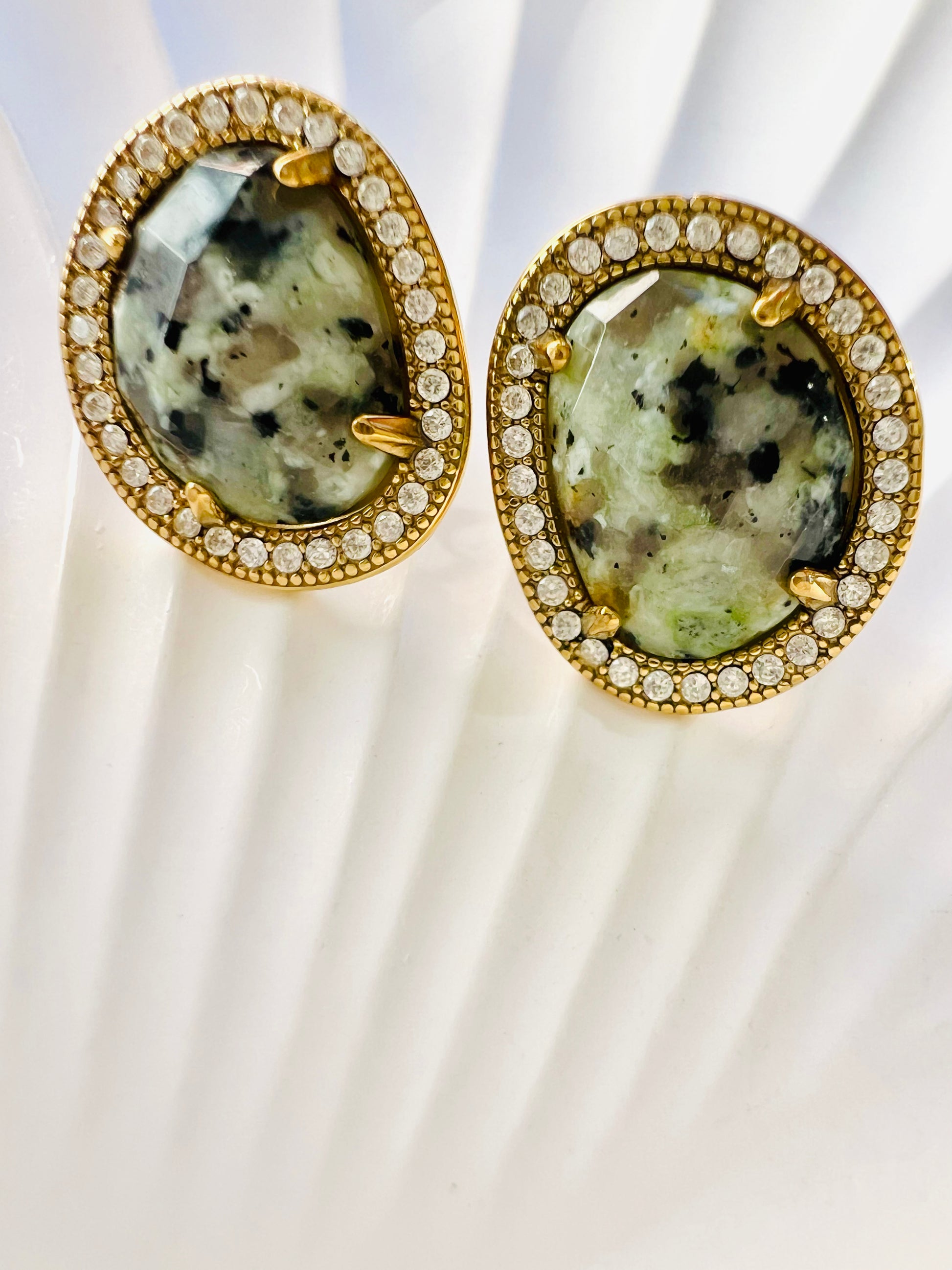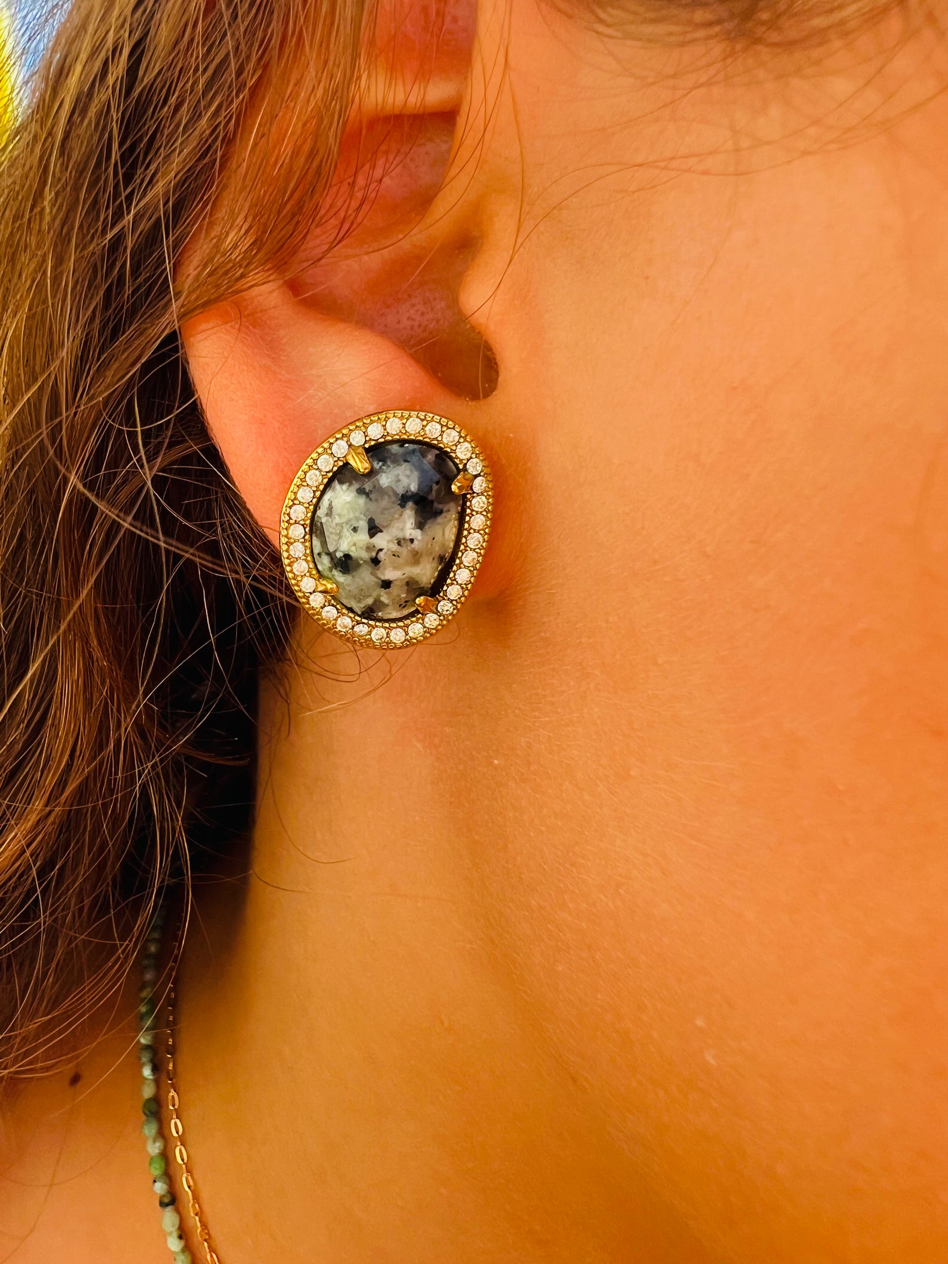 ✧ Boucles dorées en acier inoxydable doré, pierres naturelles et oxyde de zirconium.