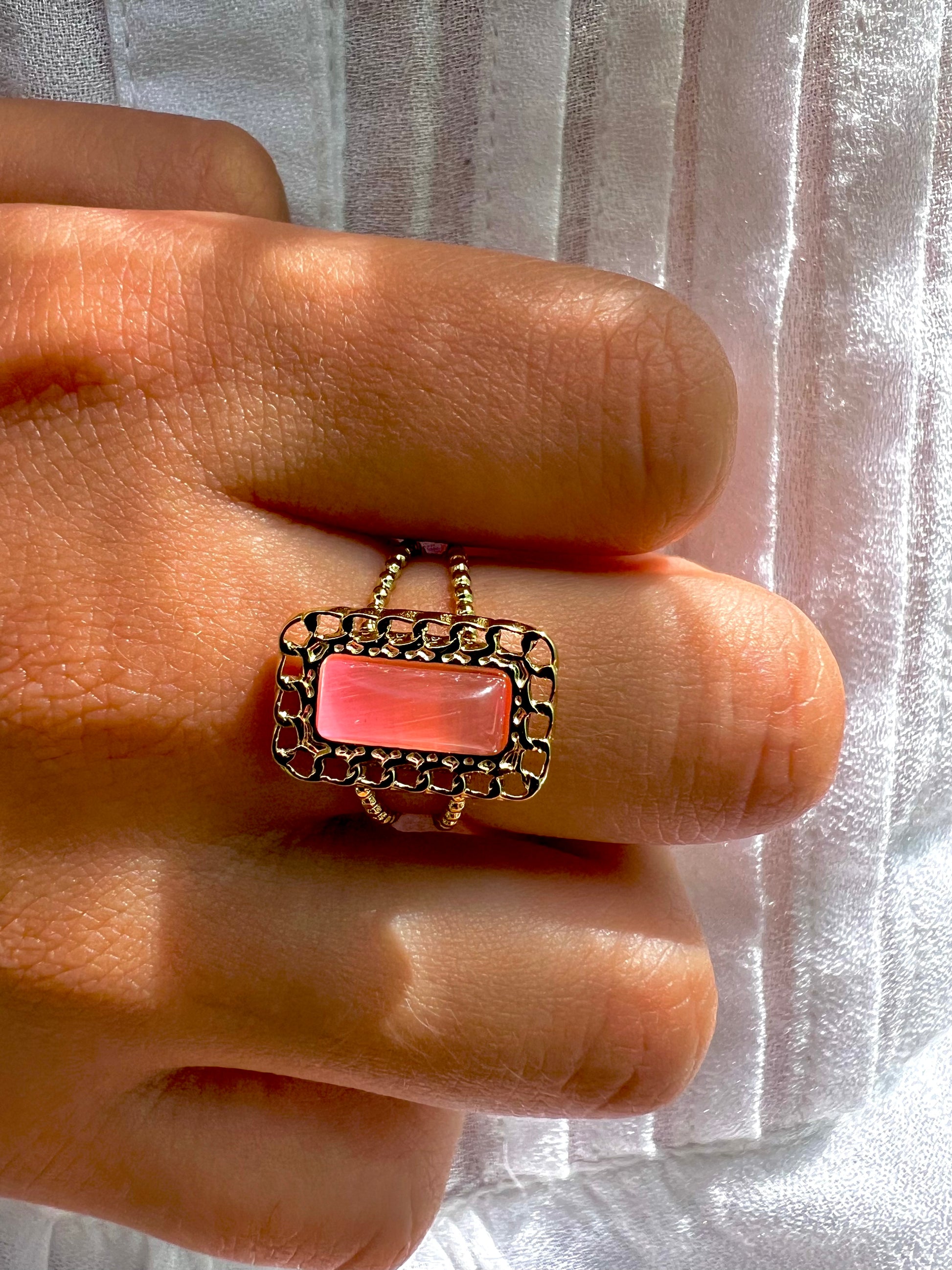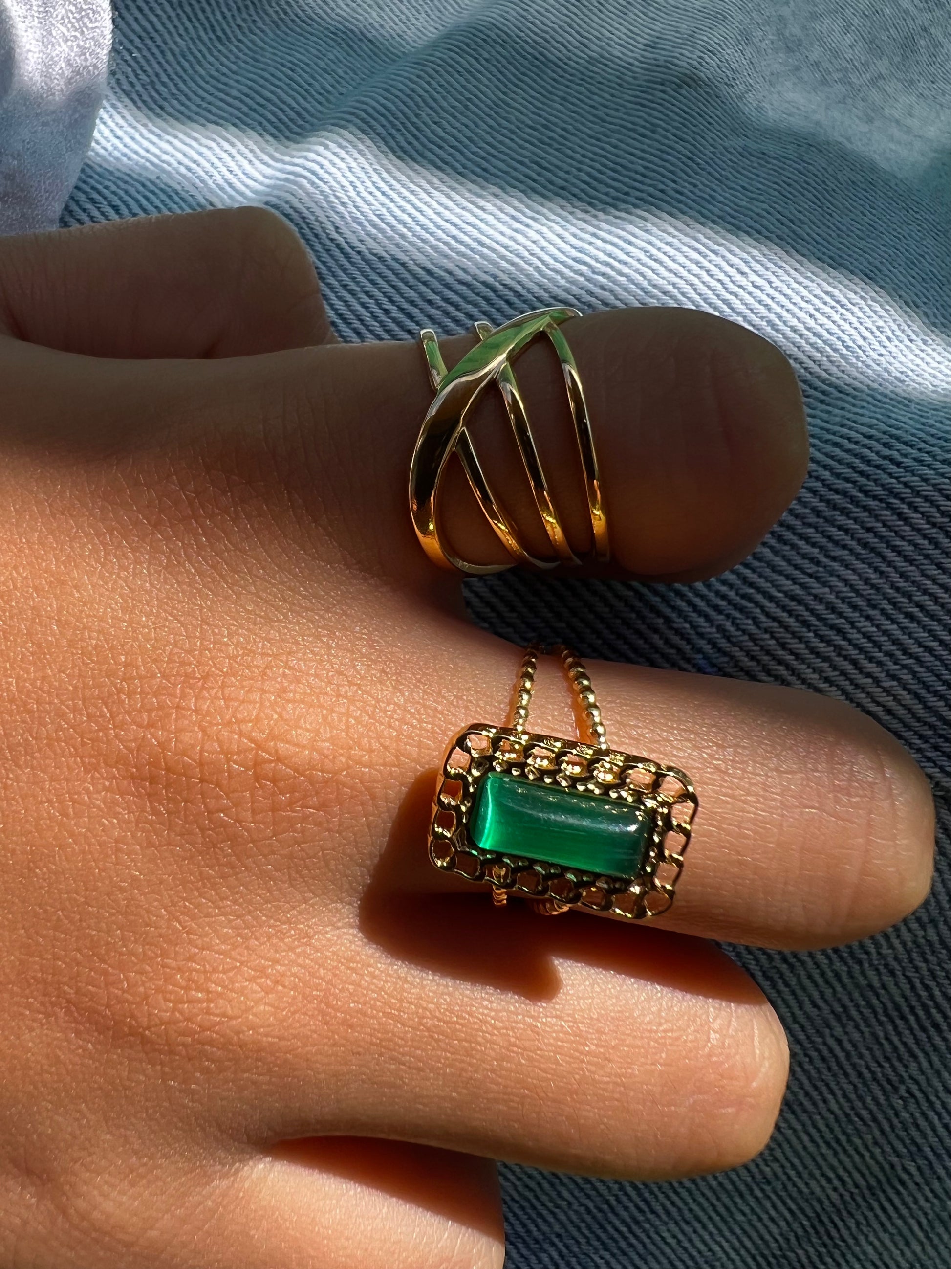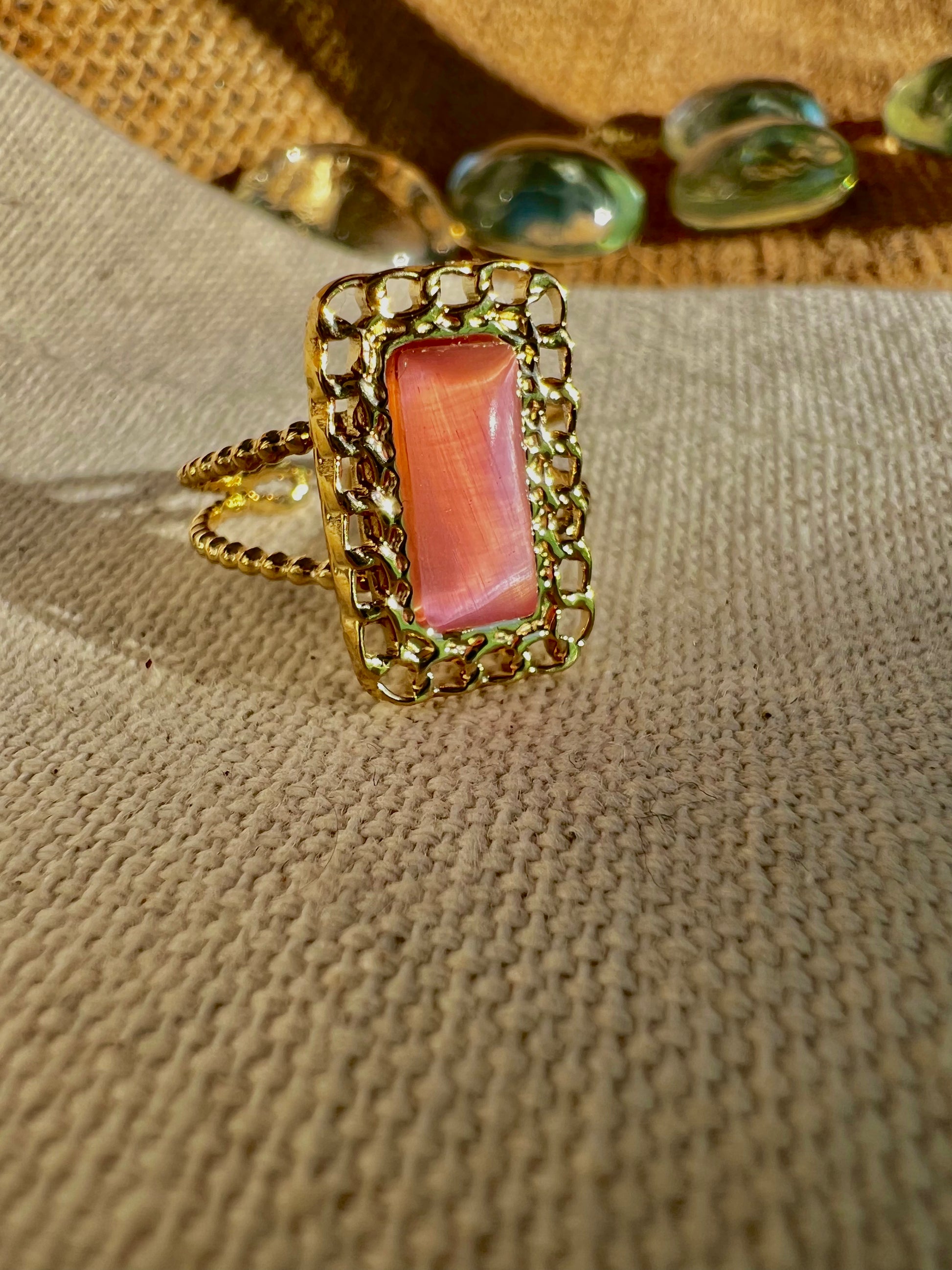 Laissez-vous séduire par la bague ISALINE 💍, ornée d’une élégante pierre œil de chat rectangulaire, aux reflets subtils et mystérieux. Disponible en œil de chat rose et œil de chat vert, elle s’adapte à tous les styles. Montée sur un anneau doré en acier inoxydable, cette bague est ajustable, hypoallergénique et résistante à l’eau 💧, l’alliance parfaite du style et du confort au quotidien ✨.
