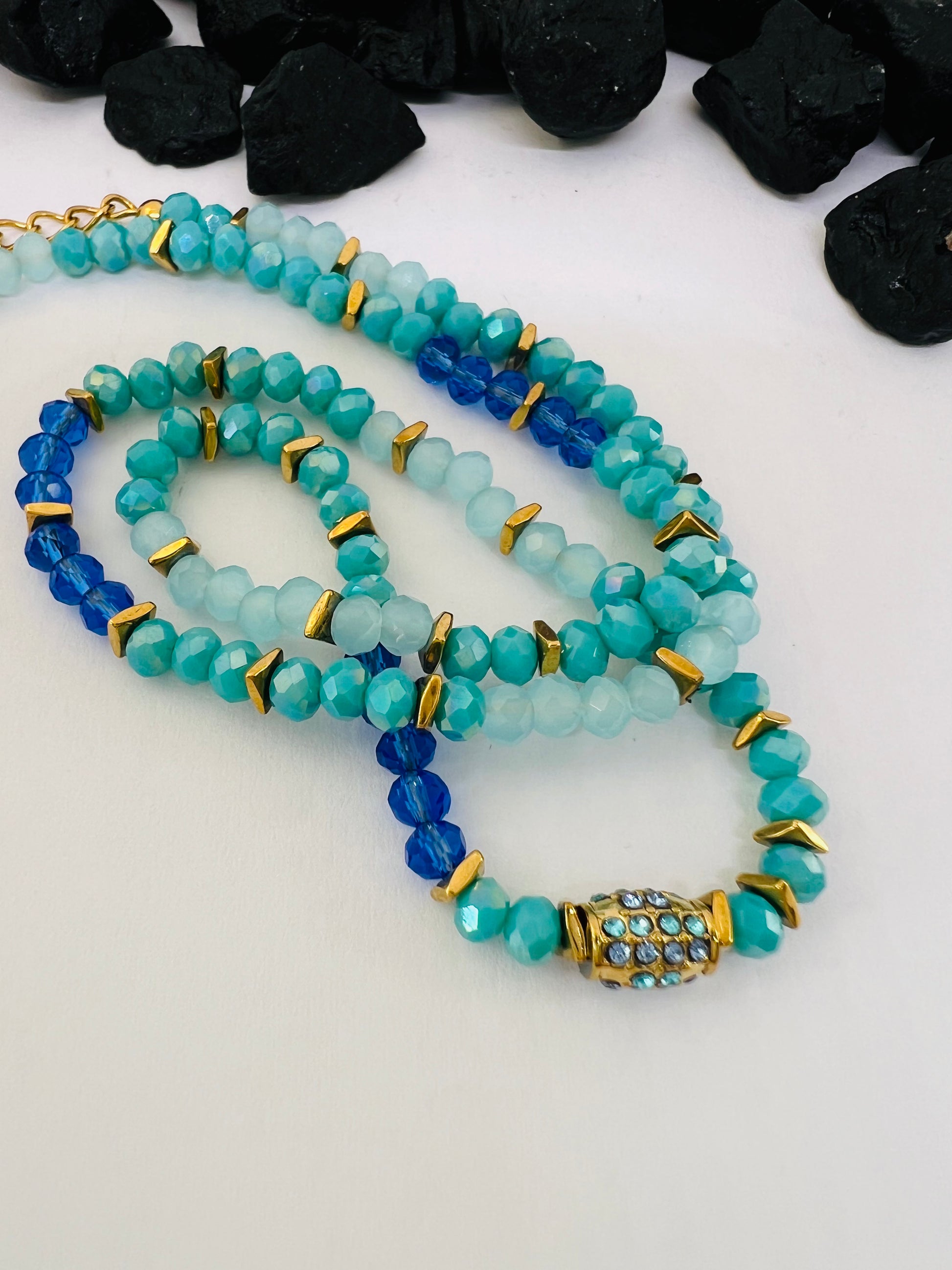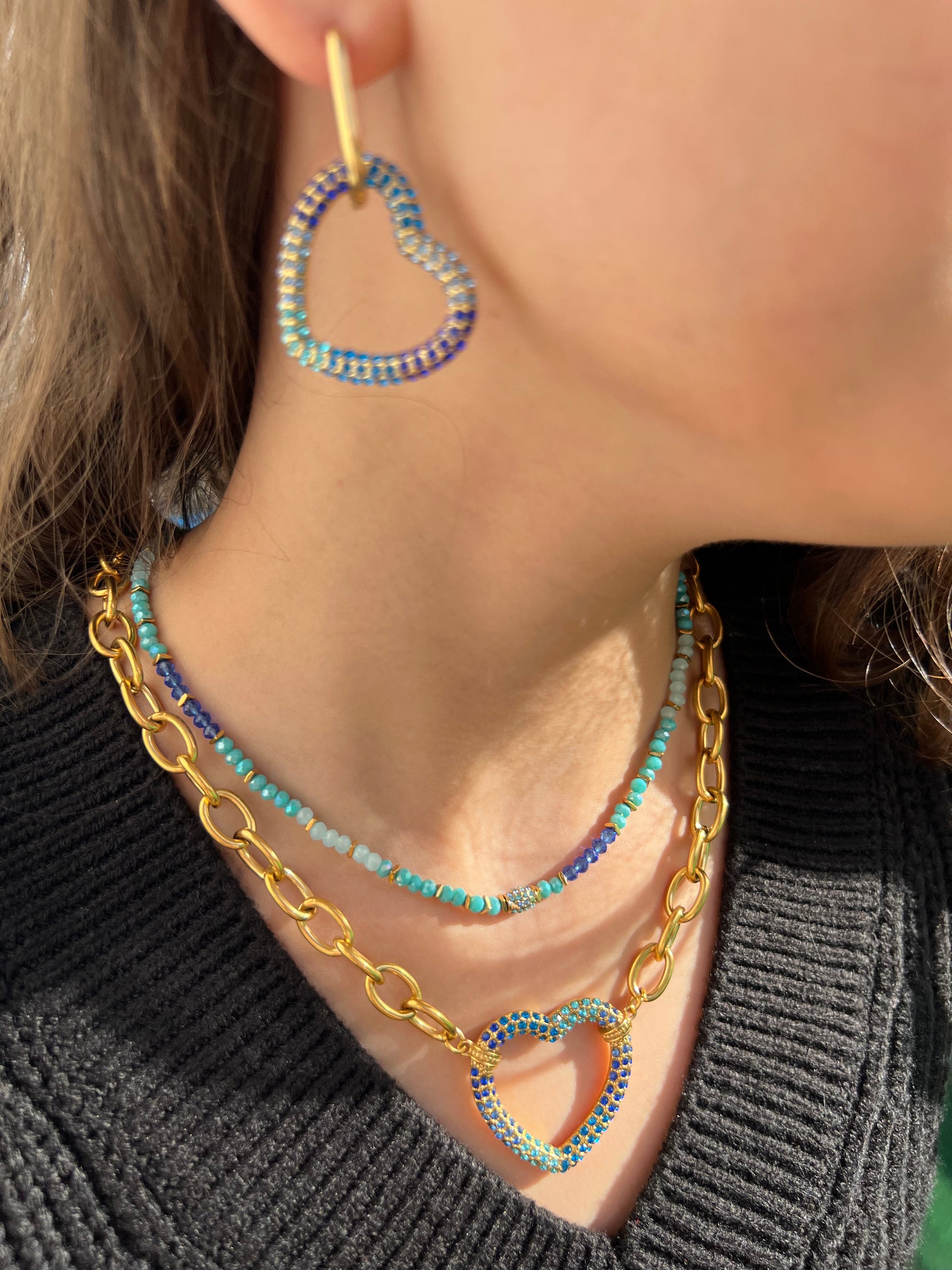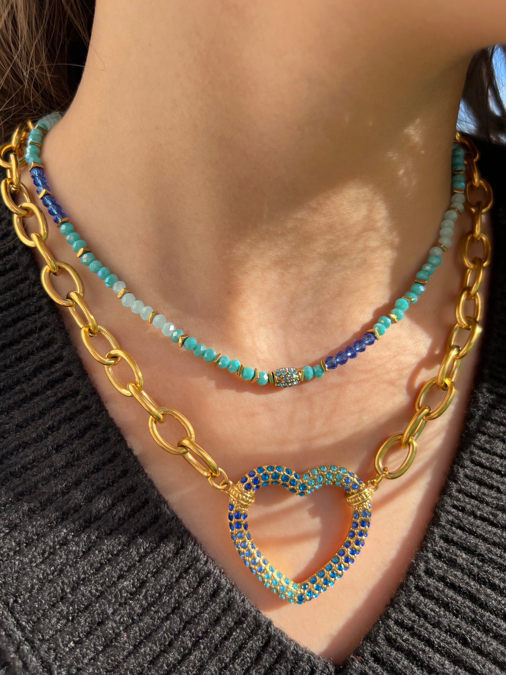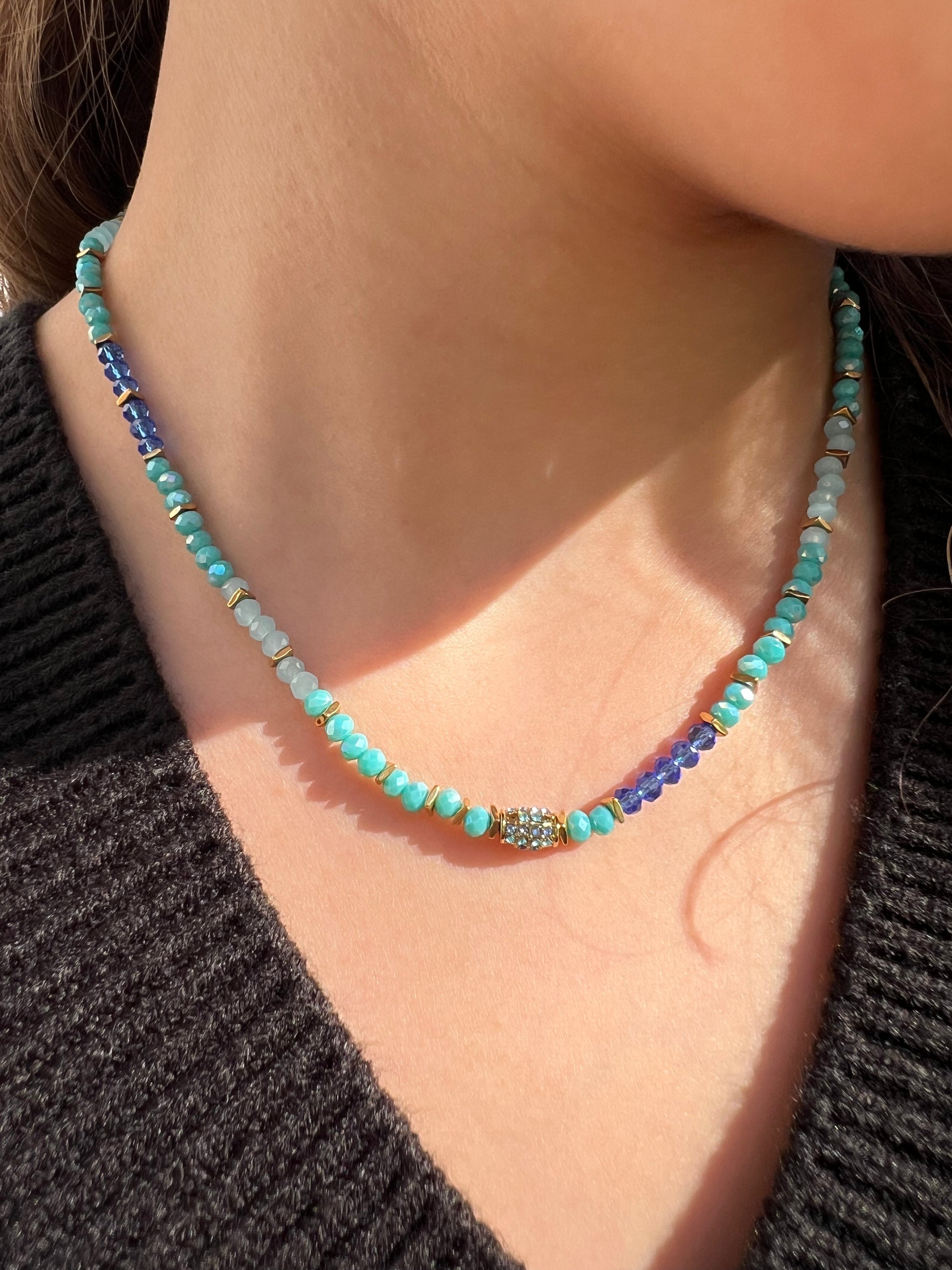✧ Collier doré en acier inoxydable et mélange de pierres naturelles.
