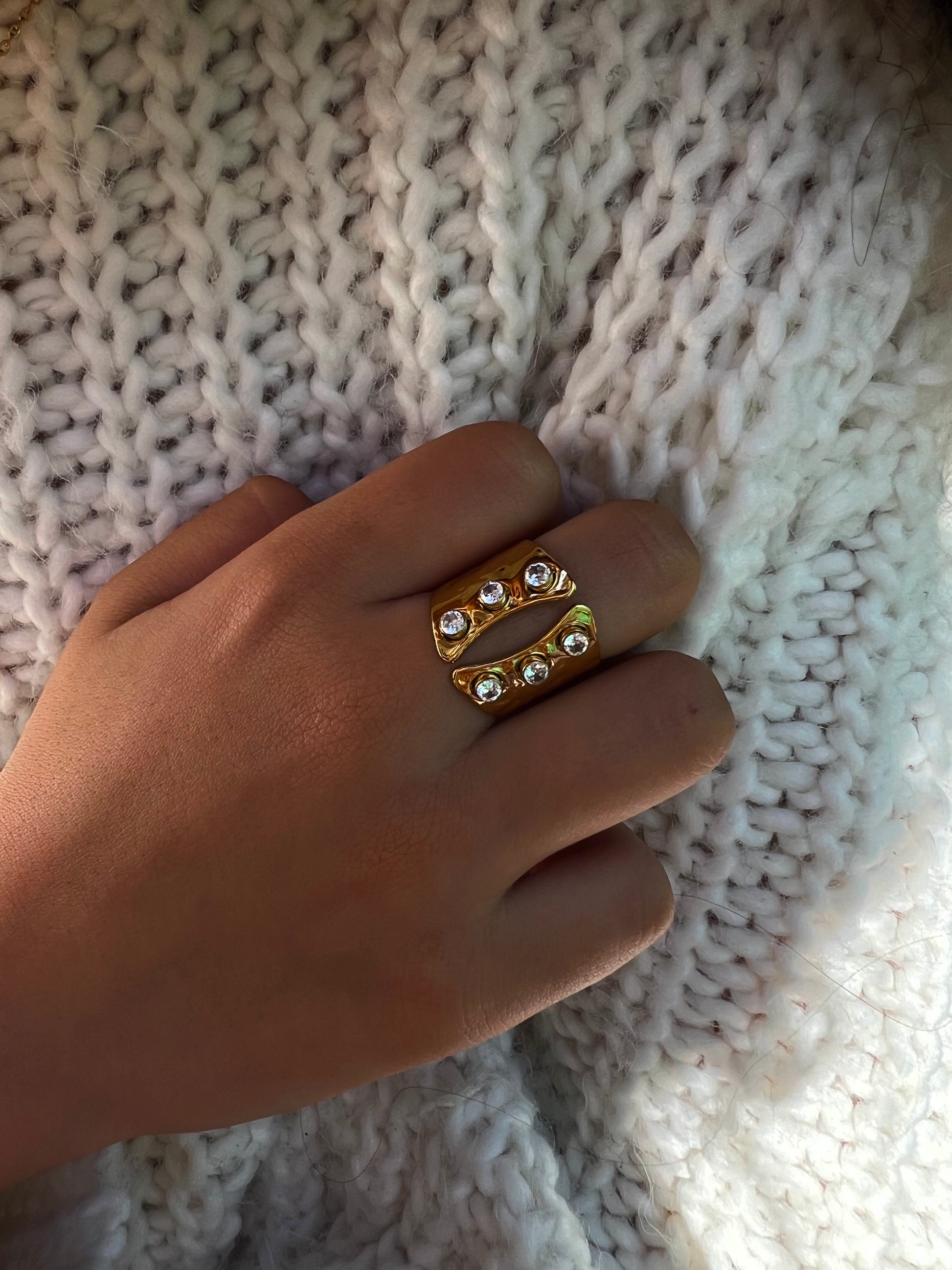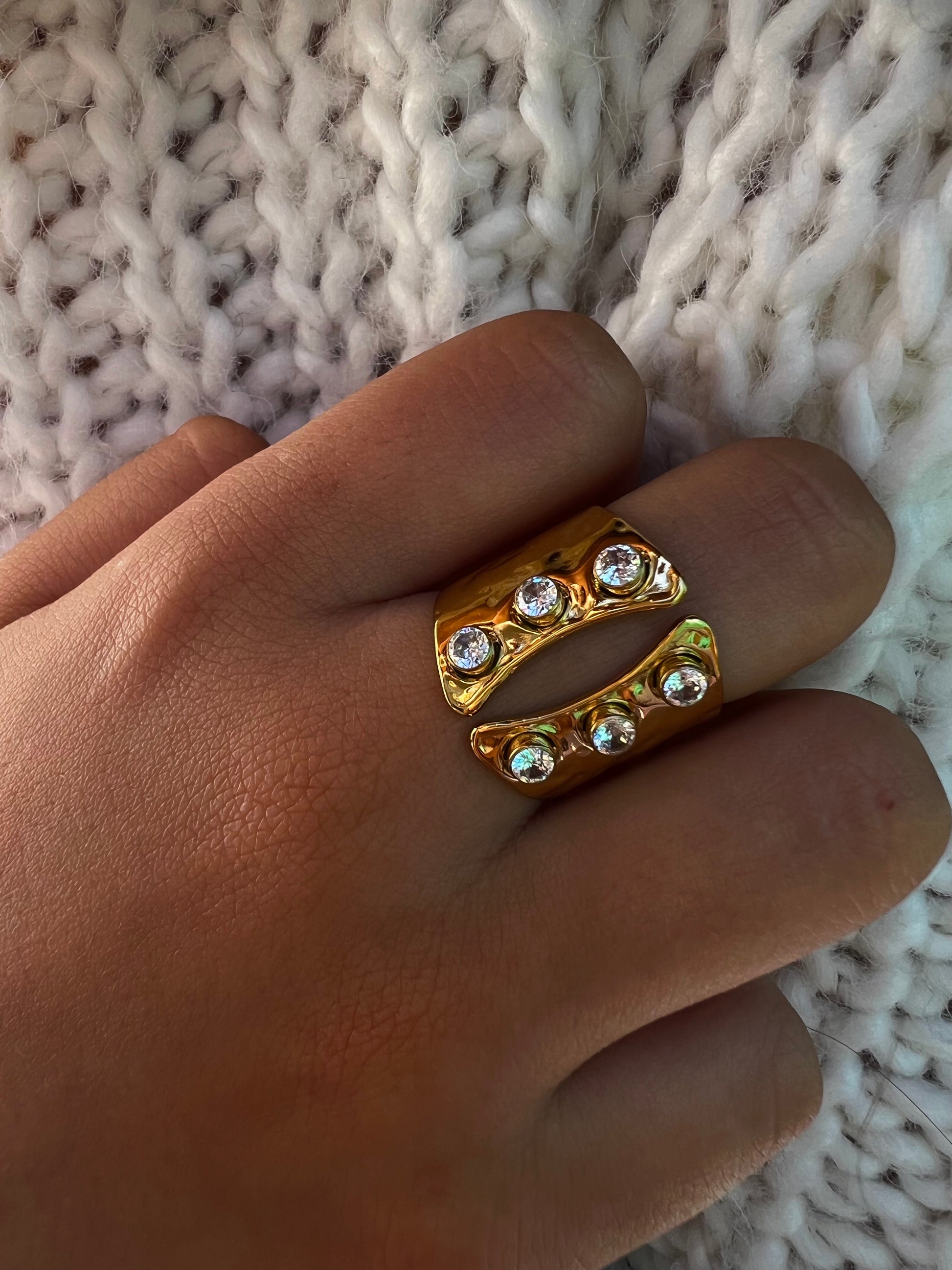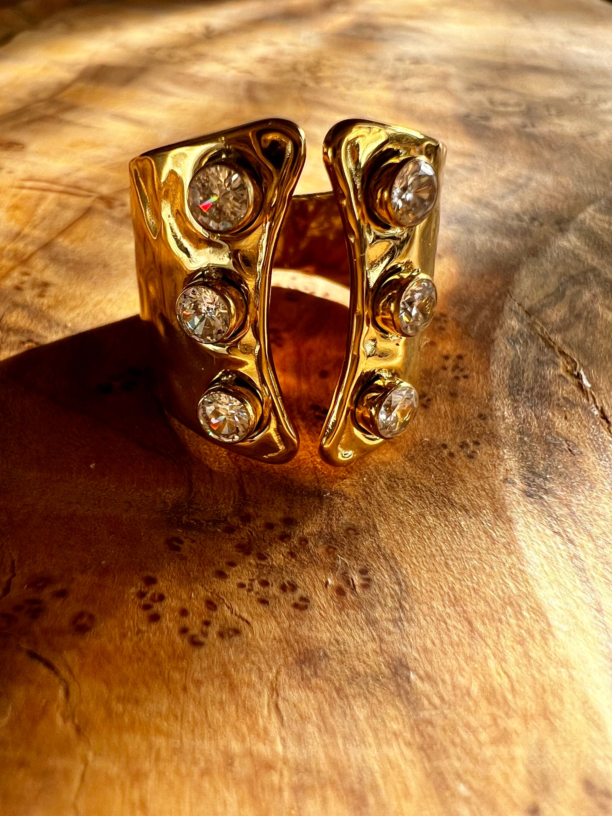 ✧ Bague dorée en acier inoxydable et oxyde de zirconium.