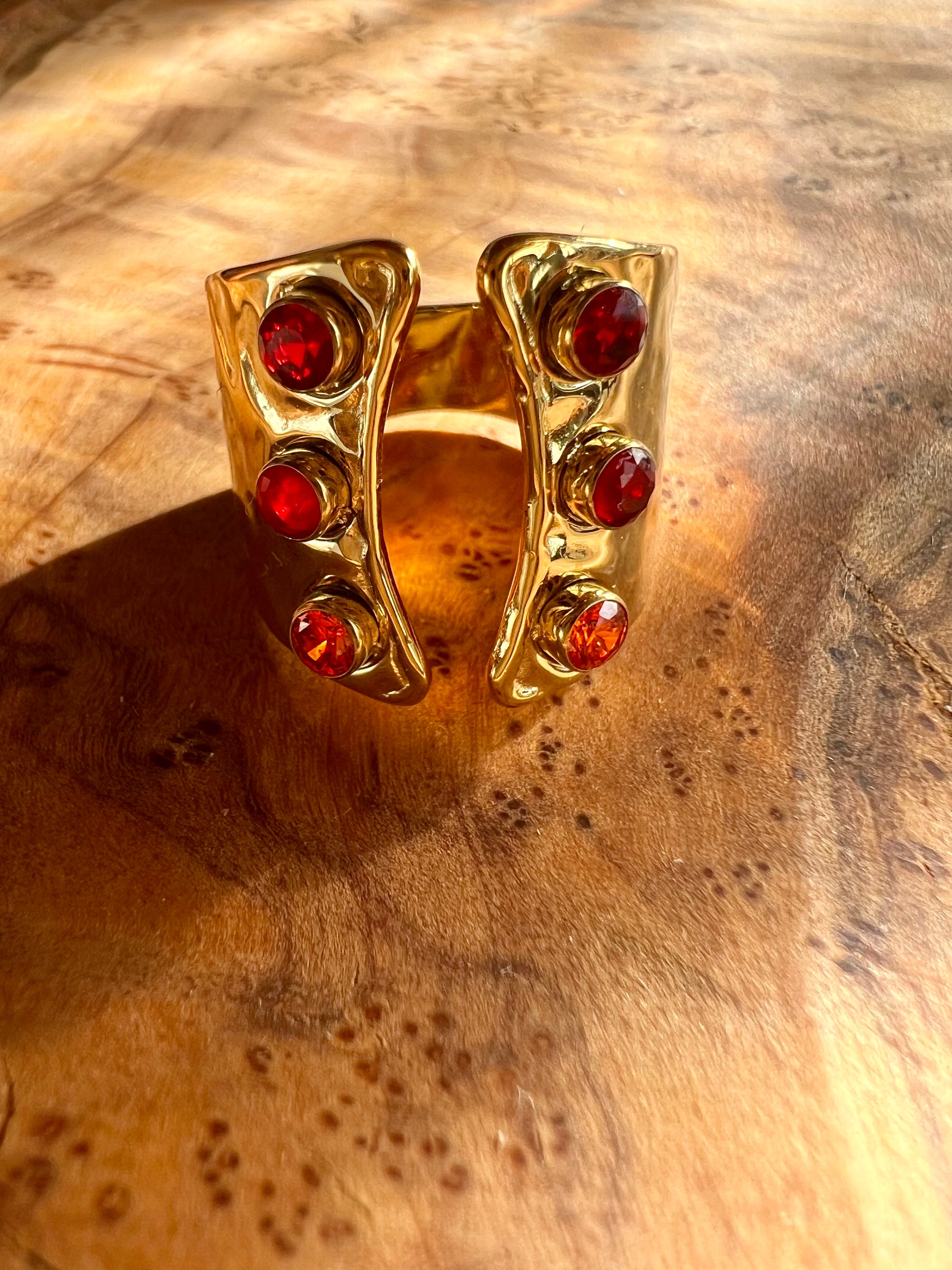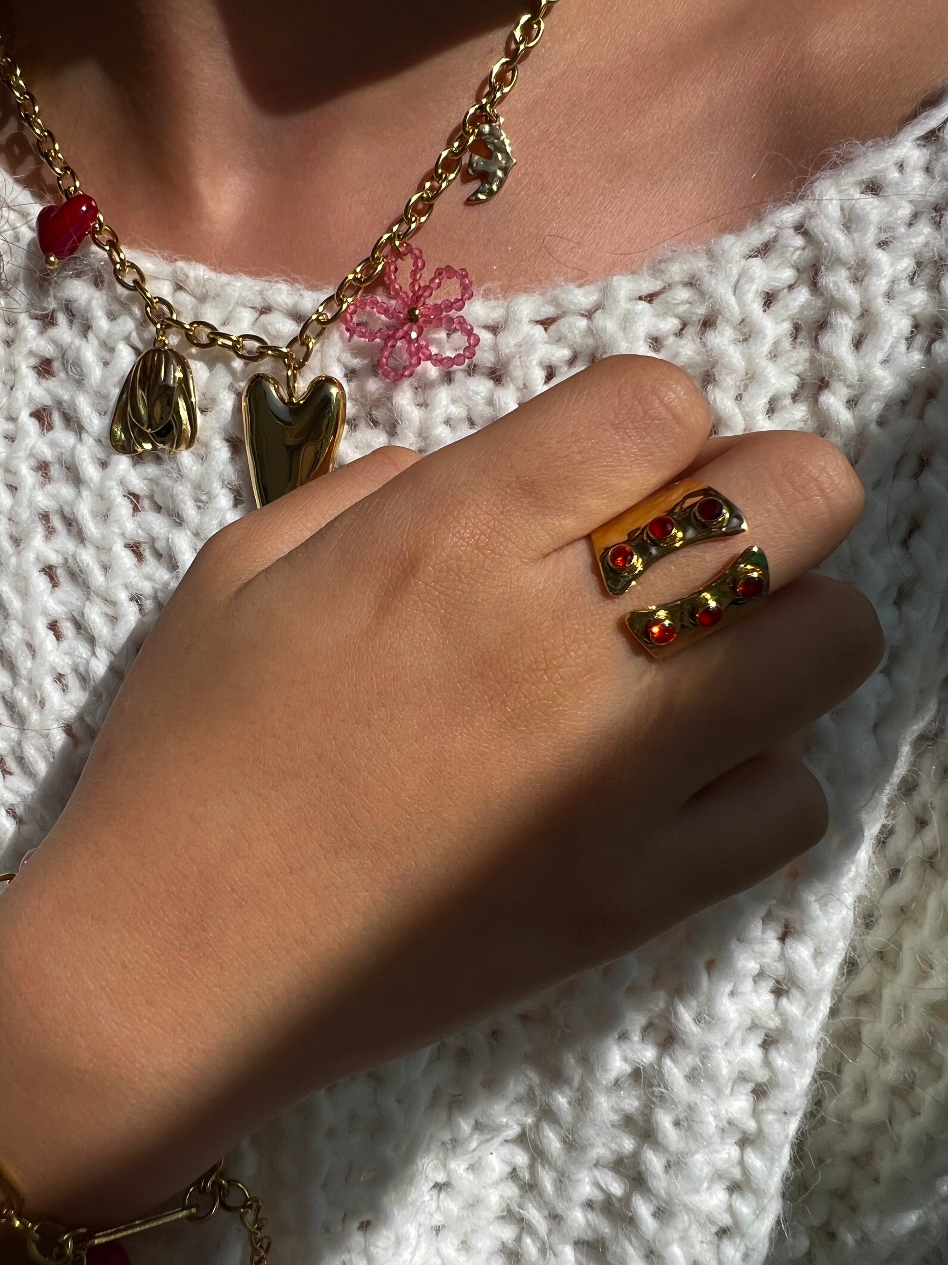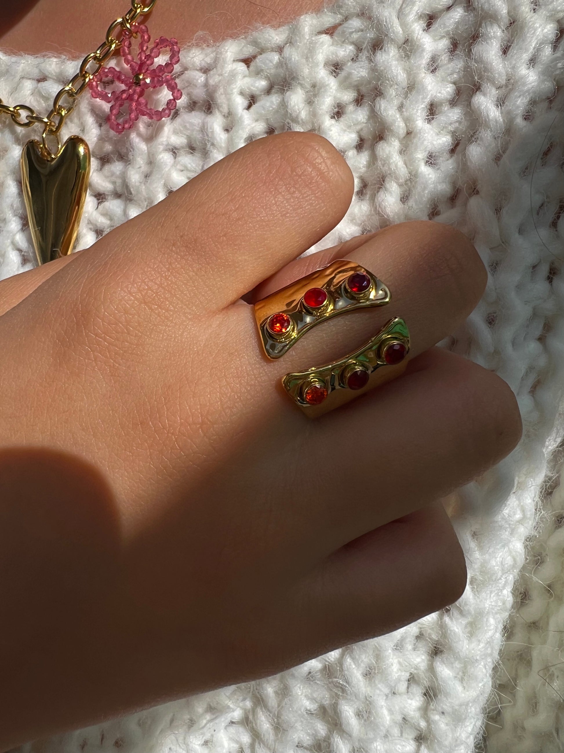 ✧ Bague dorée en acier inoxydable et oxyde de zirconium.