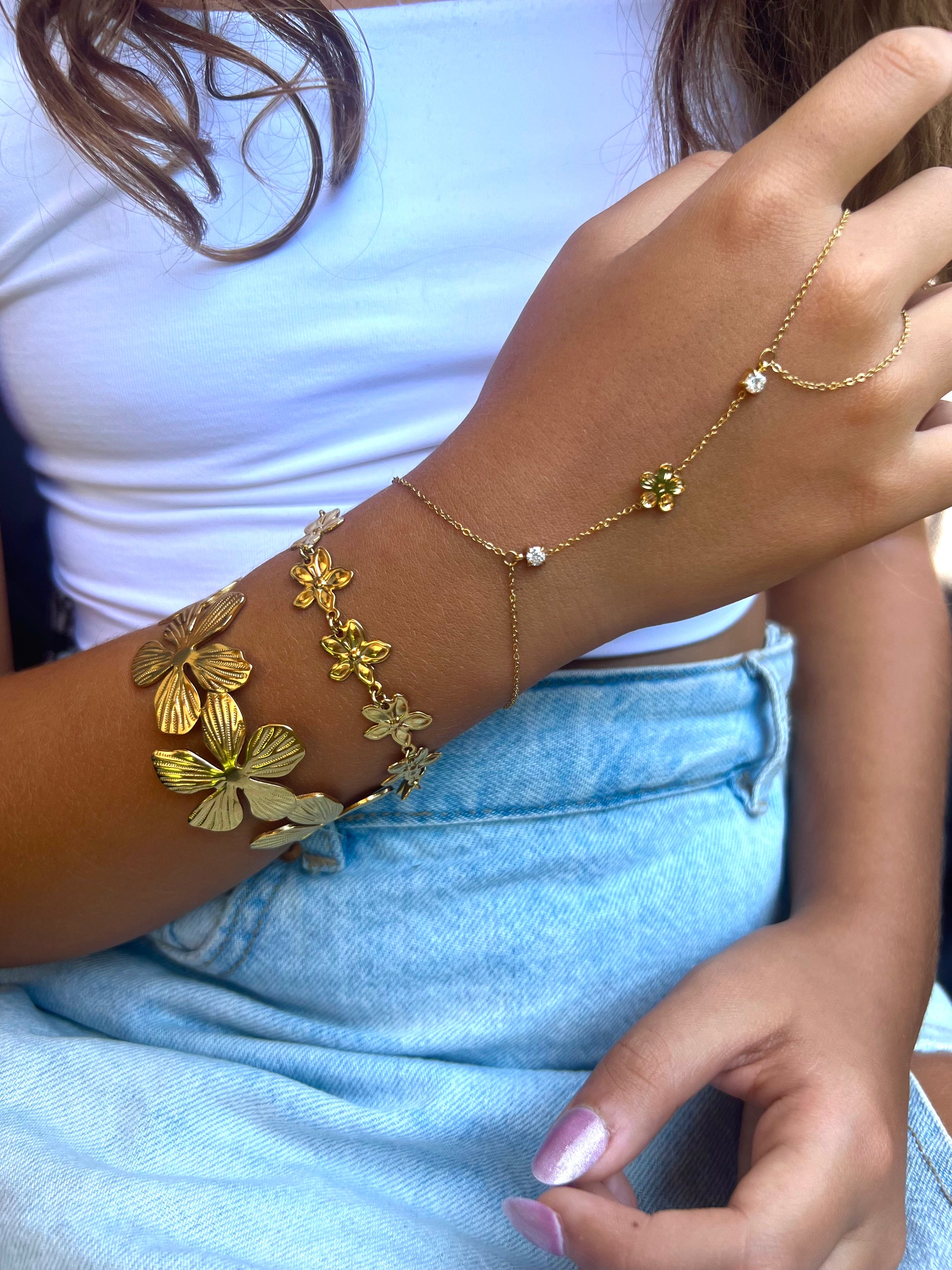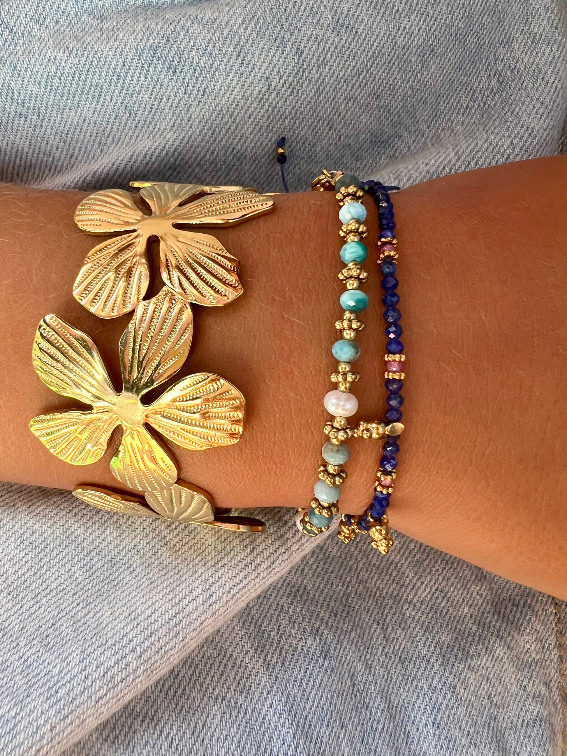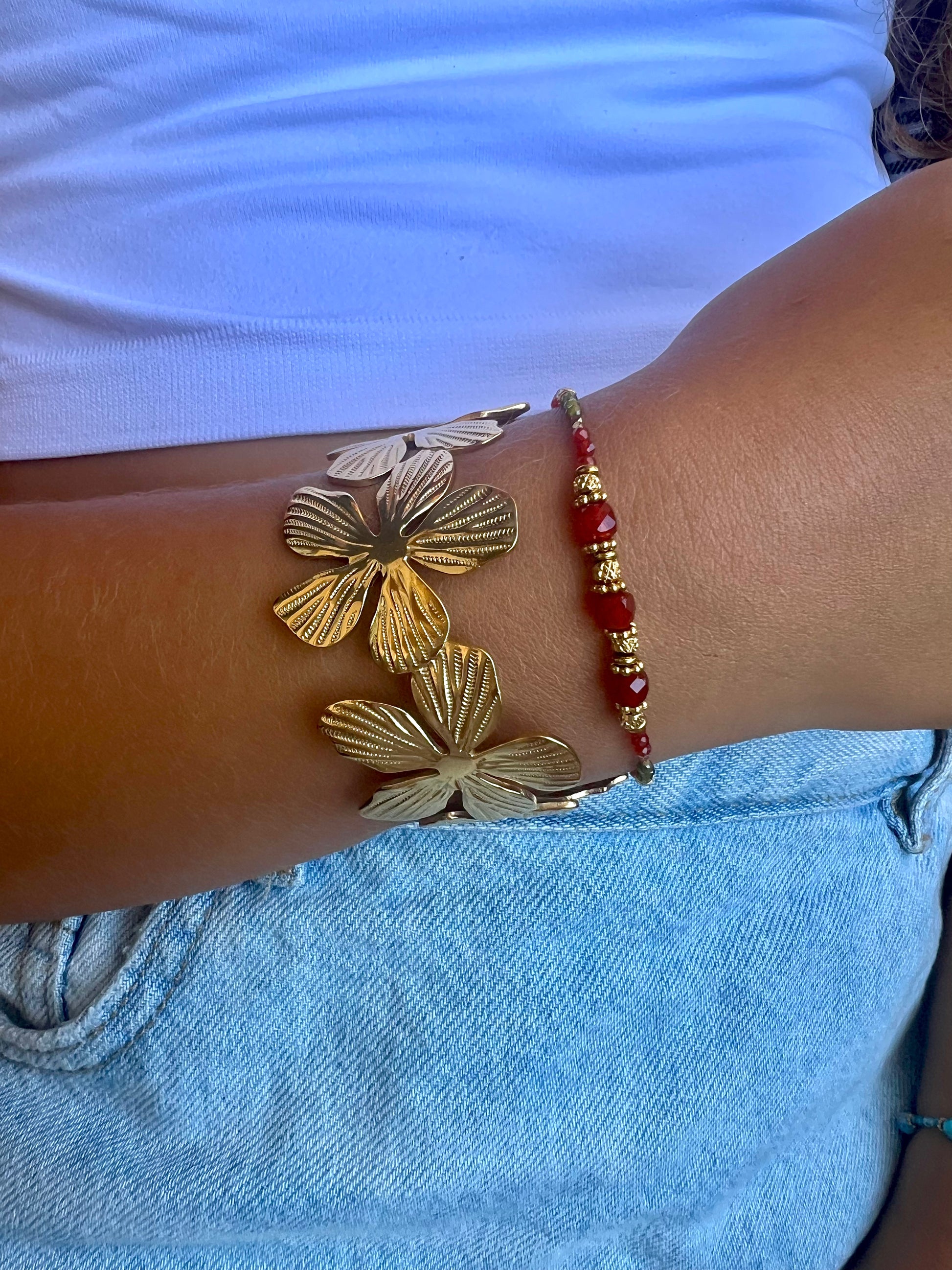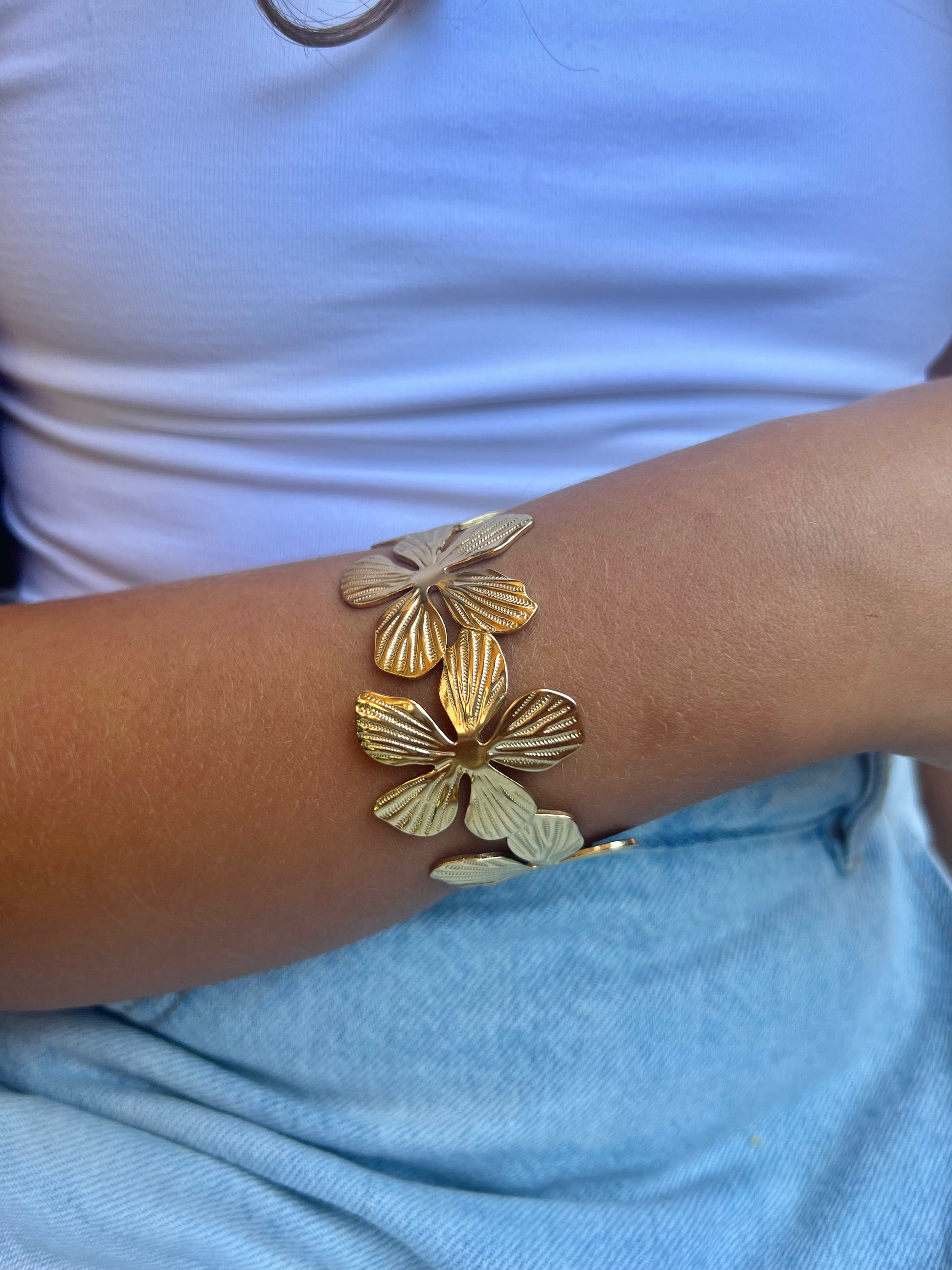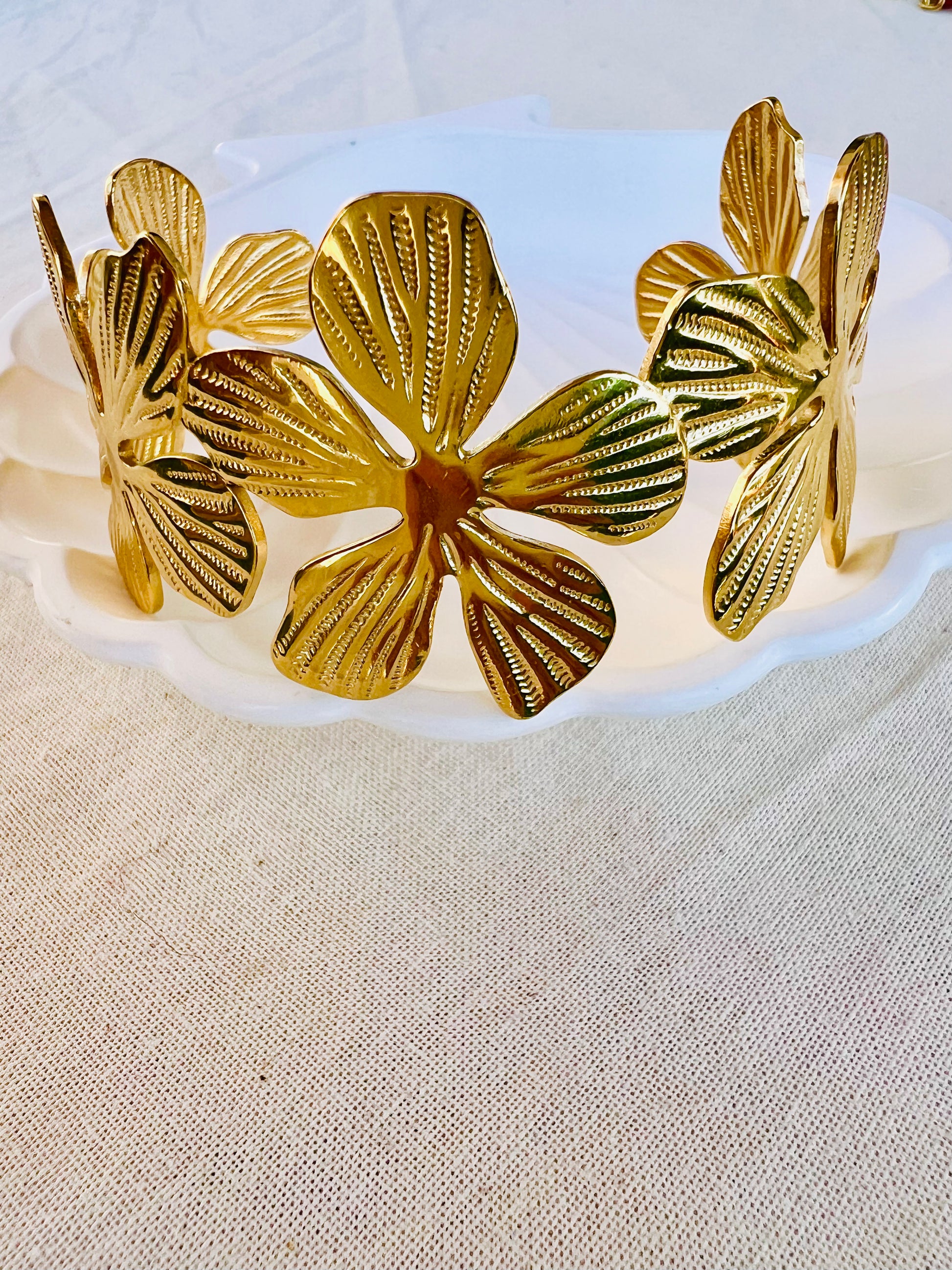 Le jonc Leros se distingue par son design texturé délicatement orné d'une fleur en relief, pour une touche bohème chic et raffinée. Sa silhouette fine s’adapte à tous les poignets et sublime vos tenues avec subtilité.
