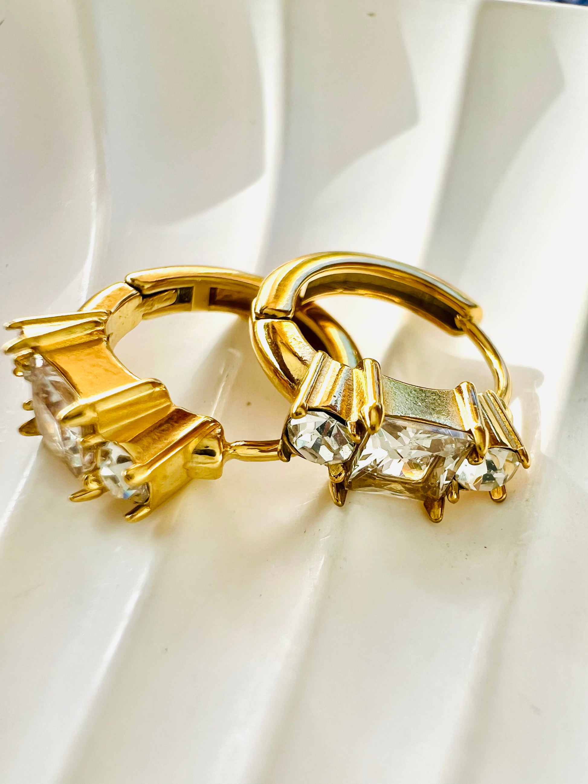 ✧ Boucles dorées en acier inoxydable doré et oxyde de zirconium.