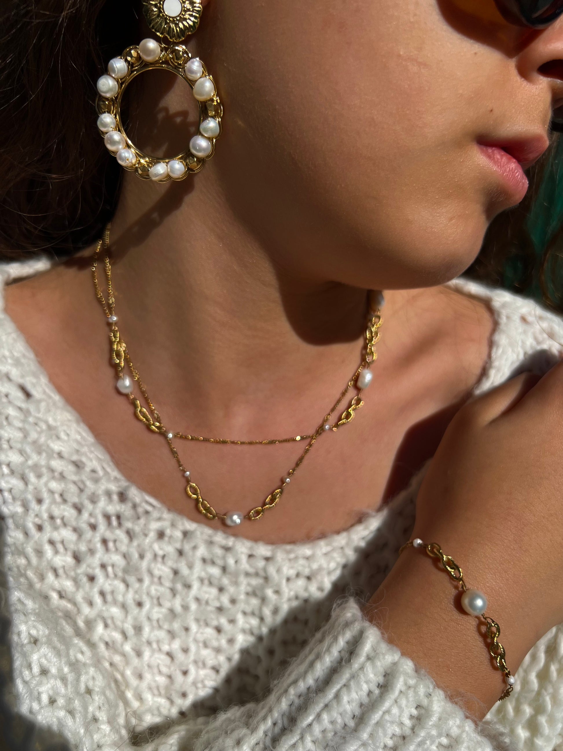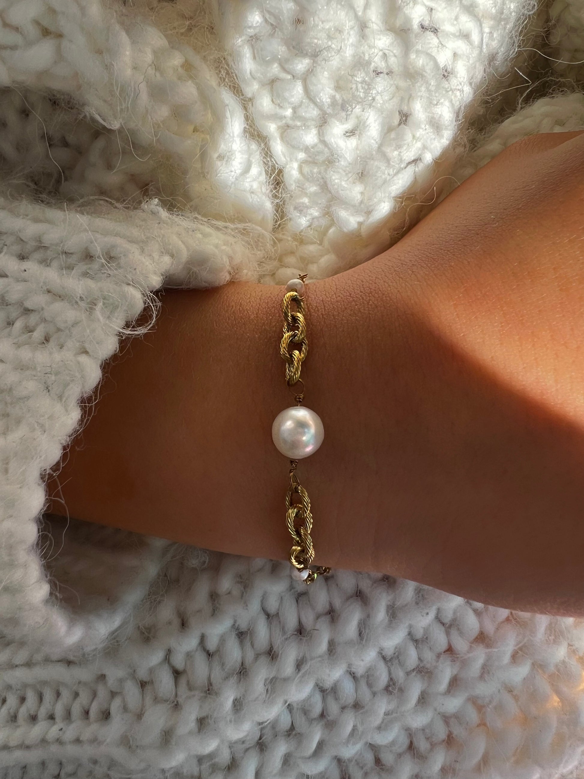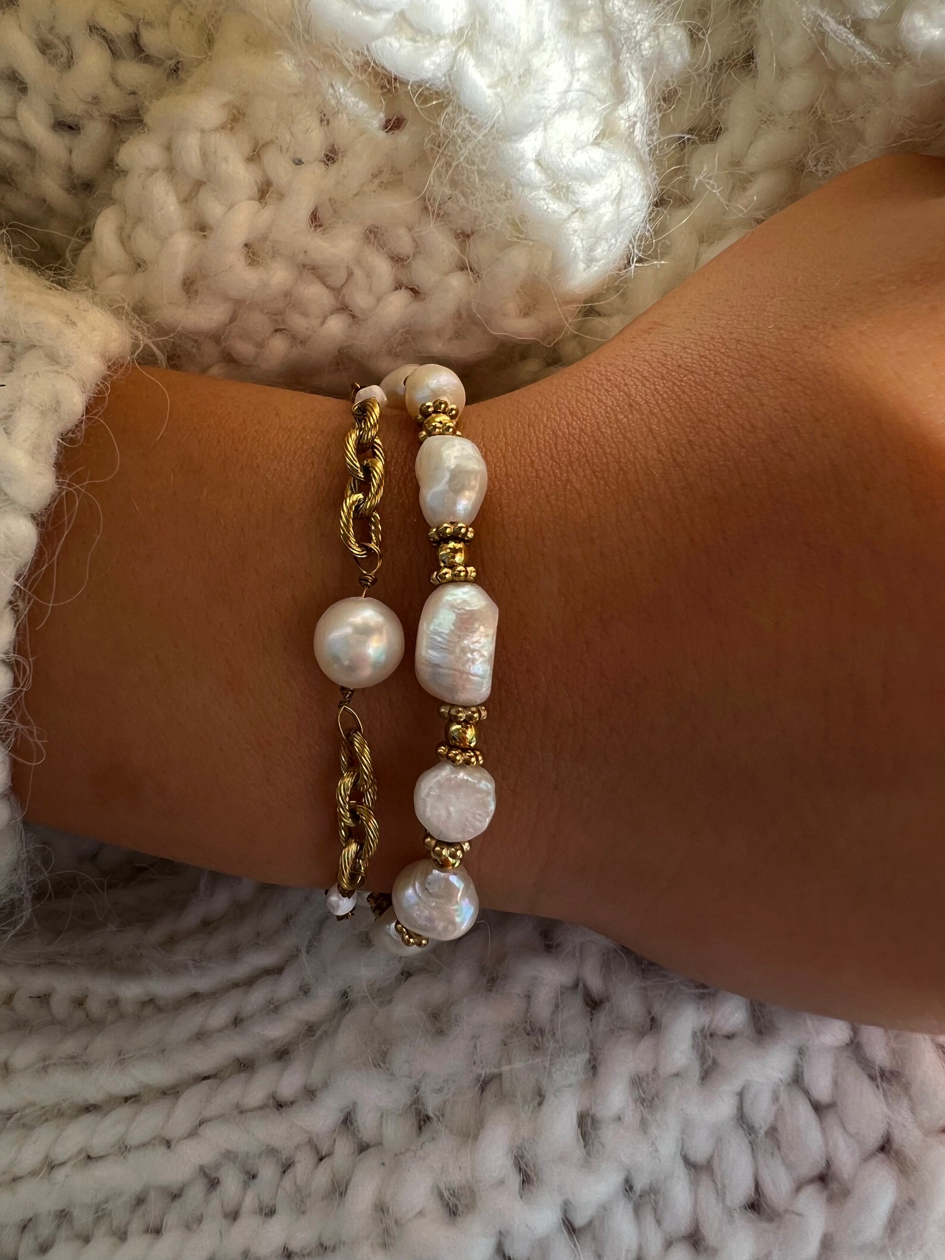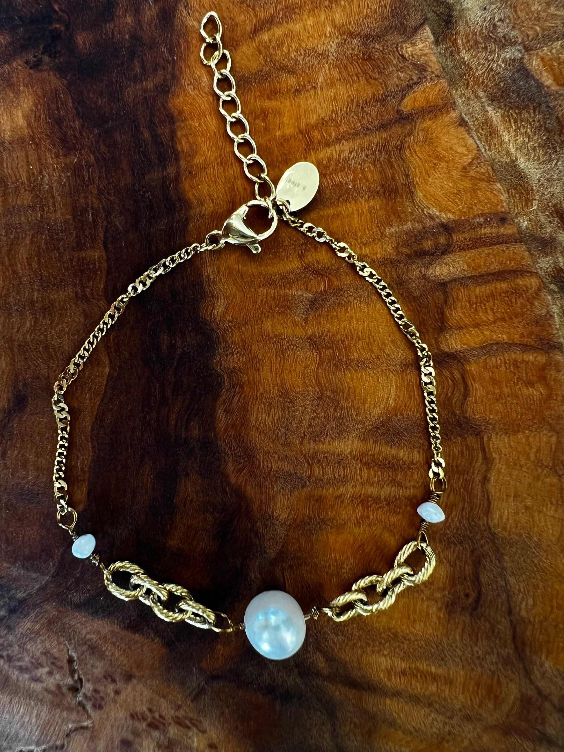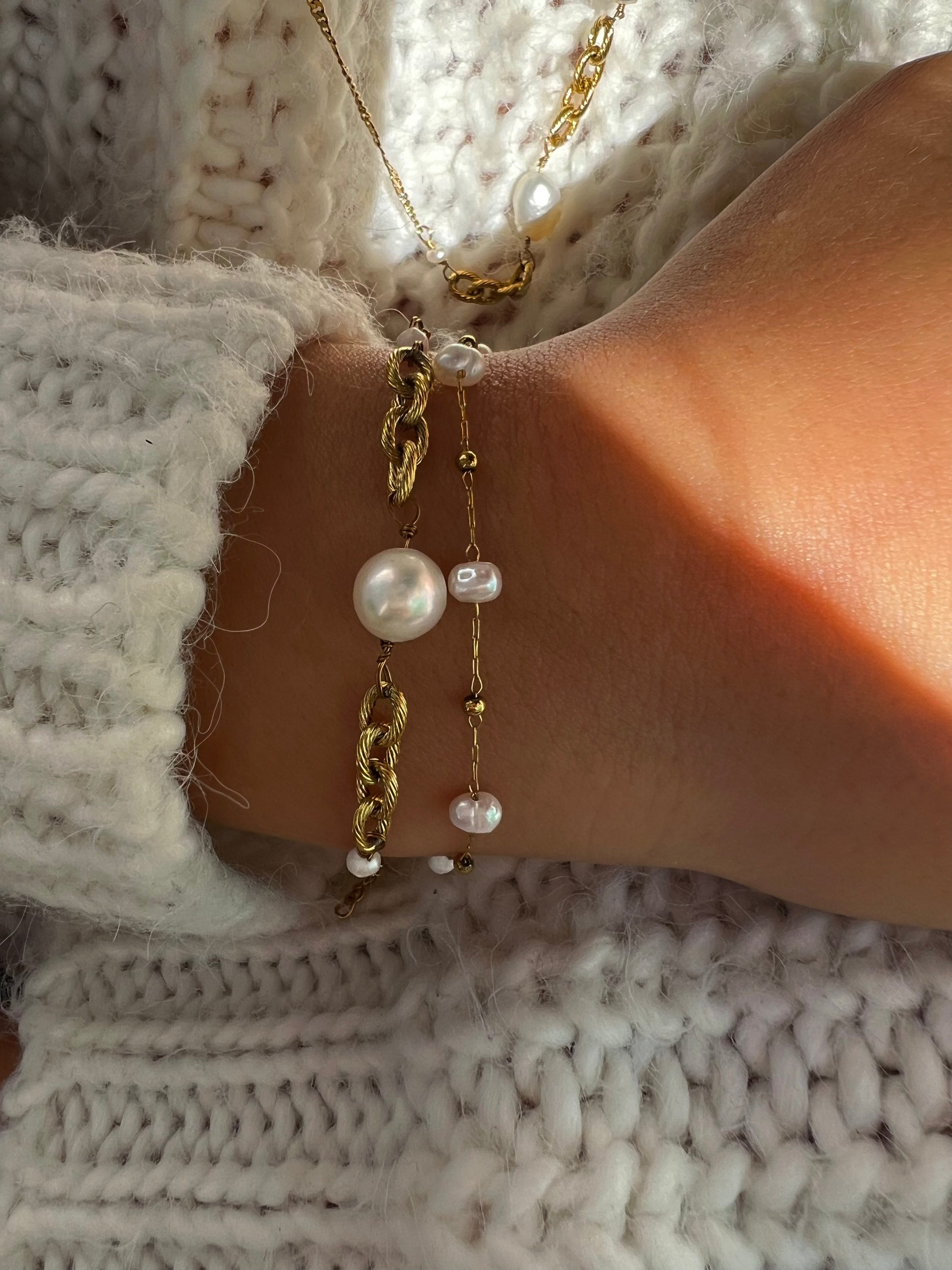 ✧ Bracelet doré en acier inoxydable et perles d'eau douce.
