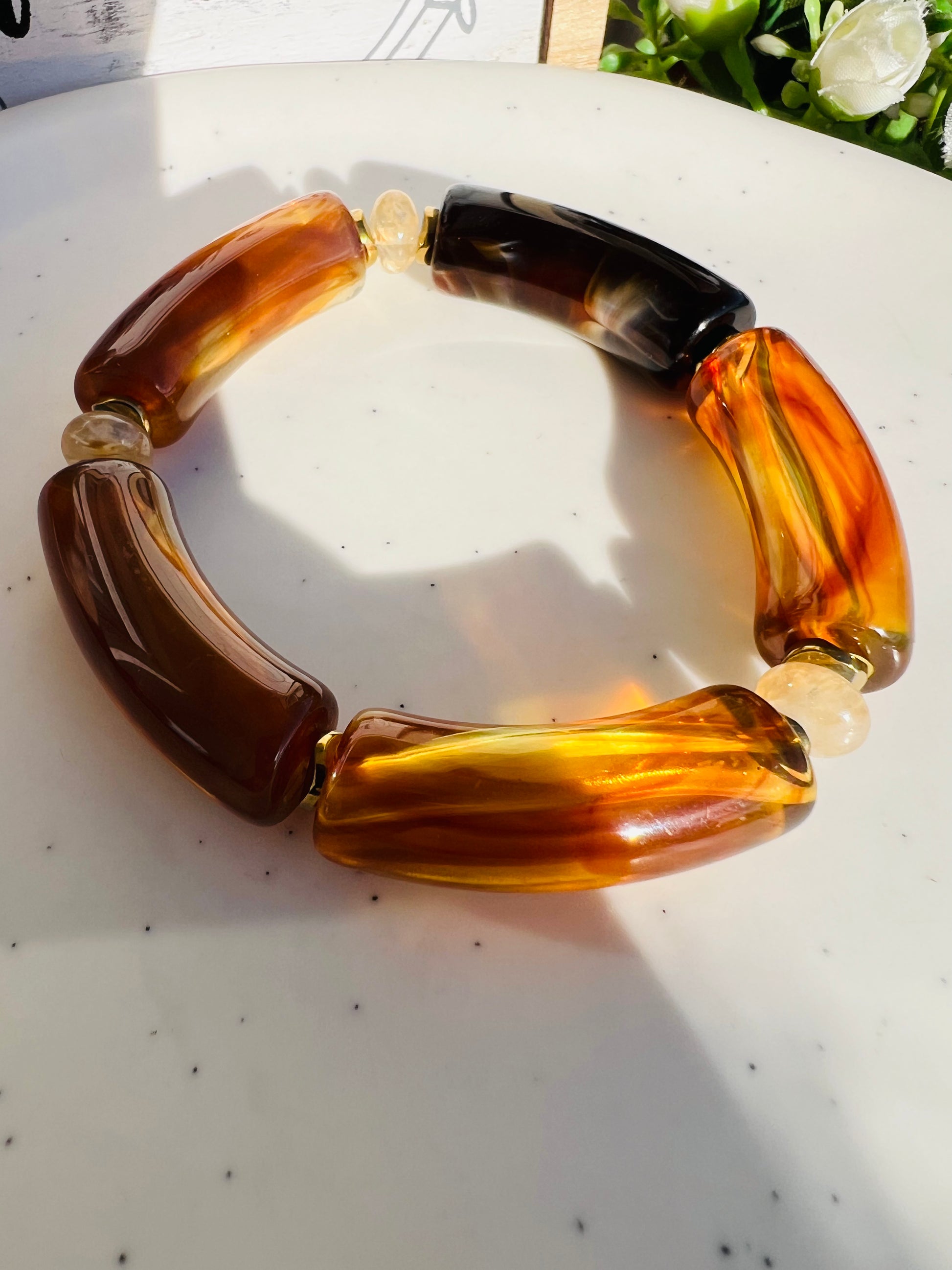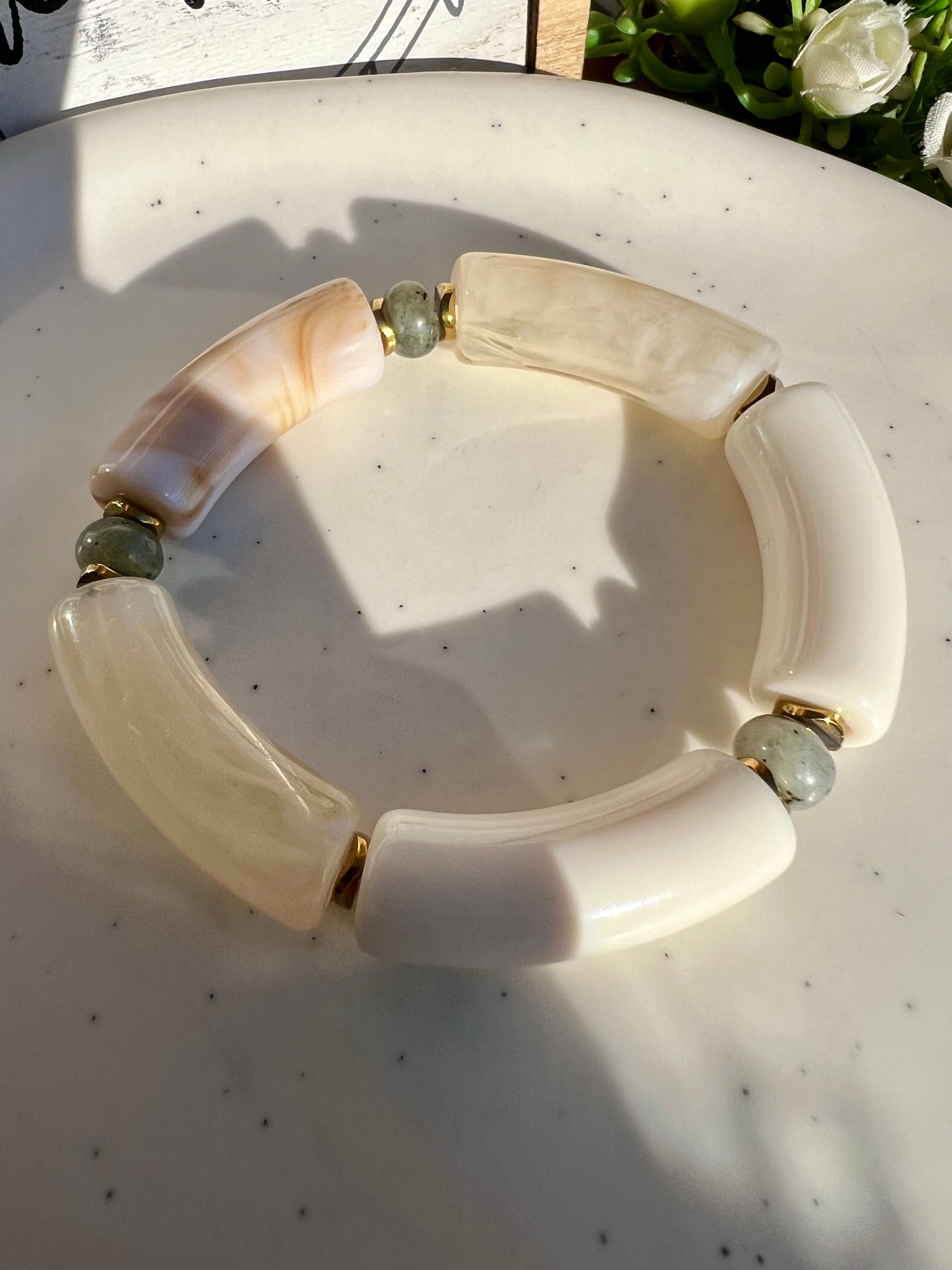 ✧ Bracelet doré en acier inoxydable et résine.