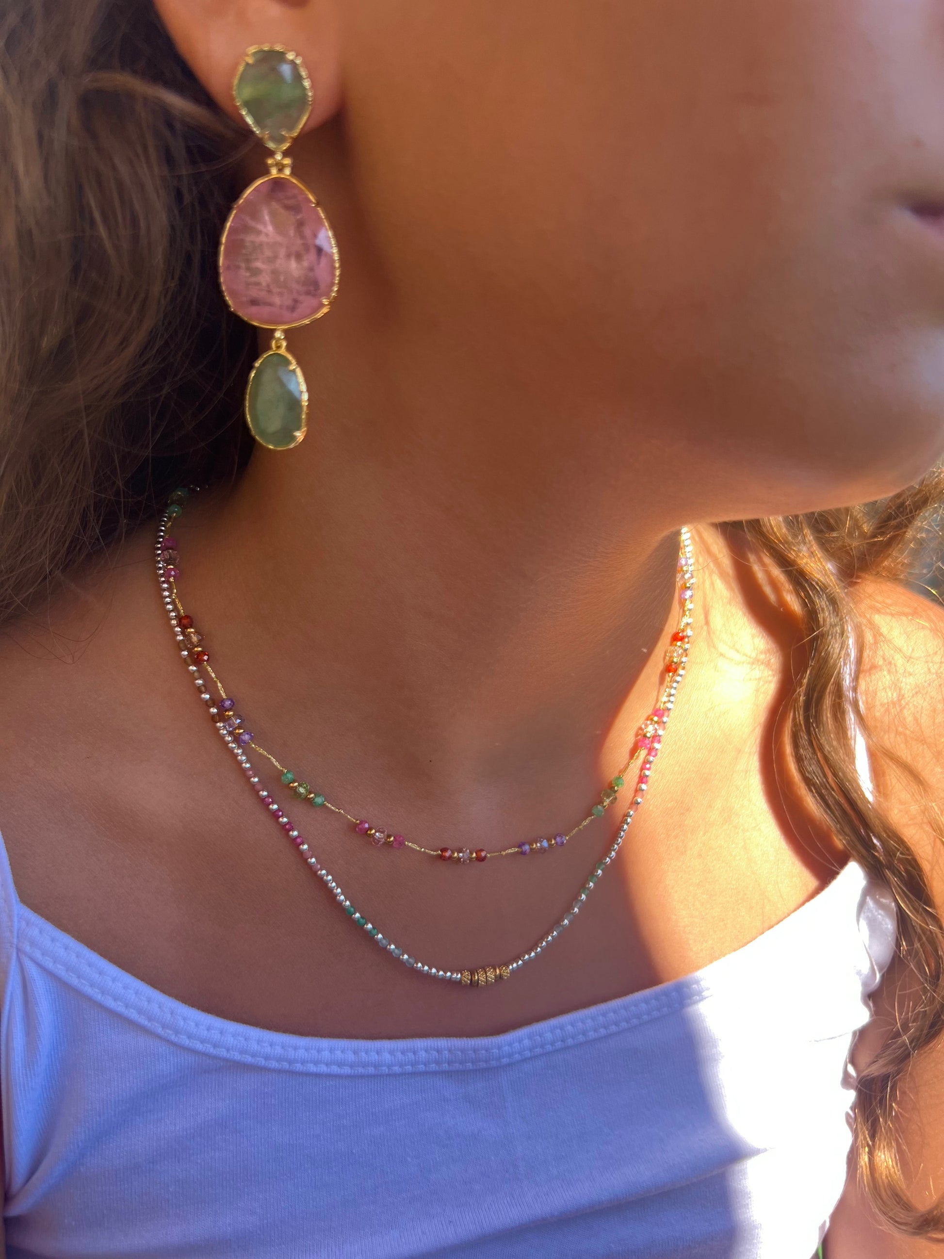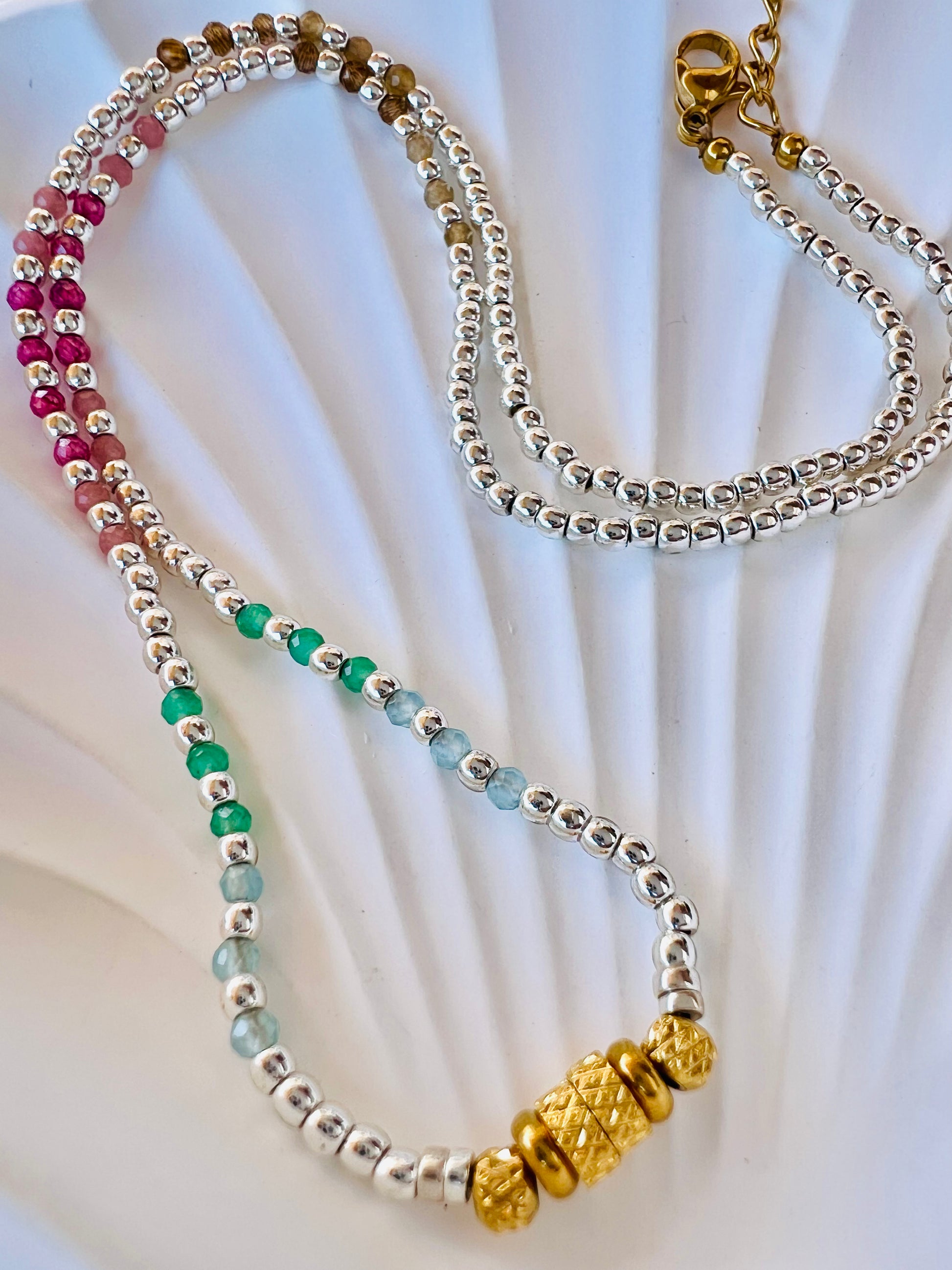 ✧ Collier perlé en hématite argenté et mix de pierres naturelles