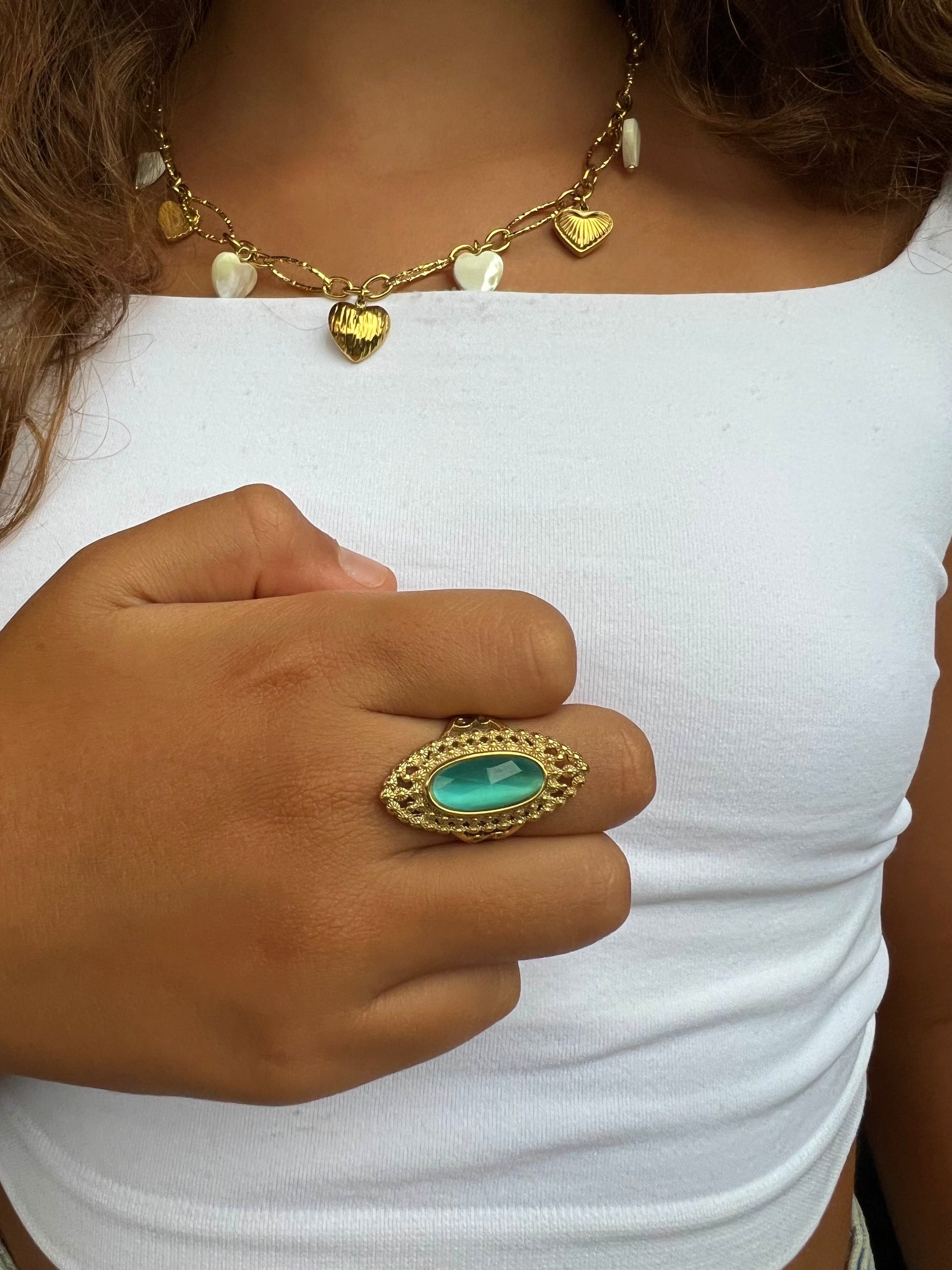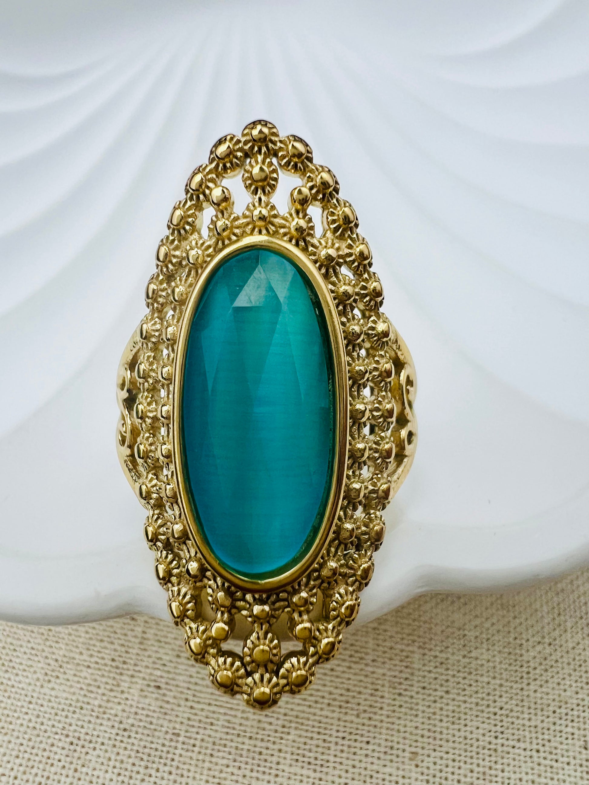 â§ Pierres naturelles: oeil de chat vert ou bleu.