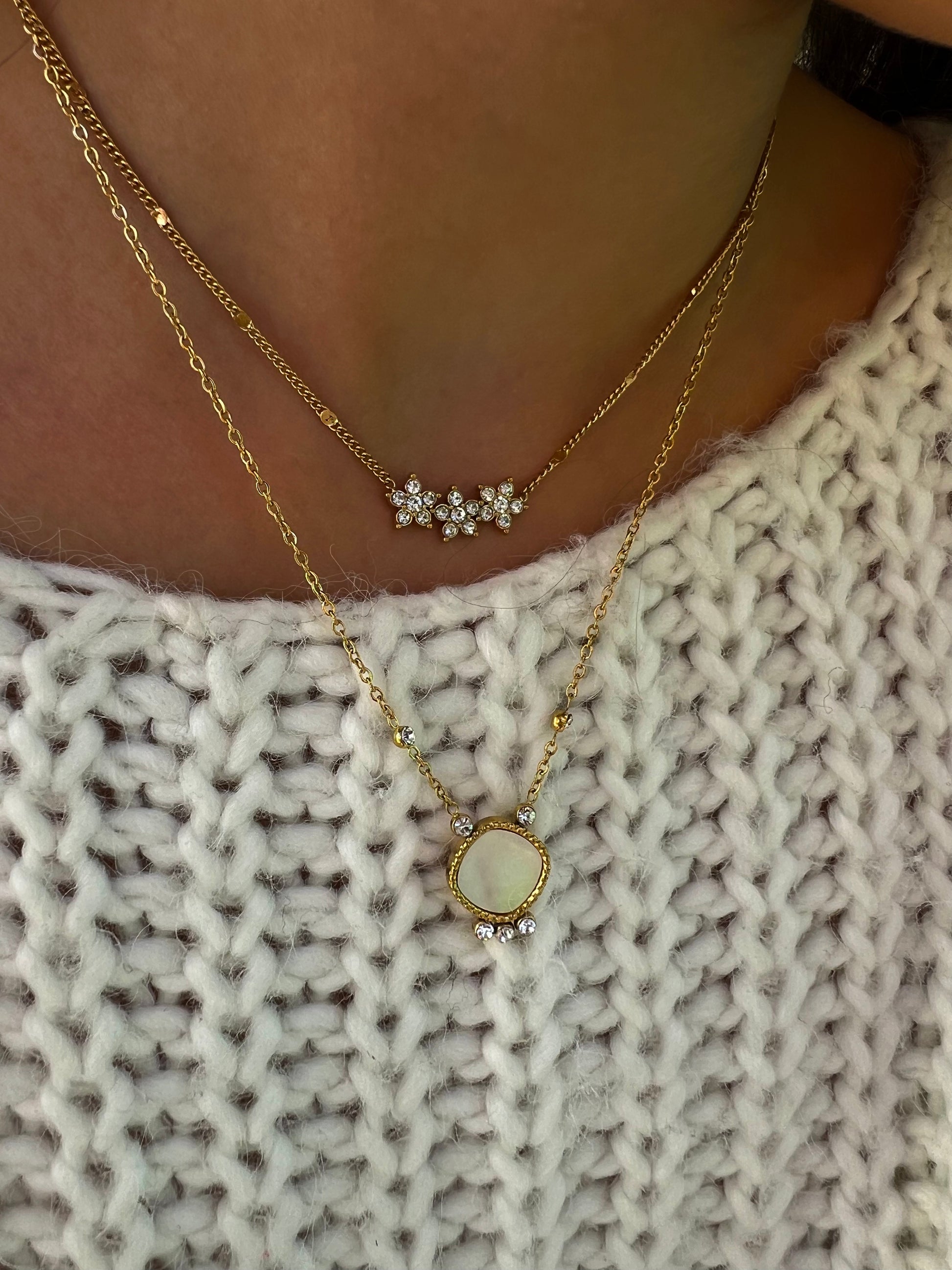 ✧ Collier doré en acier inoxydable et oxyde de zirconium.