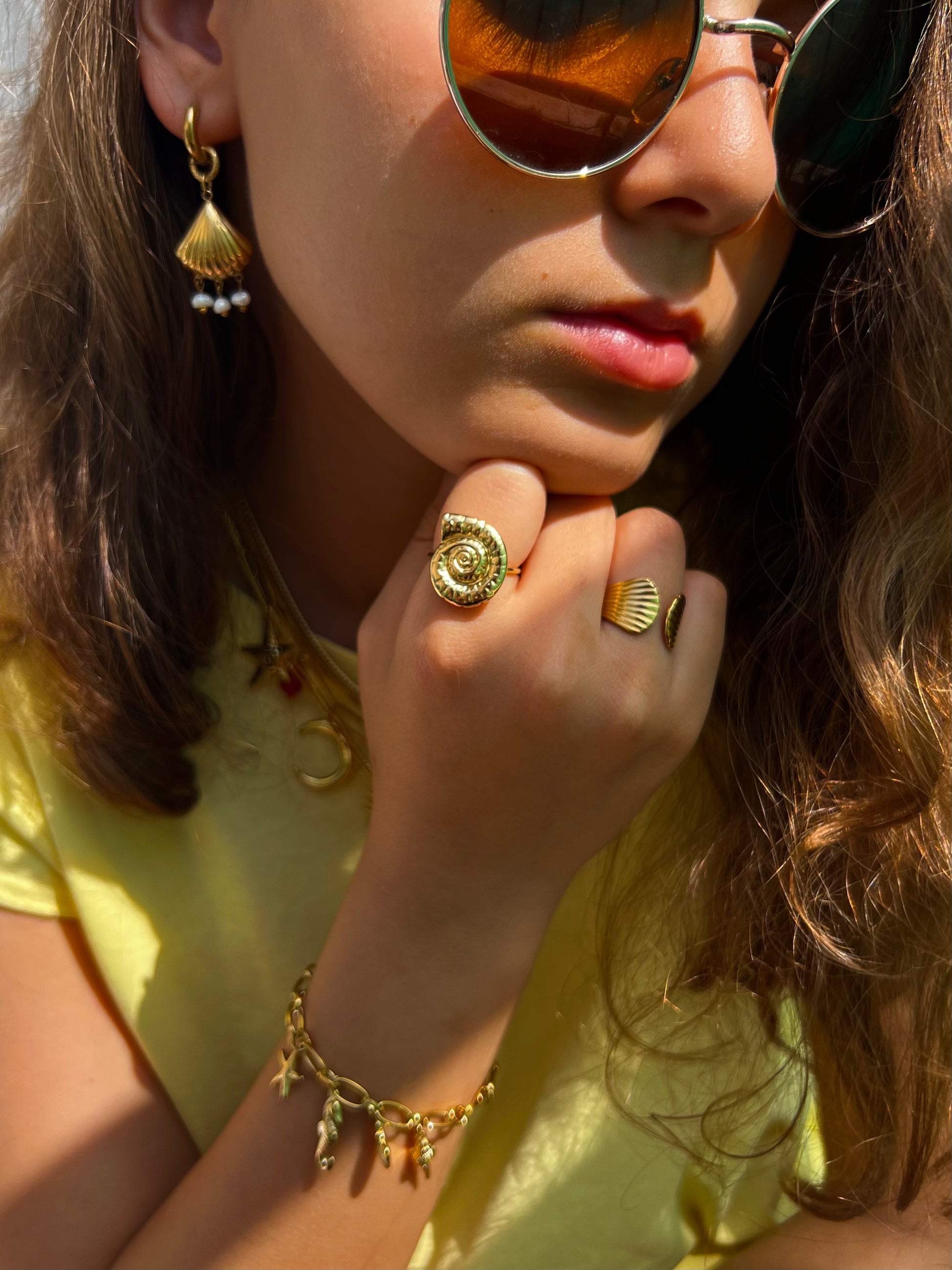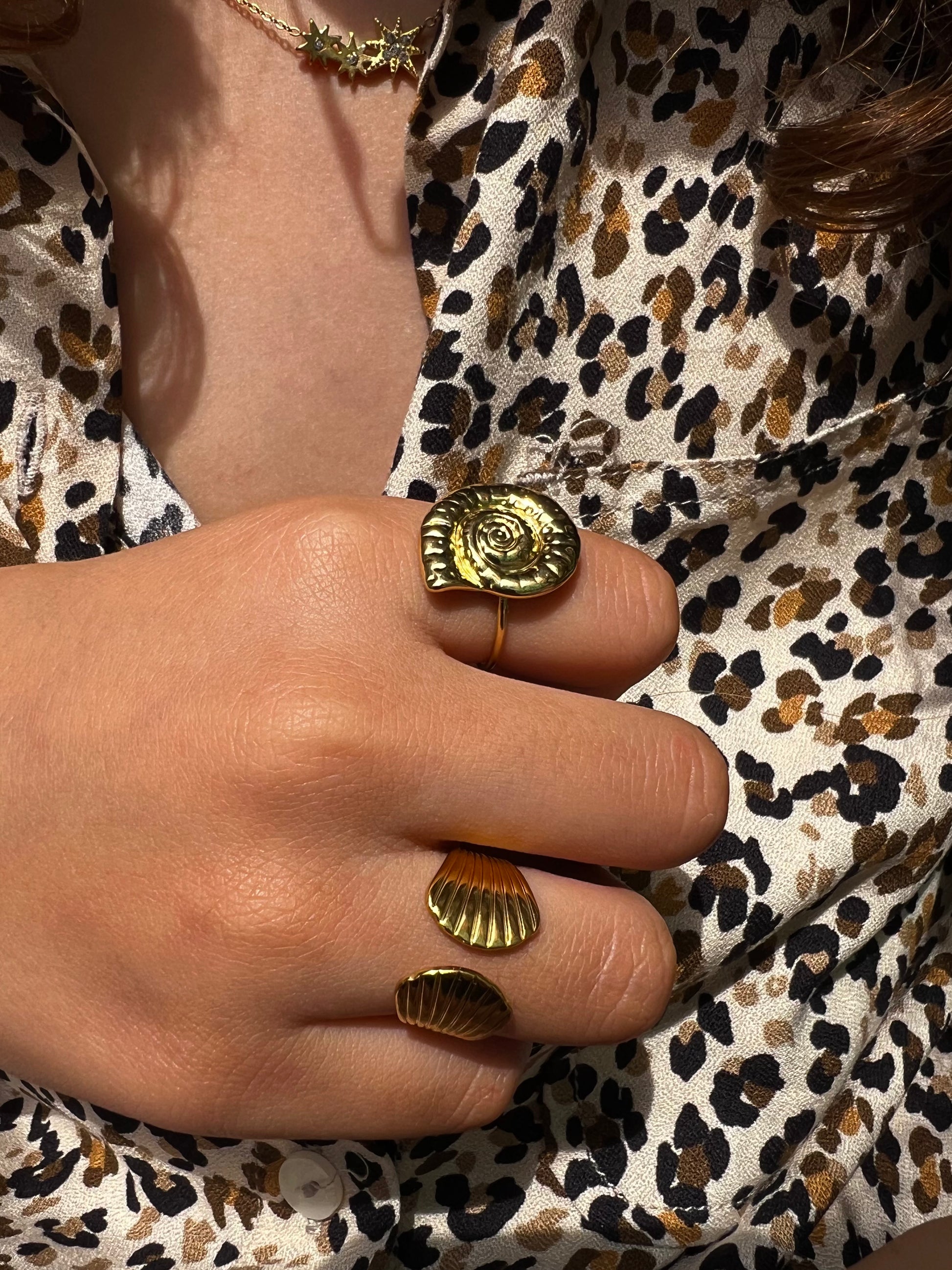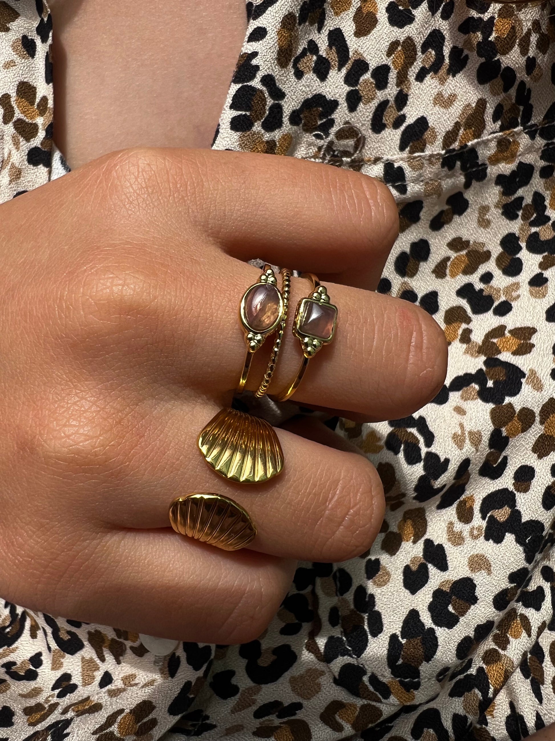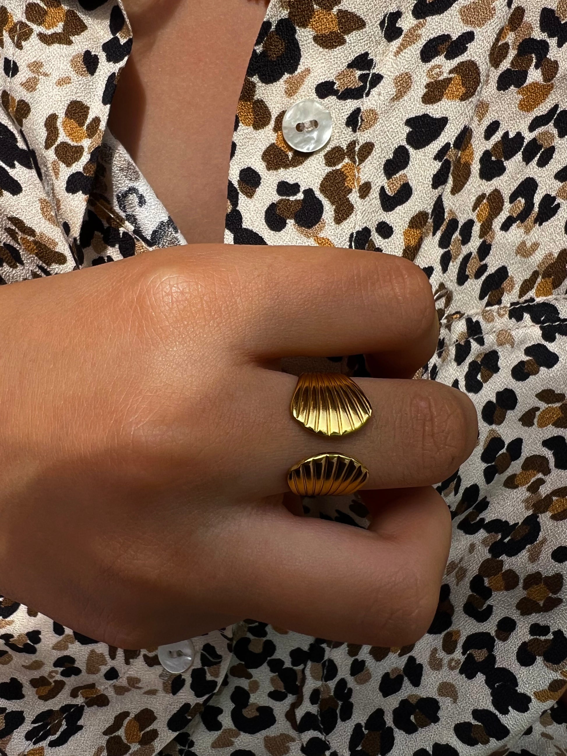 Découvrez notre bague dorée ajustable en acier inoxydable, résistante à l'eau et hypoallergénique. Un bijou hyper tendance qui se distingue par sa forme de coquillage, parfaite pour un look estival et raffiné.