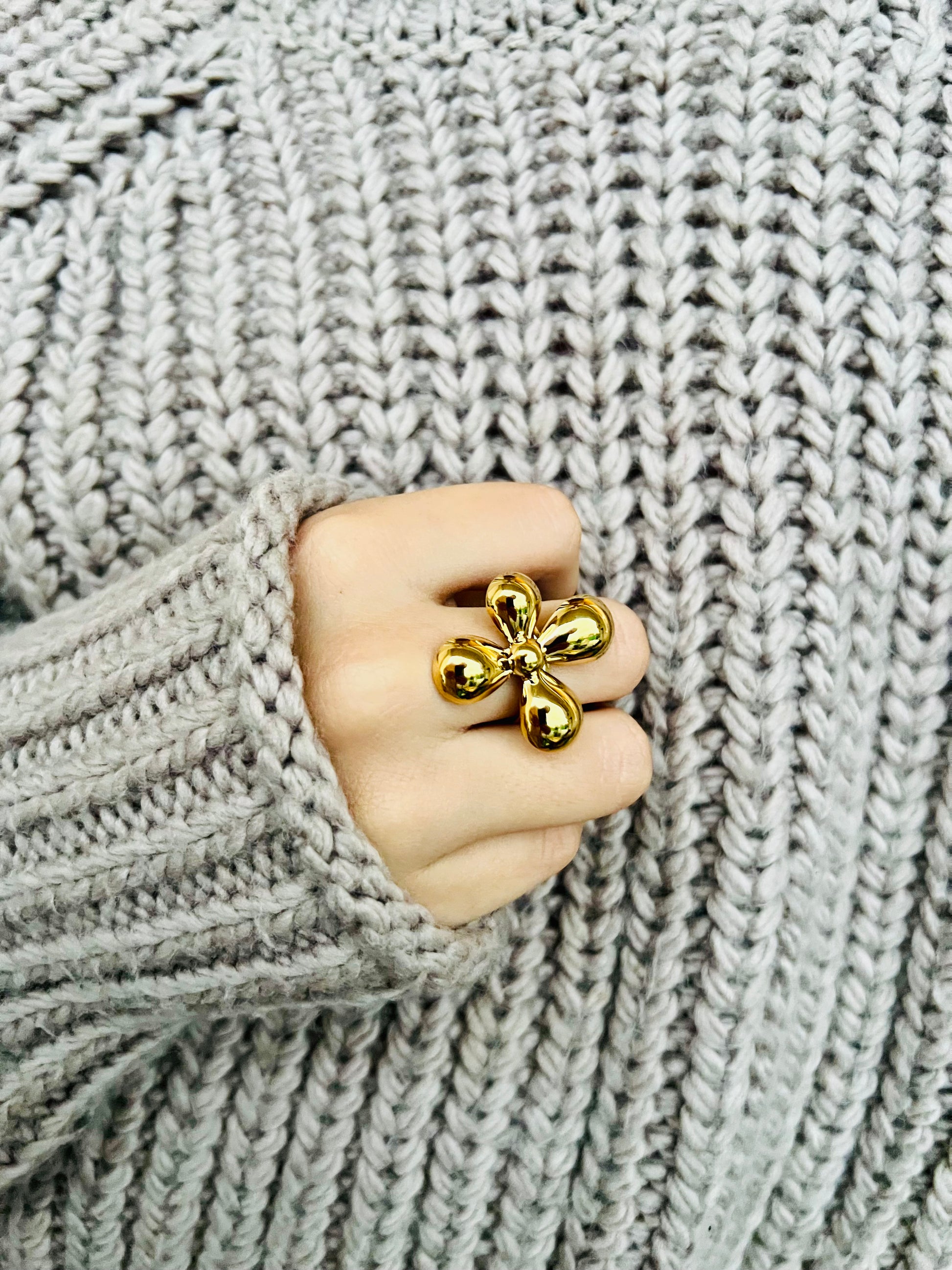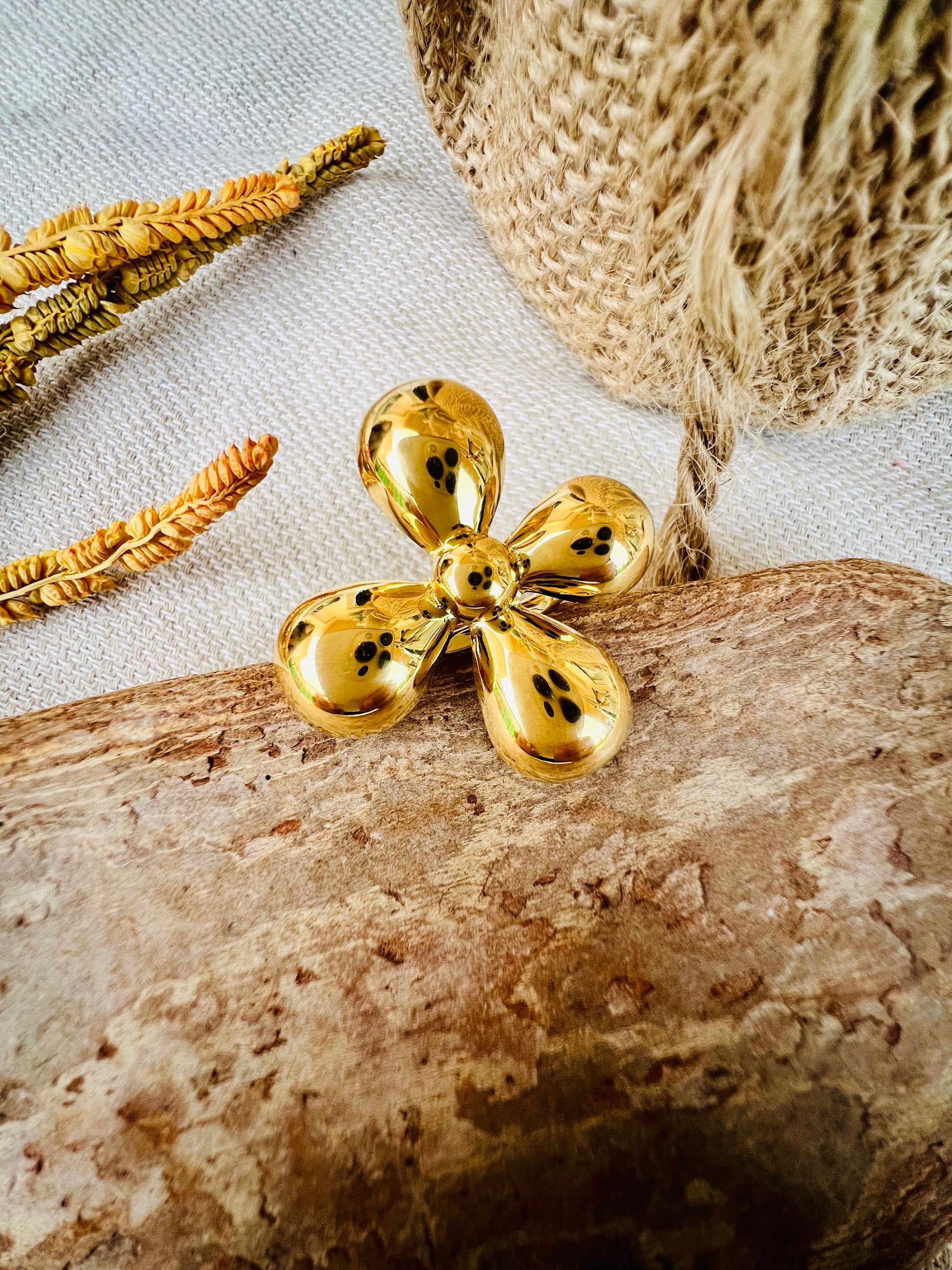 Notre magnifique bague MITAINE est en forme de fleur avec des pétales bombées. Élégance et charme réunis !