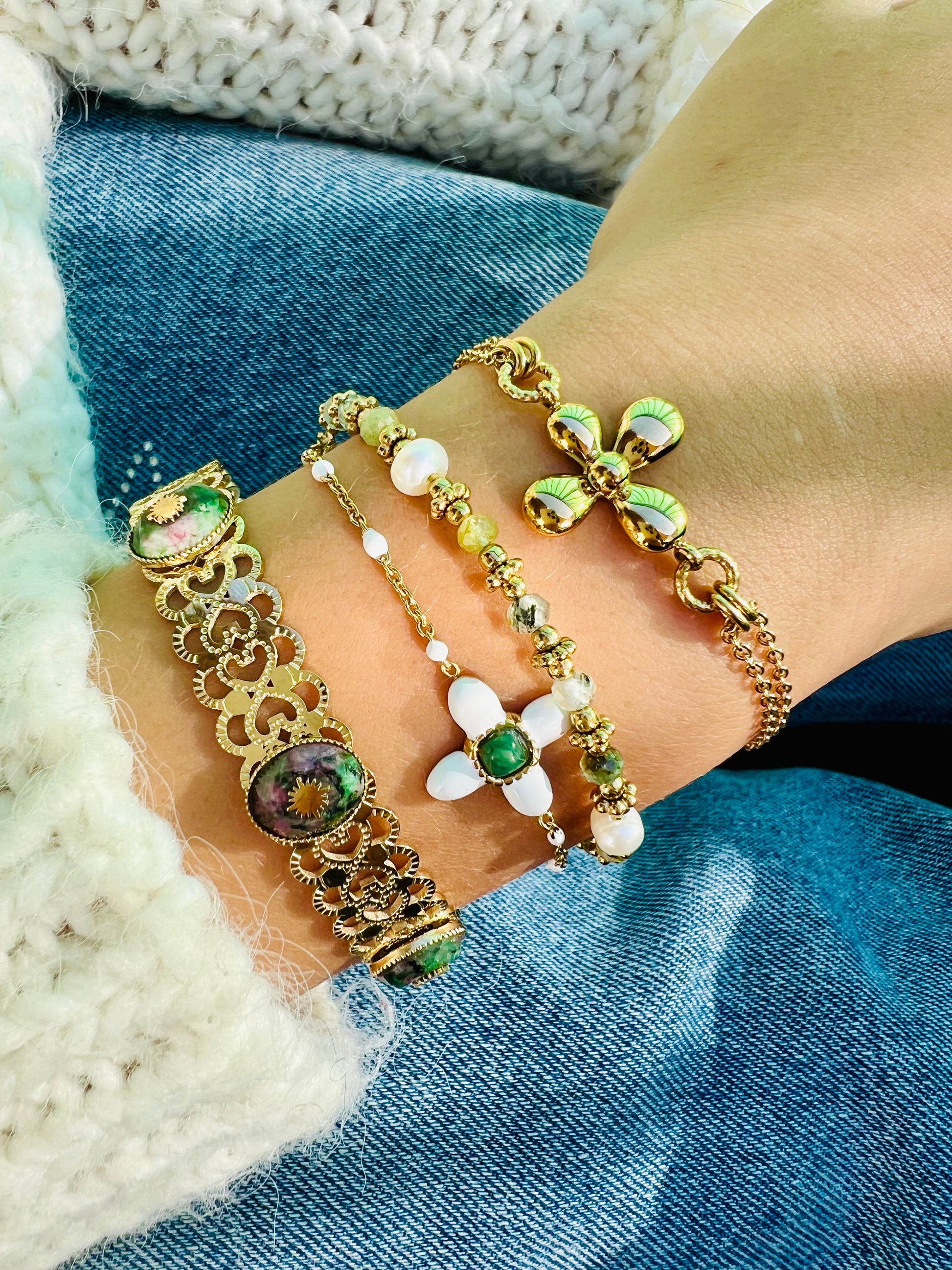Le bracelet MITAINE, mettant en avant une pampille délicate en forme de fleur, est un accessoire féminin et romantique, idéal pour apporter une touche d'élégance à vos looks.