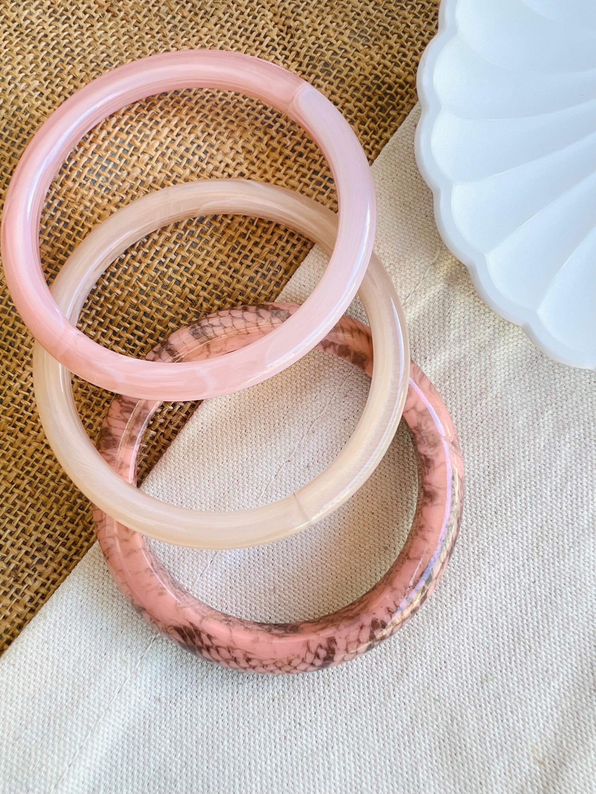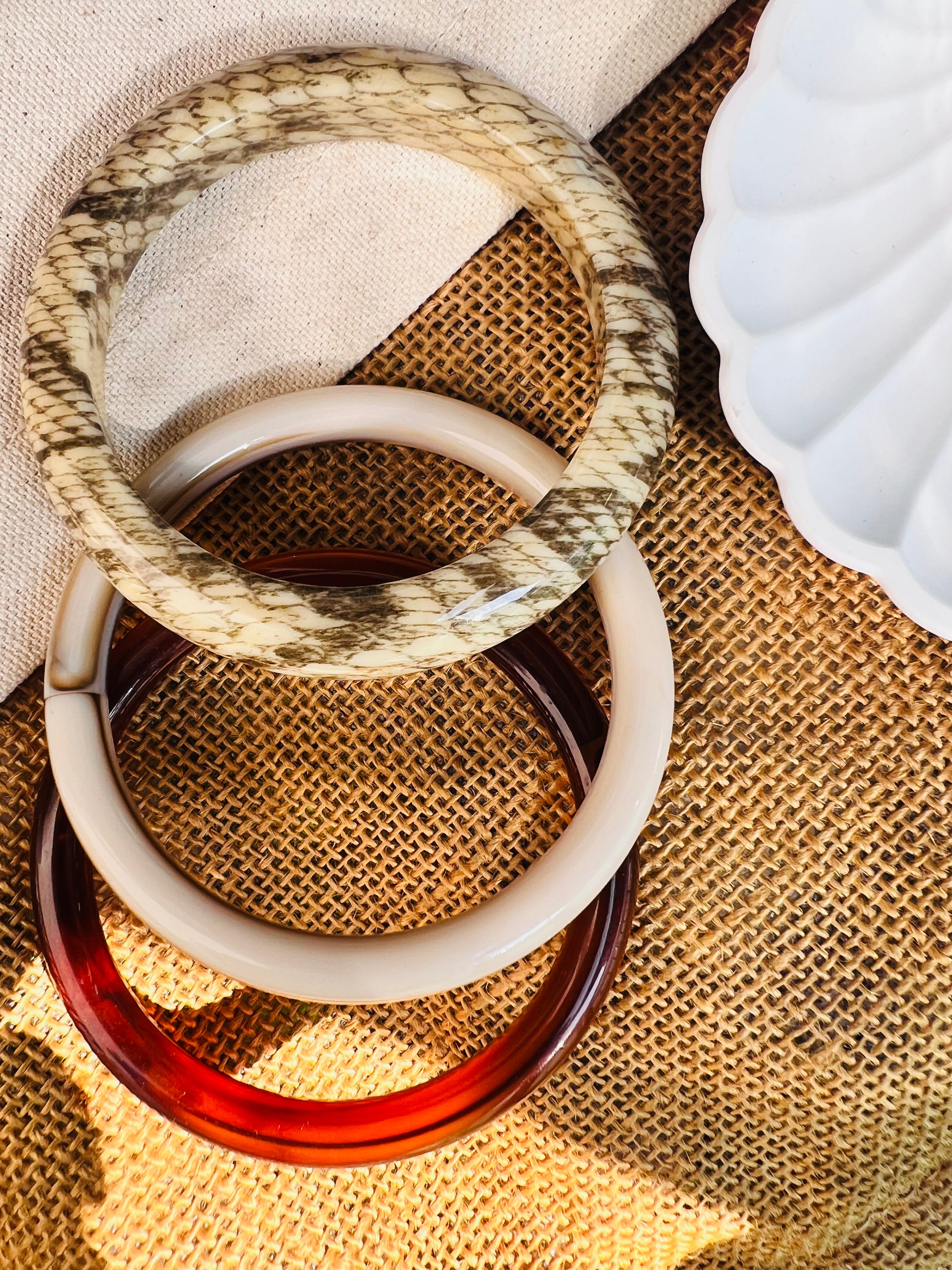 ✧ Lot de 3 bracelets rigides en résine, chaque lot associe un bracelet à effet python et deux modèles unis aux teintes complémentaires.
