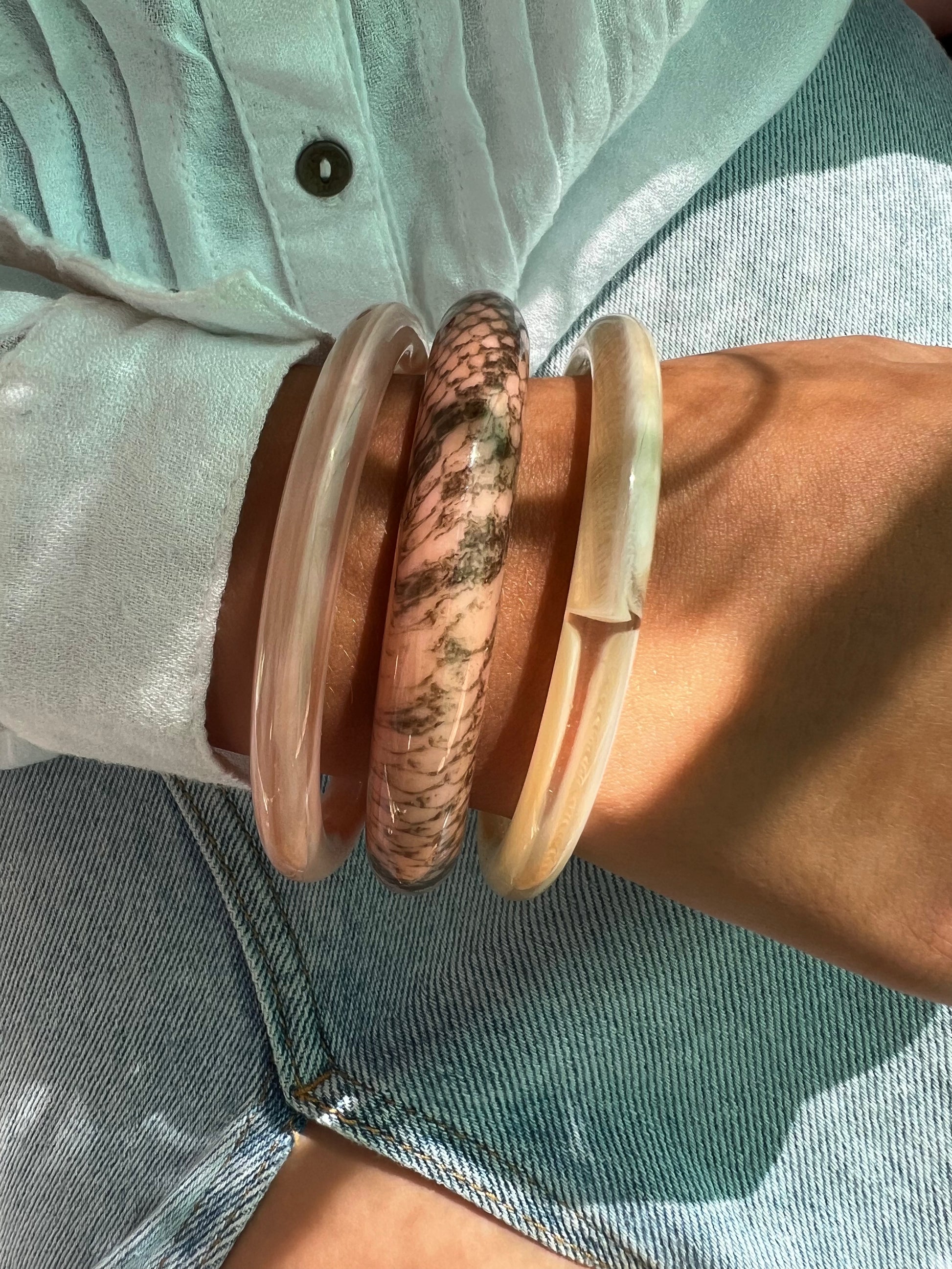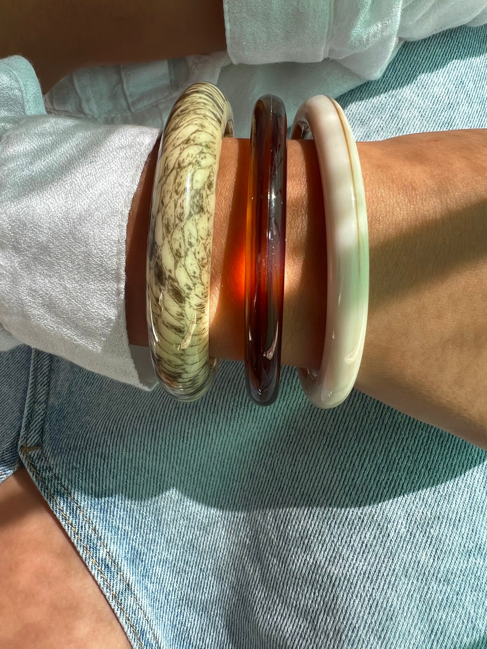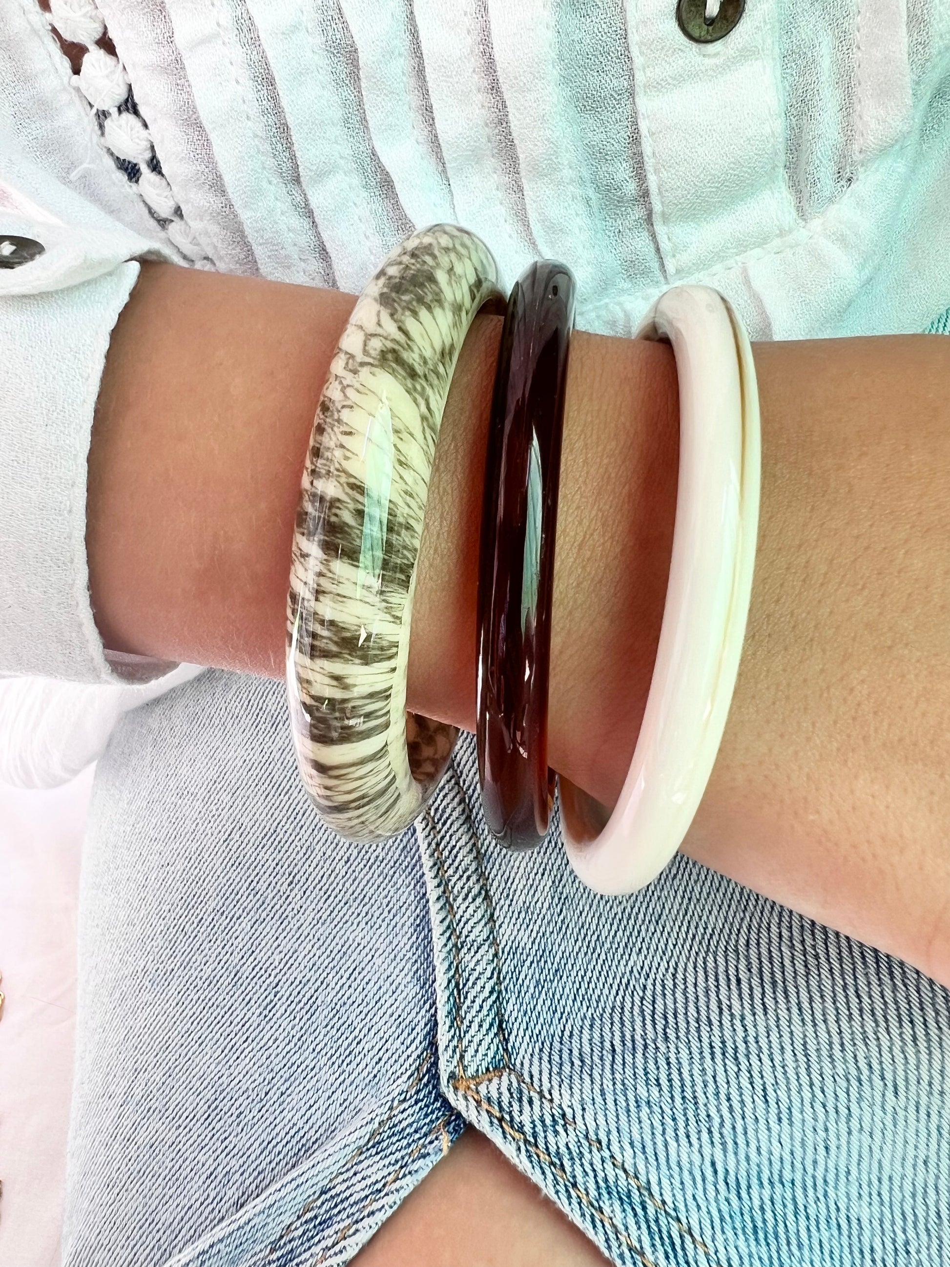 Lot de 3 bracelets rigides en résine, au design chic, texturé et subtilement sauvage.