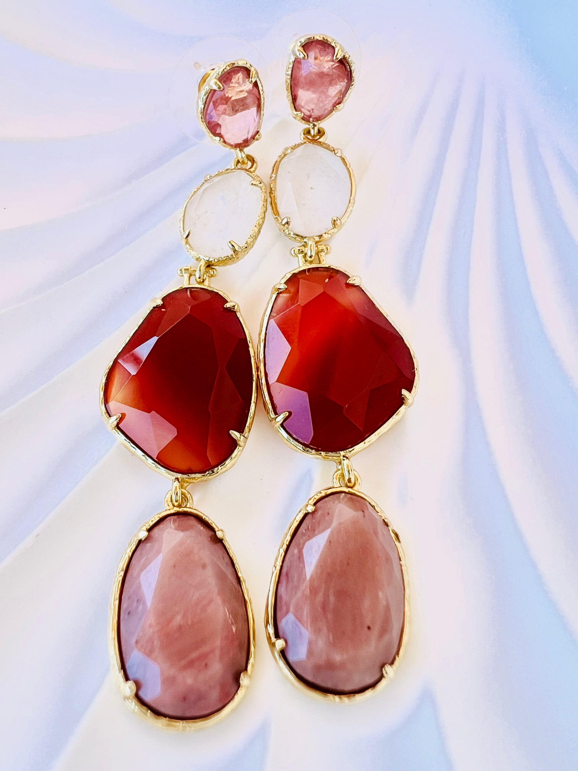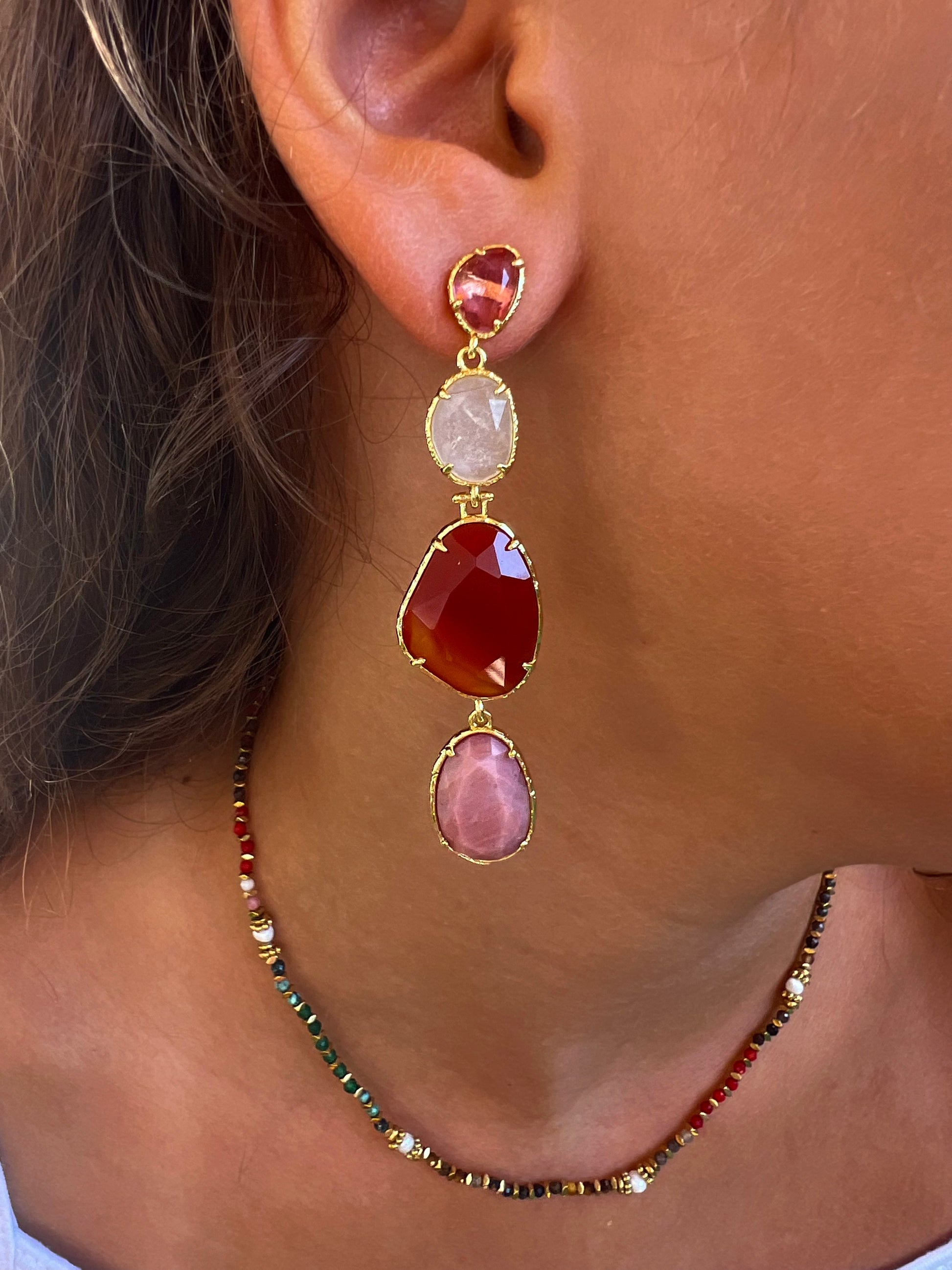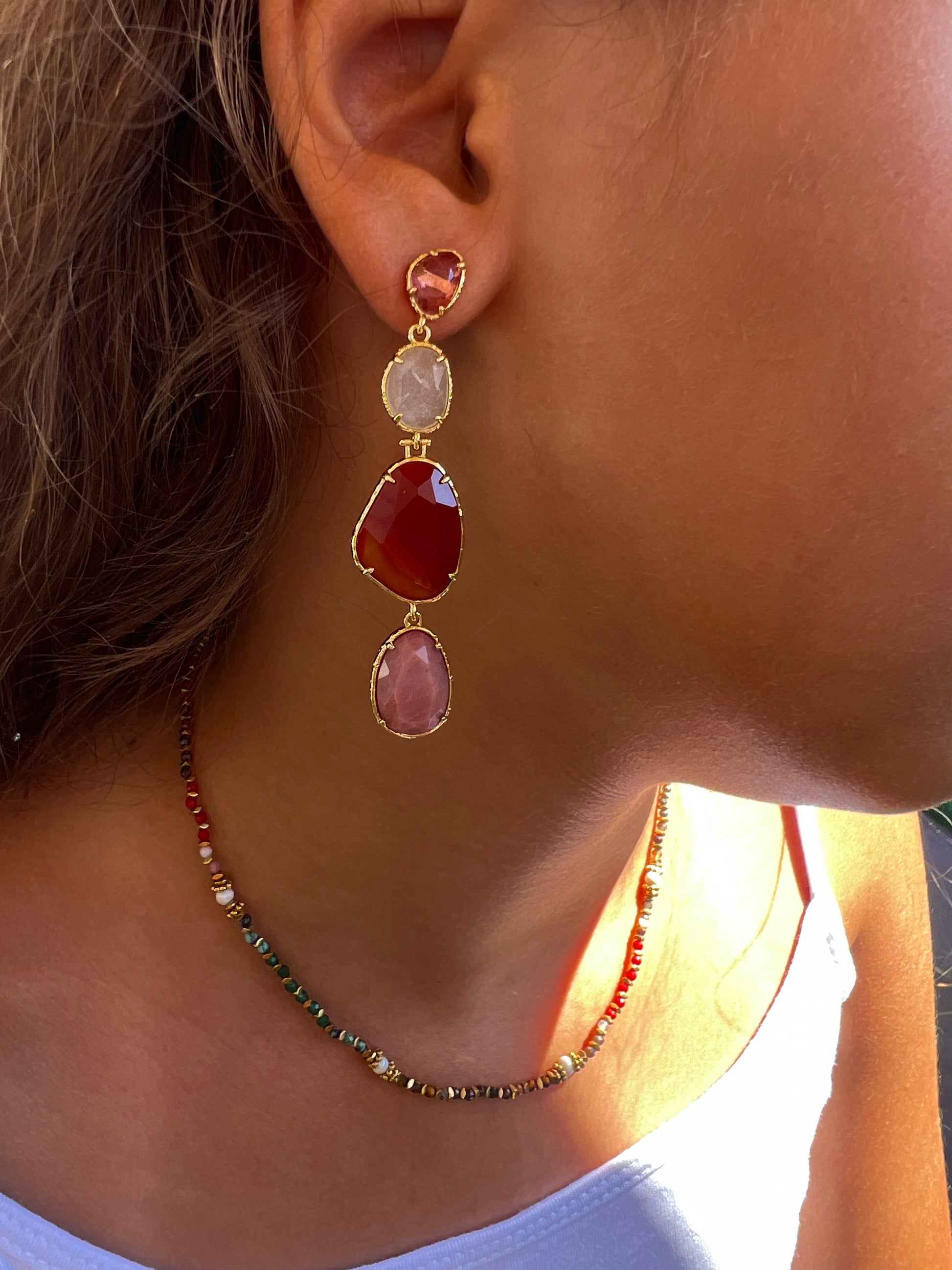 Les boucles Nolya séduisent par leur design pendants raffiné 💫. En laiton, elles se composent de quatre pierres ovales, dont une magnifique cornaline qui apporte chaleur et caractère.