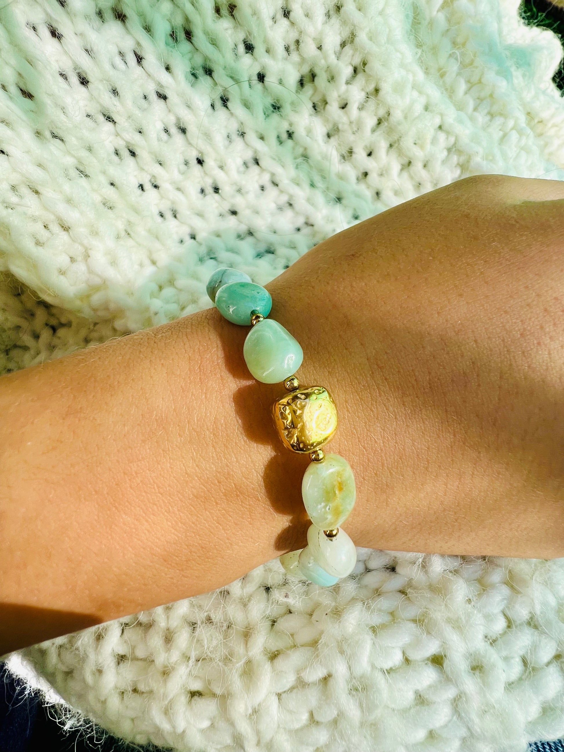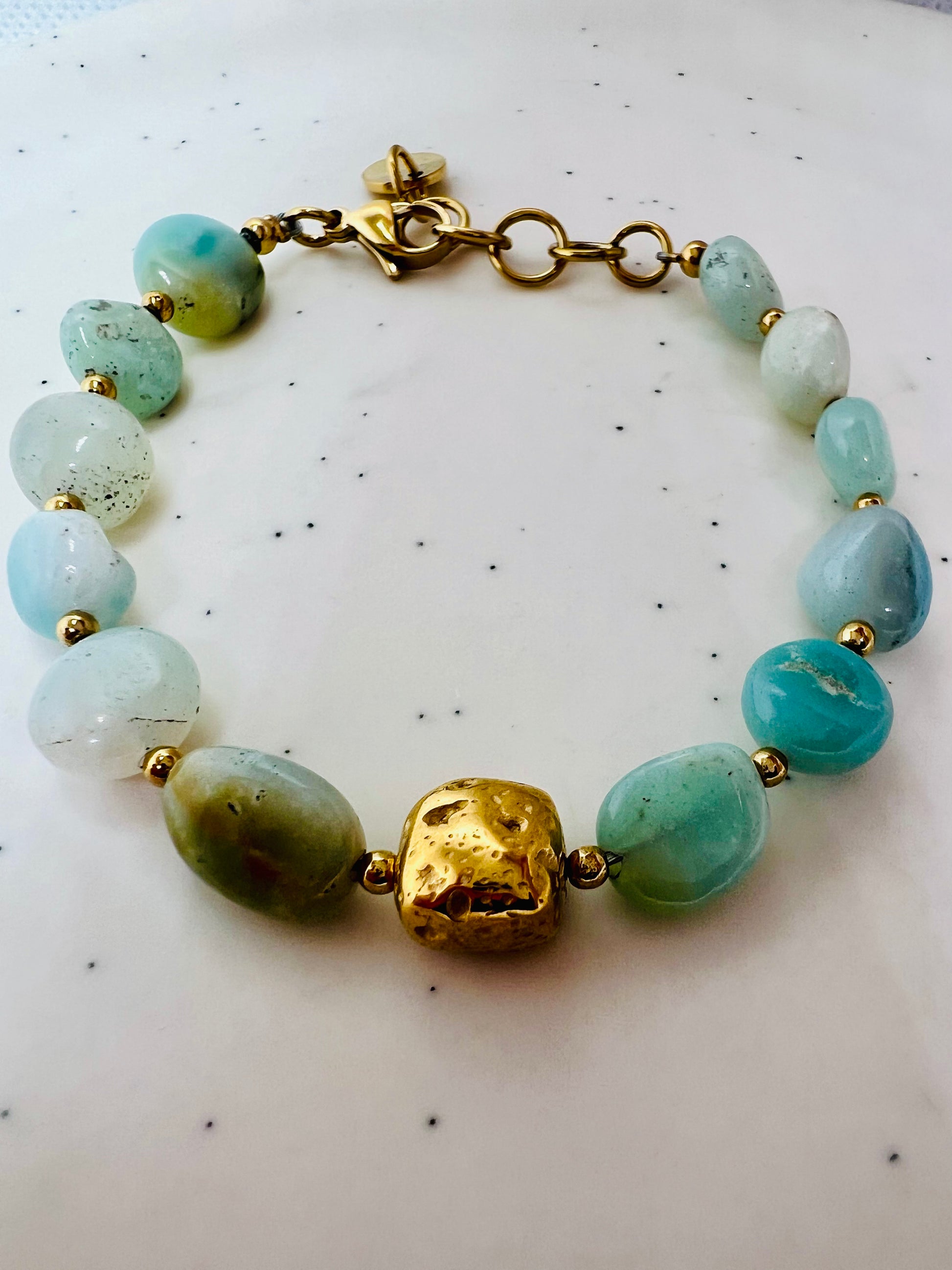 Le bracelet NORIN, orné de pierres naturelles d'agate vertes est une pièce luxueuse qui apporte une touche de sophistication et de couleur à votre poignet ! Existe aussi en collier.