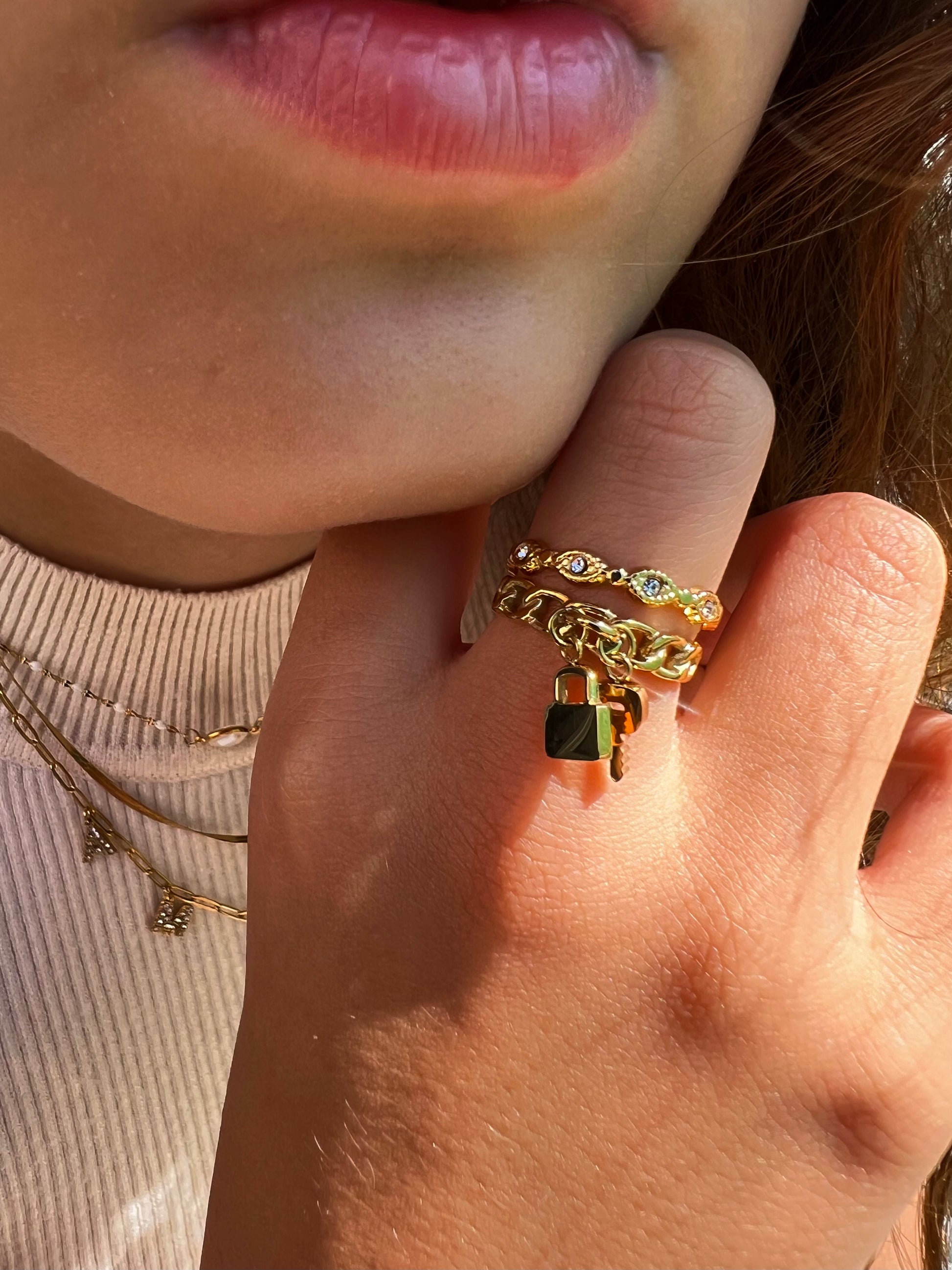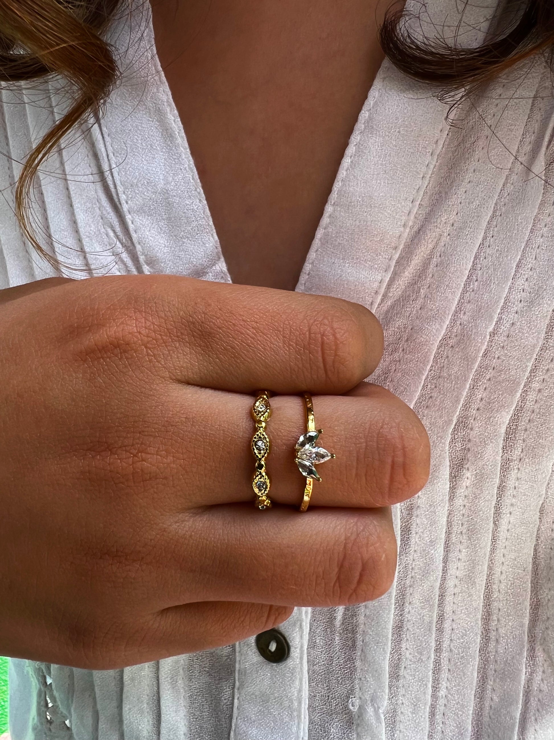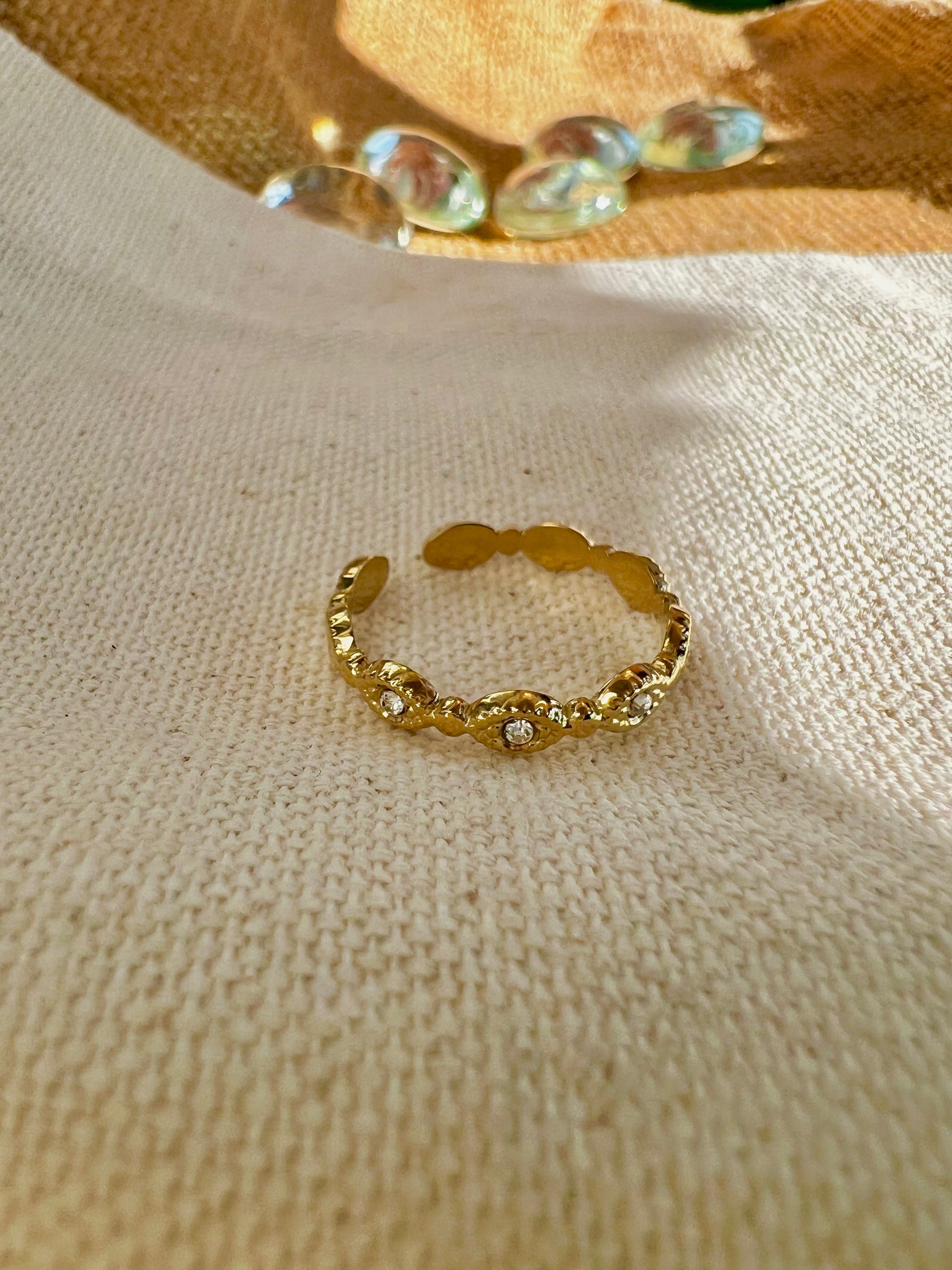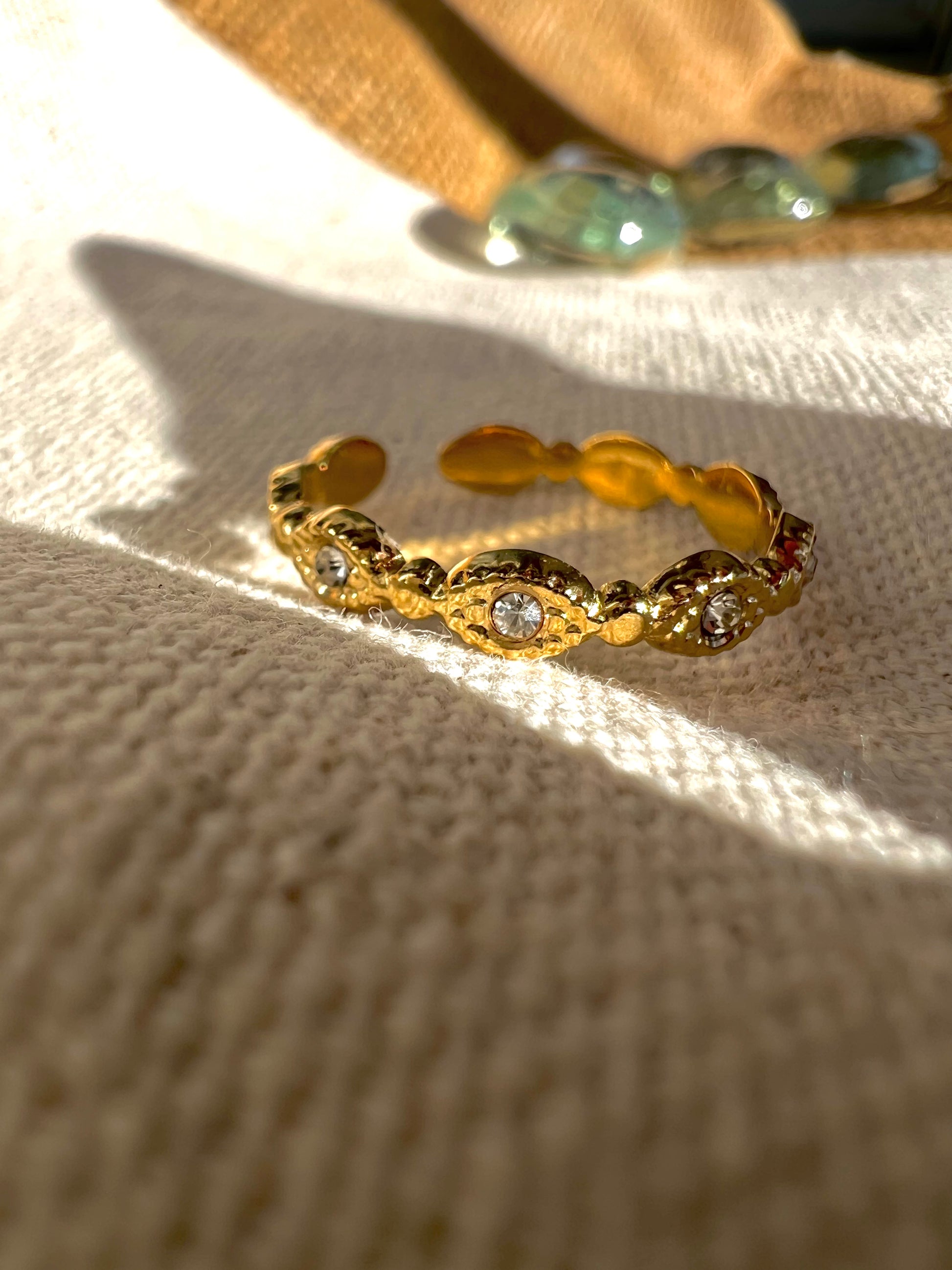 ✧ Bague dorée en acier inoxydable ornée de cristaux.