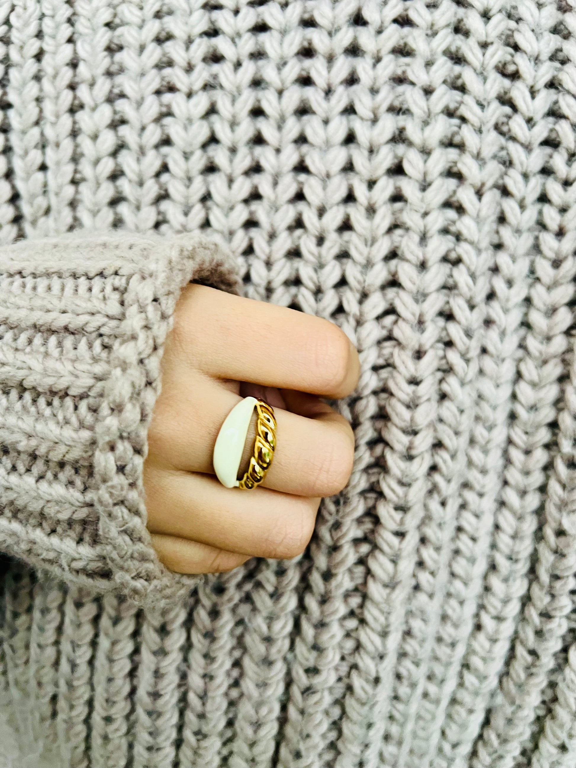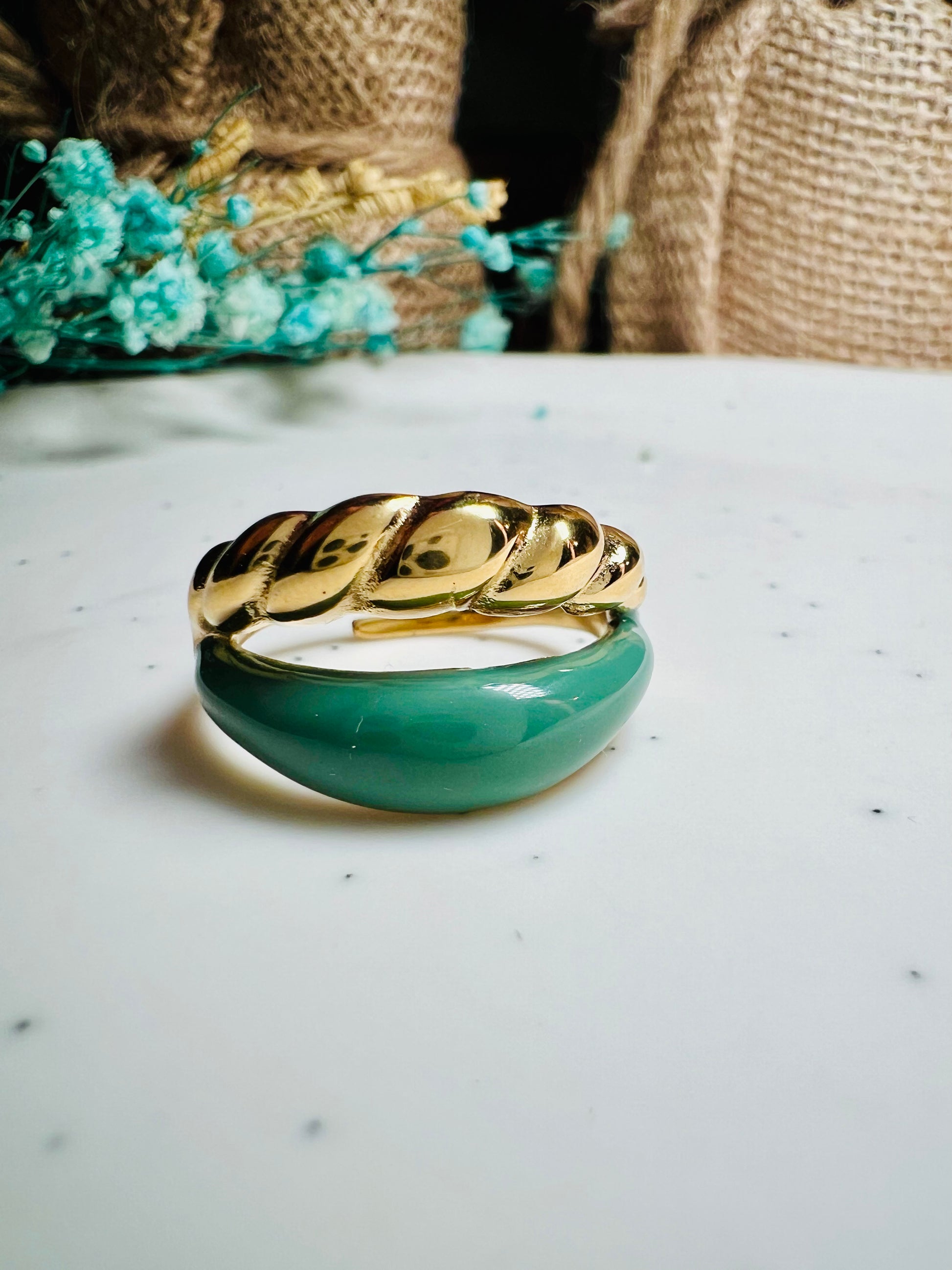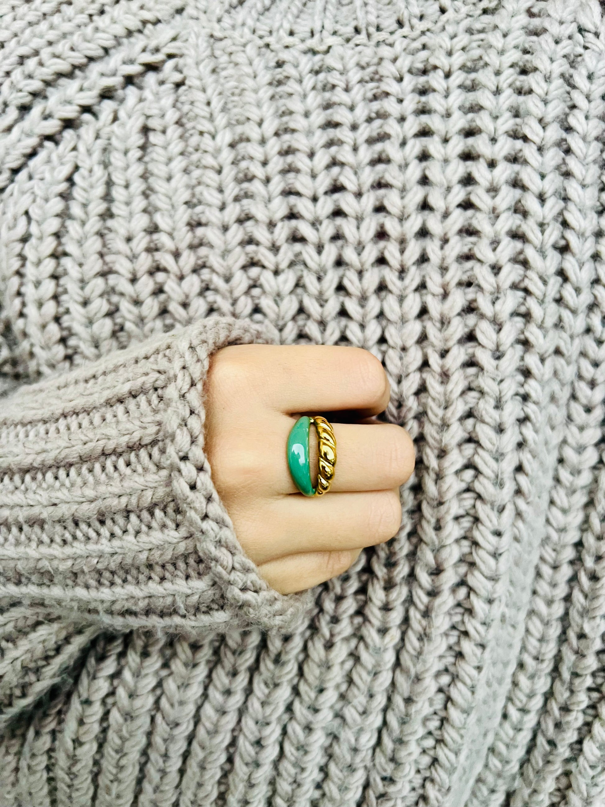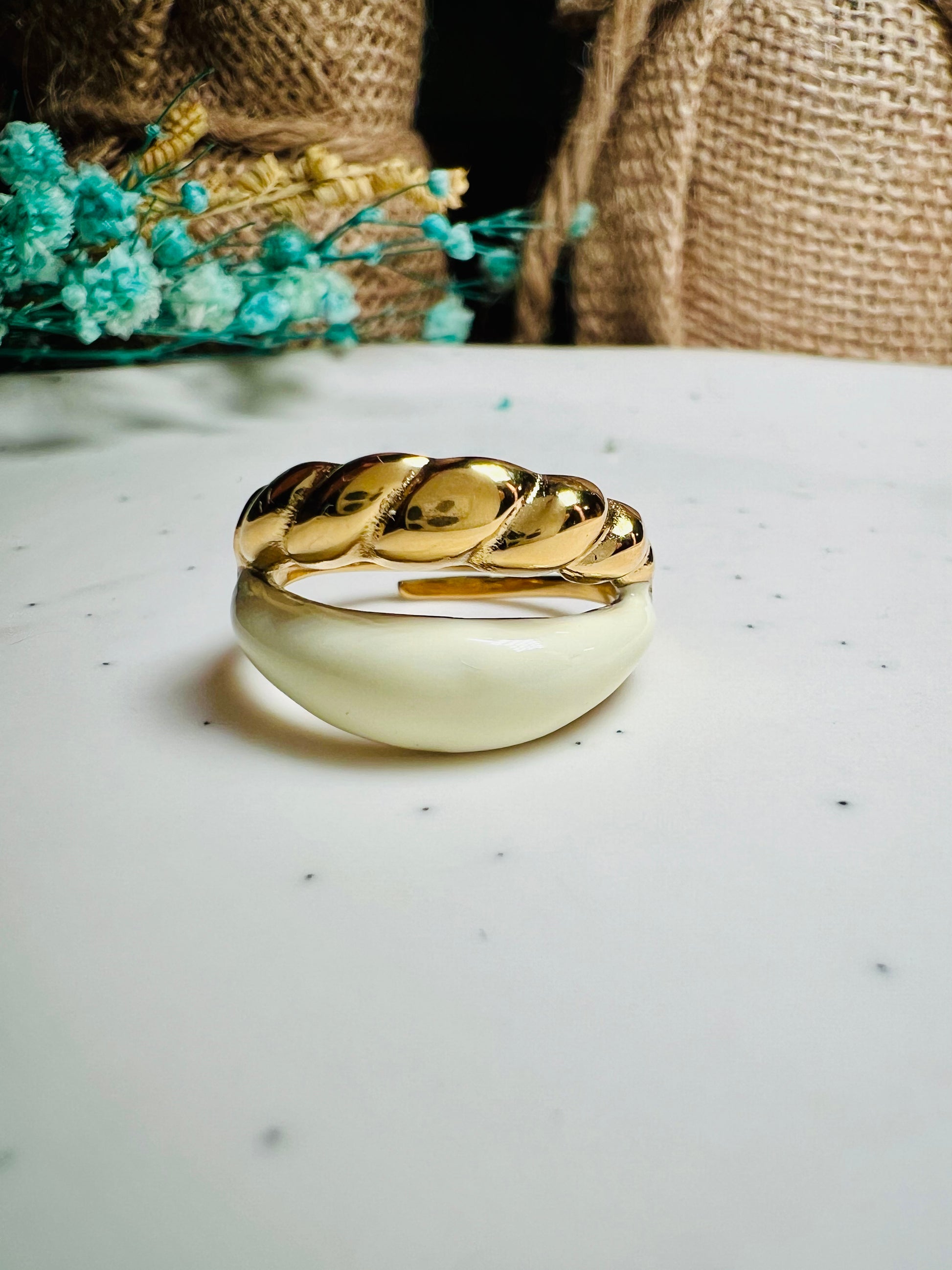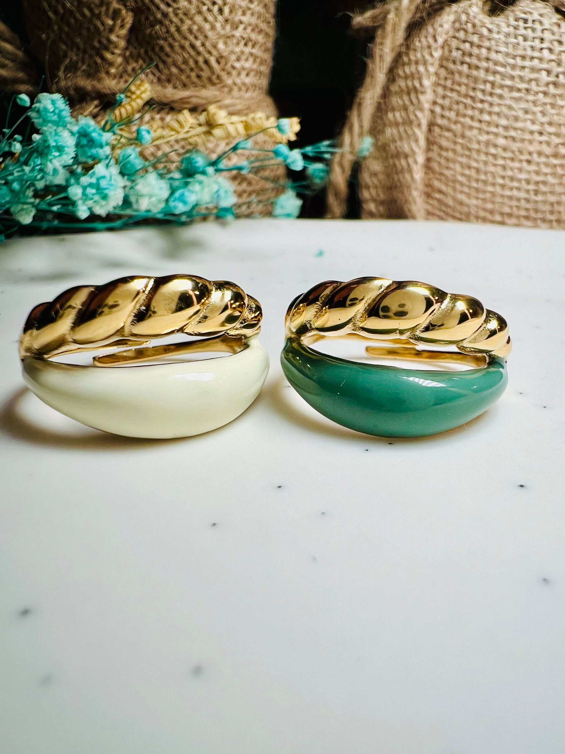 La bague PALMER à deux rangs avec émail lisse et effet torsadé. Élégance moderne et confort !