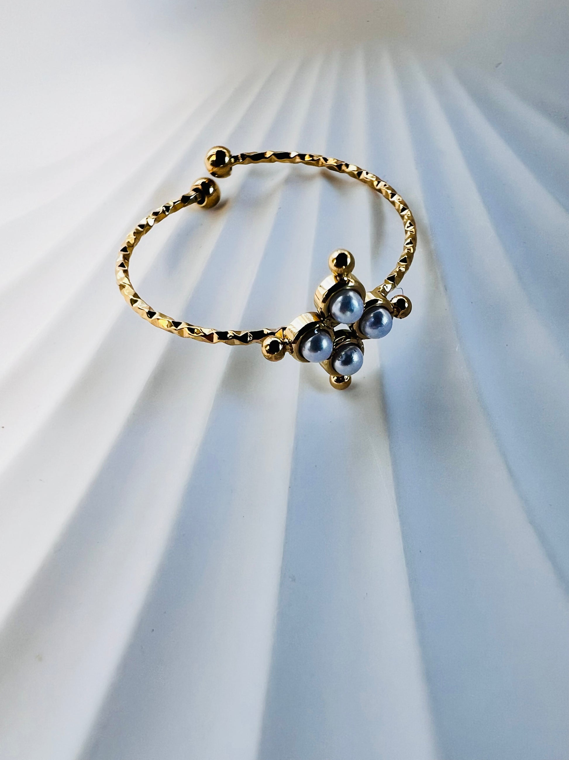 ✧ Bague dorée en acier inoxydable et perles acryliques.