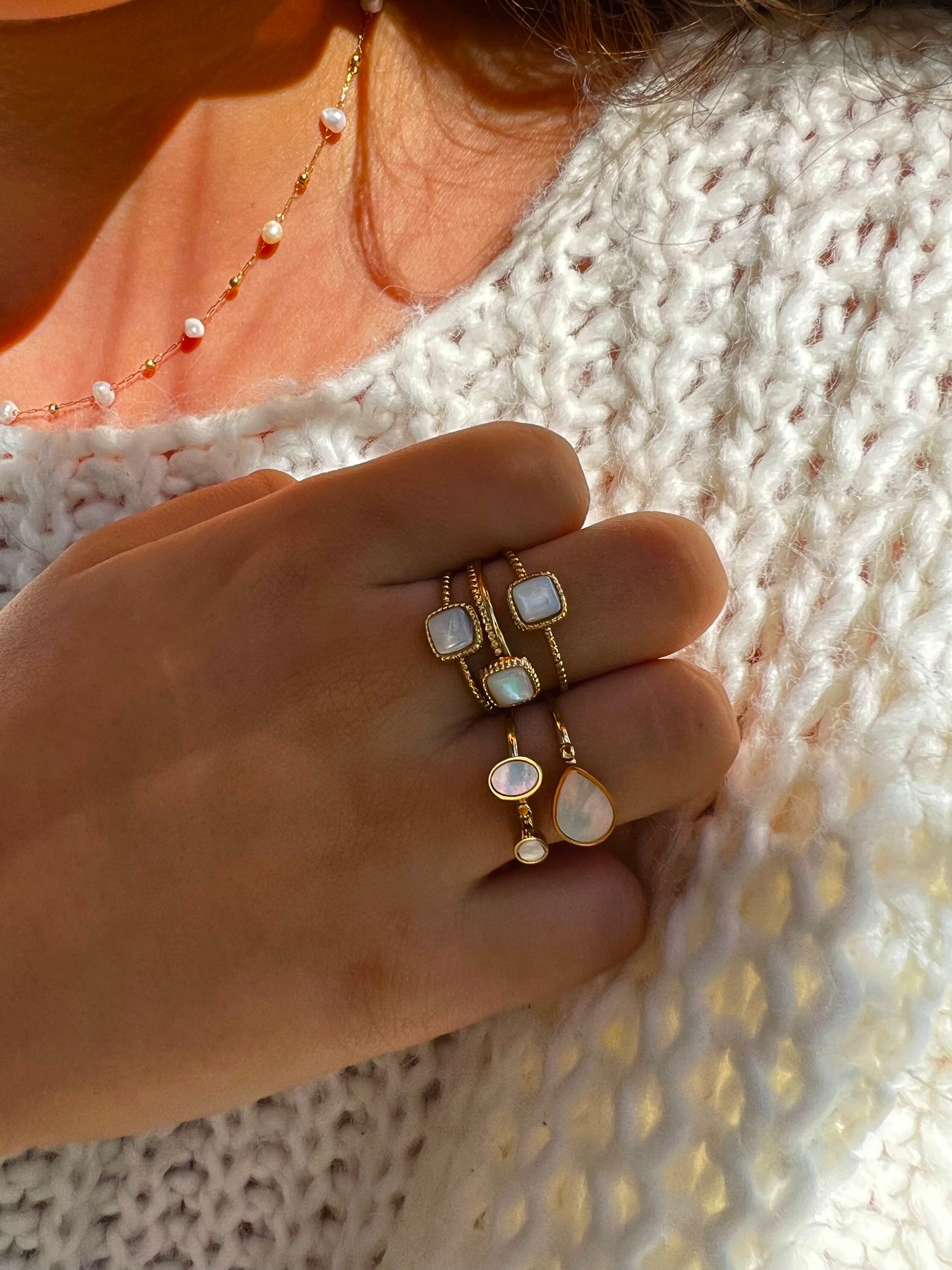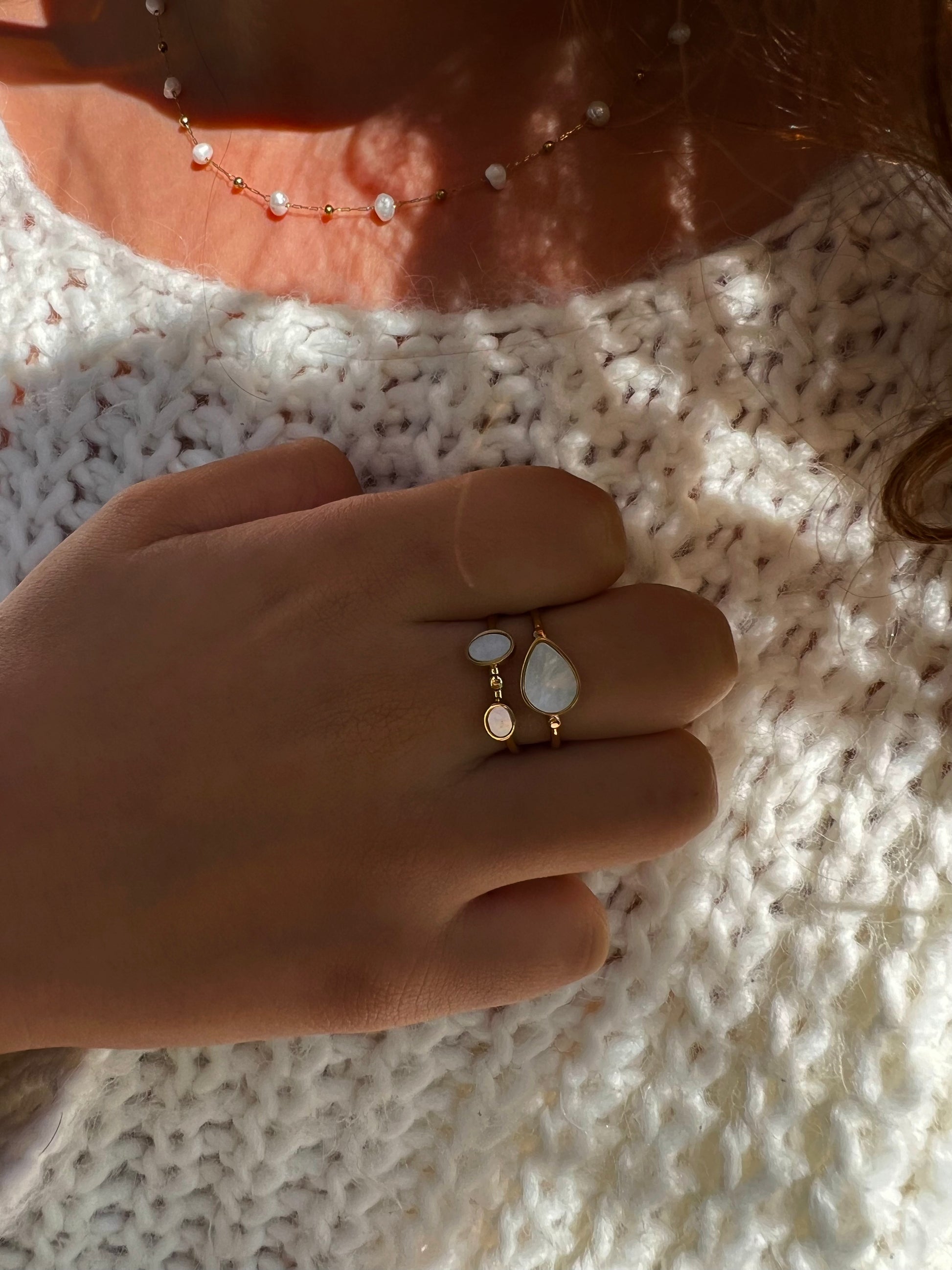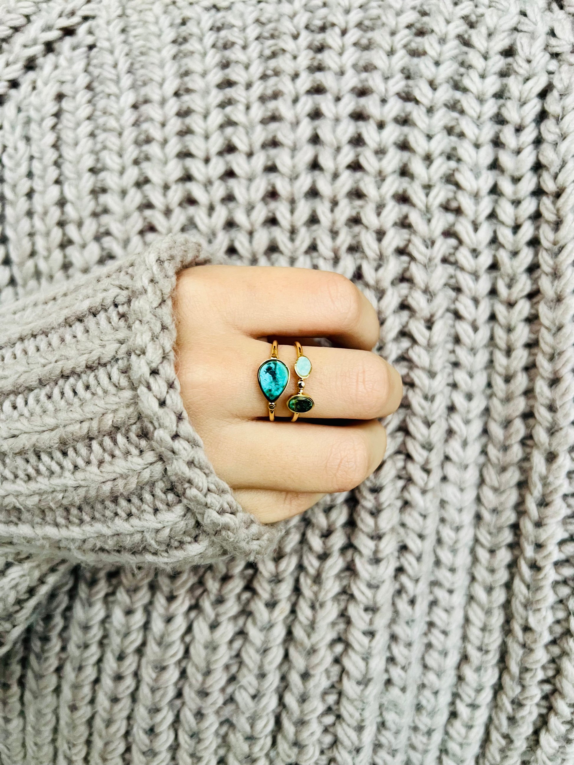 La bague contemporaine PRIYA à deux rangs met en valeur la beauté de la turquoise africaine, du lapis lazuli et de la nacre blanche, offrant une élégance subtile et un charme unique. Un bijou parfait pour rehausser votre style au quotidien.